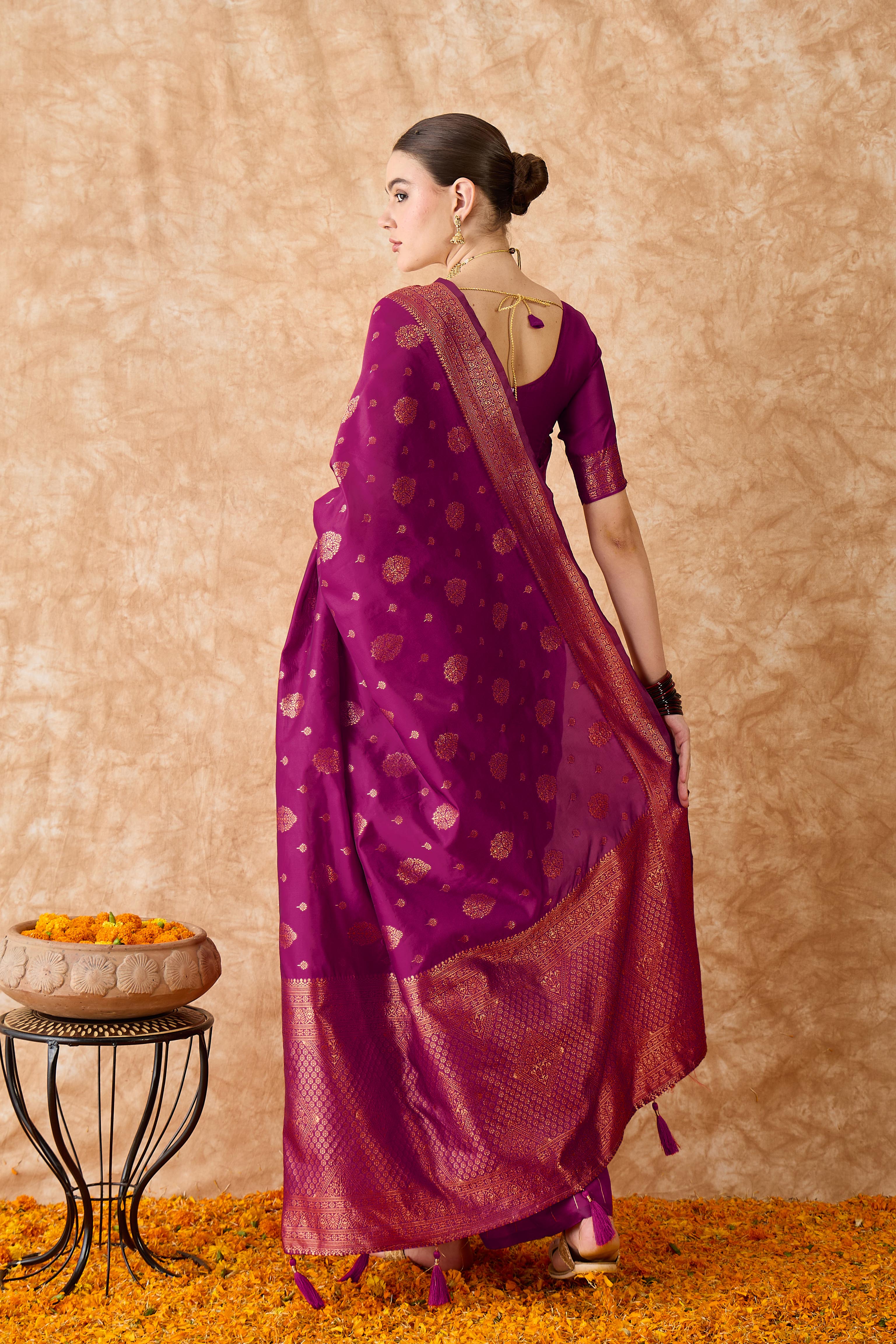 AASTHA FASHION Fashion Dream Womens Magenta Banarasi Silk Saree | Soft & Elegant Traditional Wear