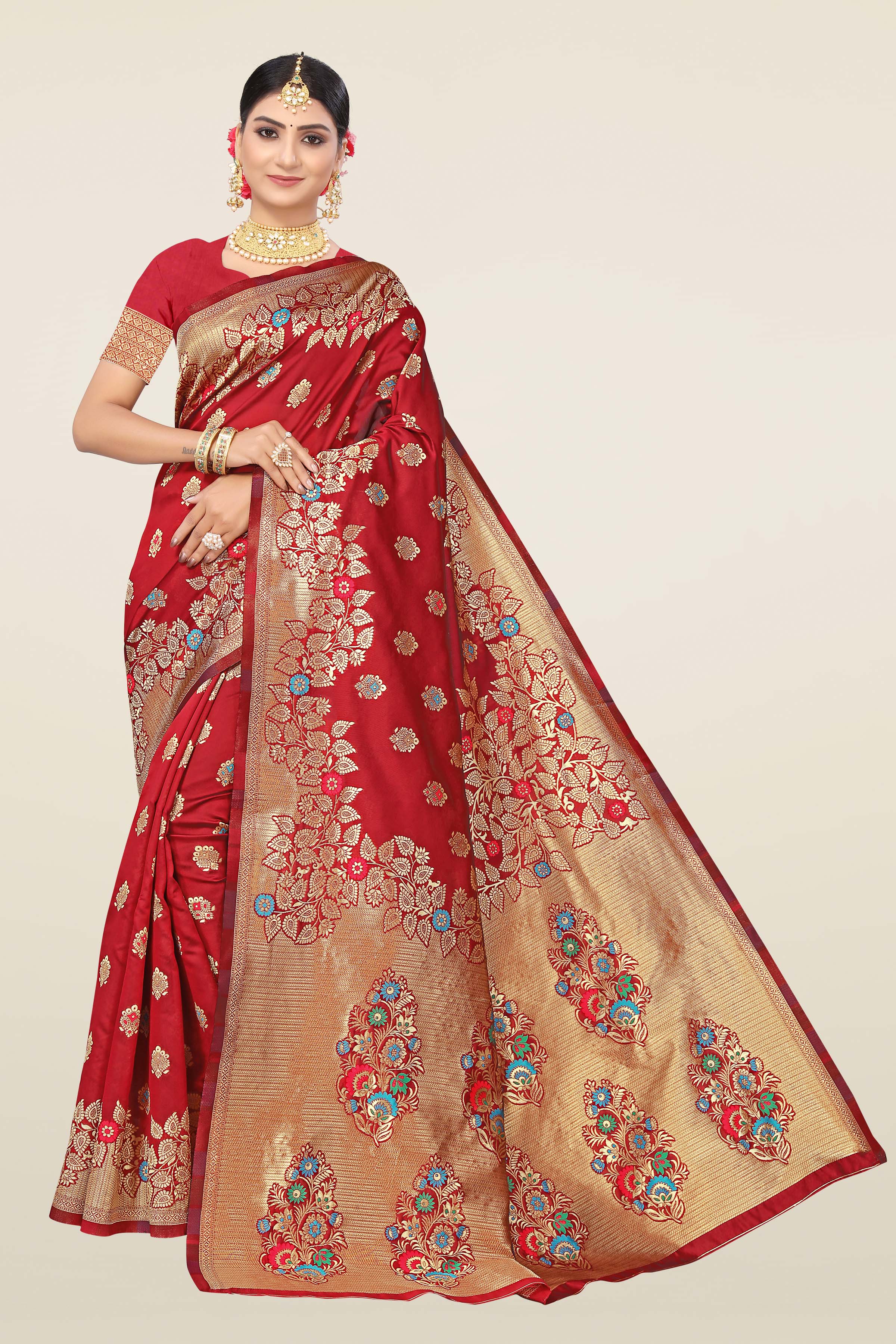 AASTHA FASHION Fashion Dream Womens Maroon Banarasi Silk Saree | Soft & Elegant Traditional Wear