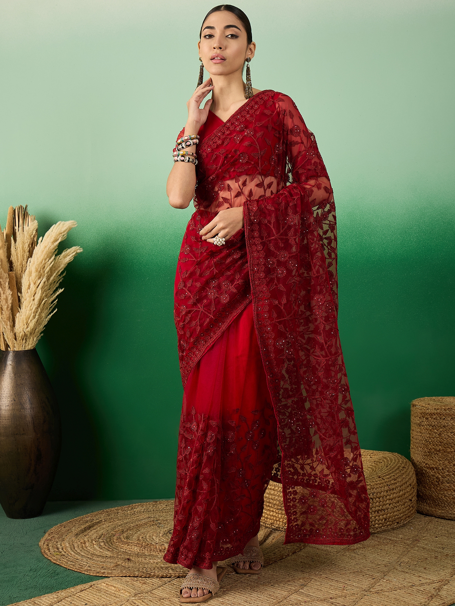 AASTHA FASHION Fashion Dream Womens Maroon Net Saree | Soft & Elegant Traditional Wear