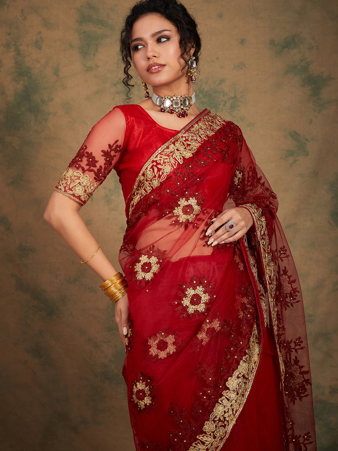 AASTHA FASHION Fashion Dream Womens Maroon Net Saree | Soft & Elegant Traditional Wear