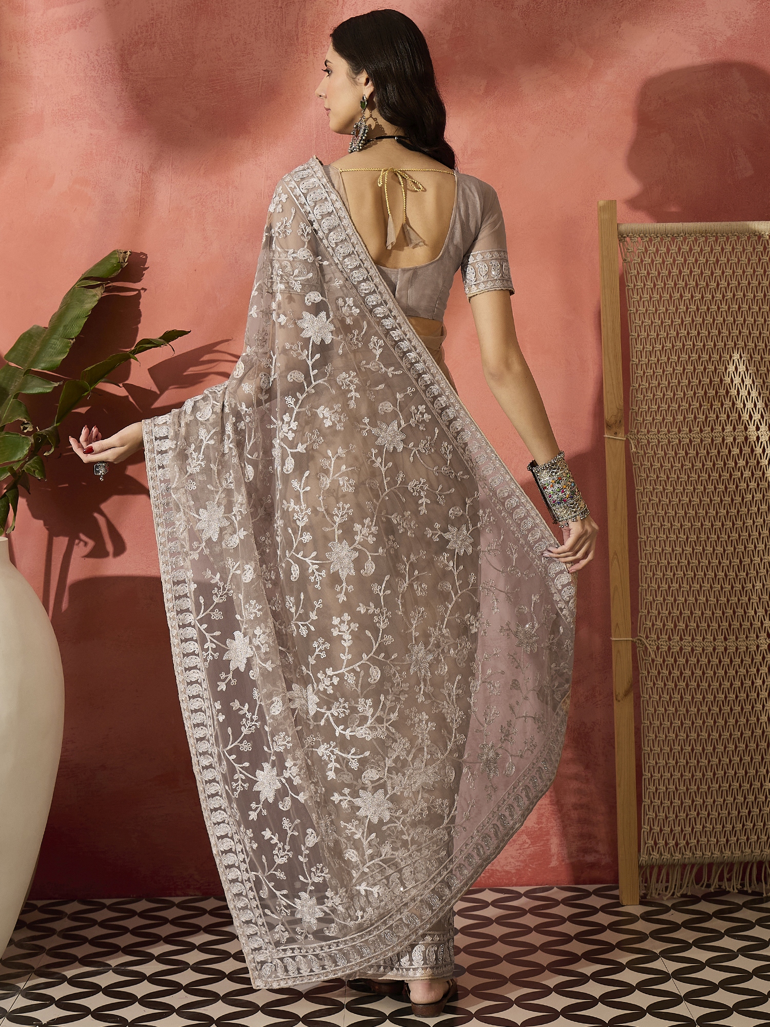 • Saree Work-Embroidered ,Blouse Work- Net