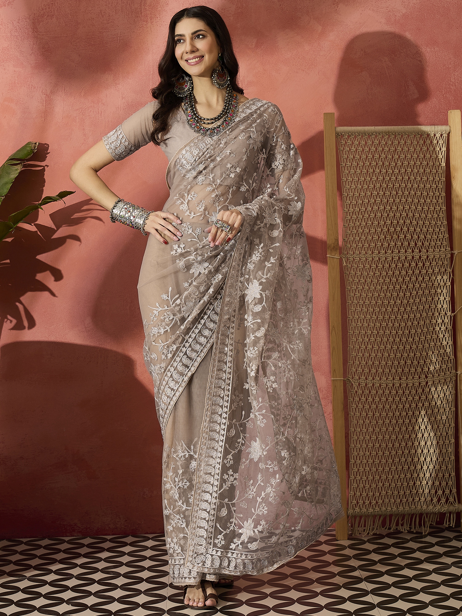 AASTHA FASHION Fashion Dream Womens Mouse Grey Net Saree | Soft & Elegant Traditional Wear