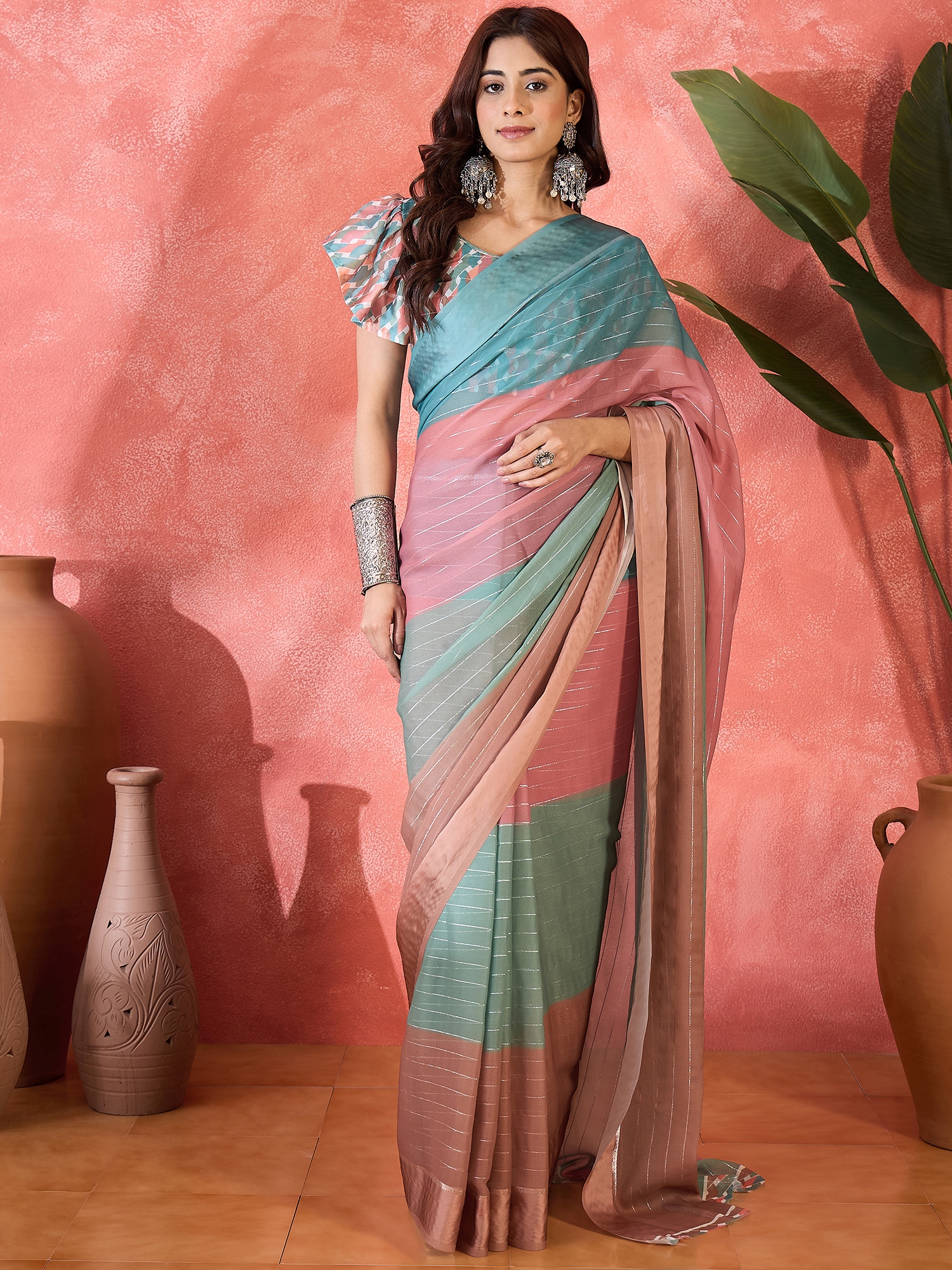 • Saree Fabric-Moss Chiffon ,Blouse Fabric-Moss Chiffon