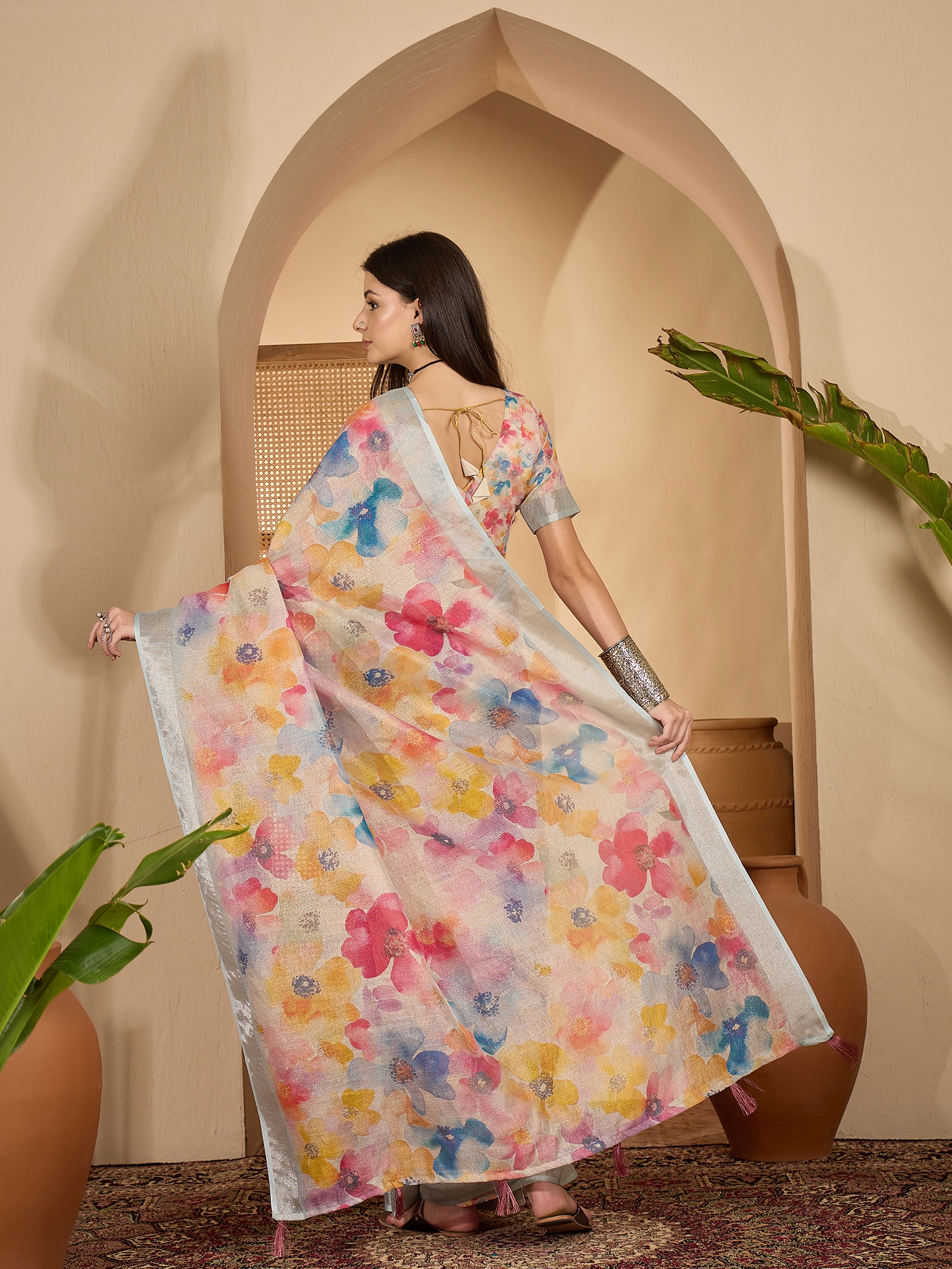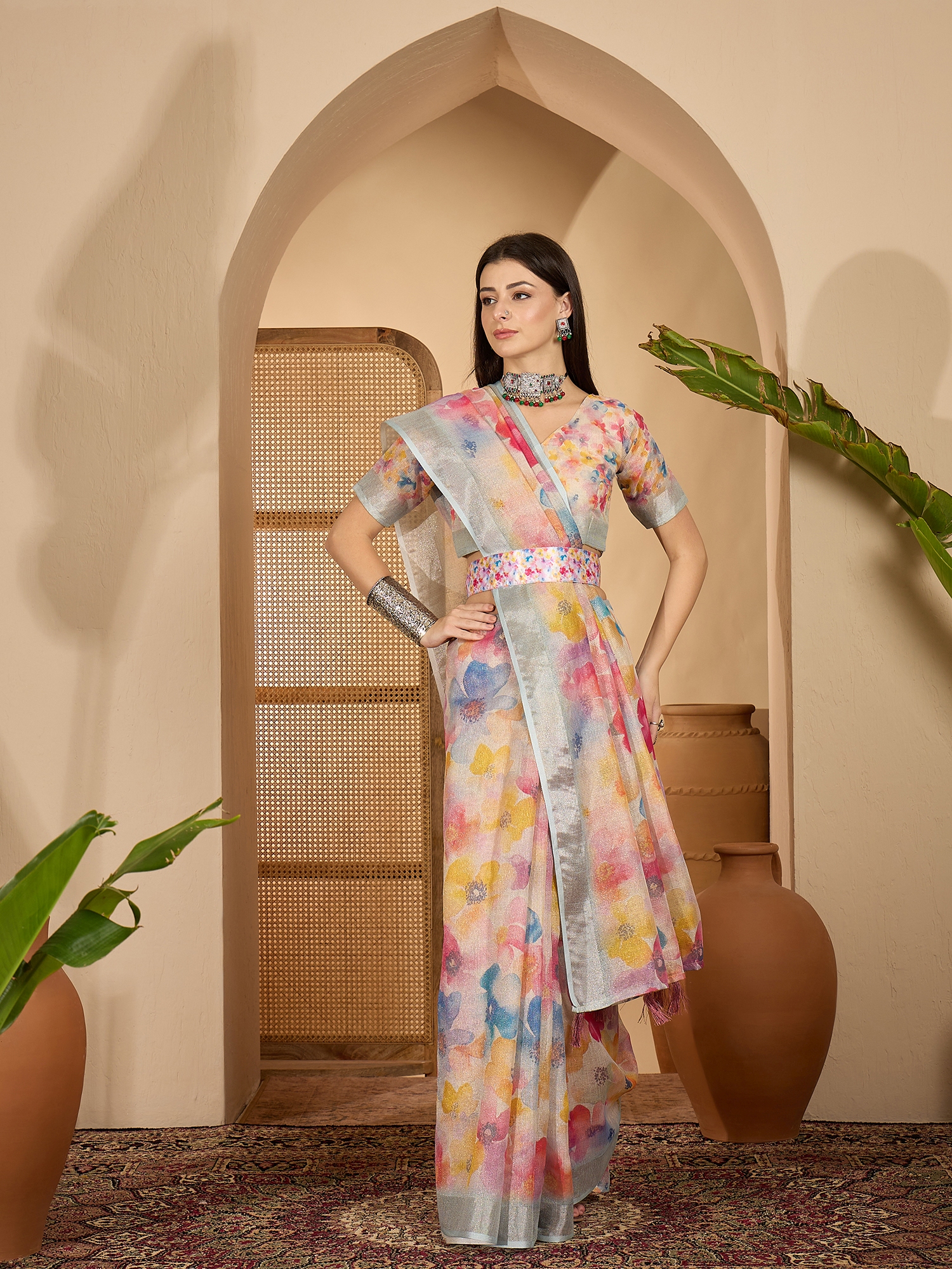 AASTHA FASHION Fashion Dream Womens Multicolor Linen Zari Gold Saree | Soft & Elegant Traditional Wear