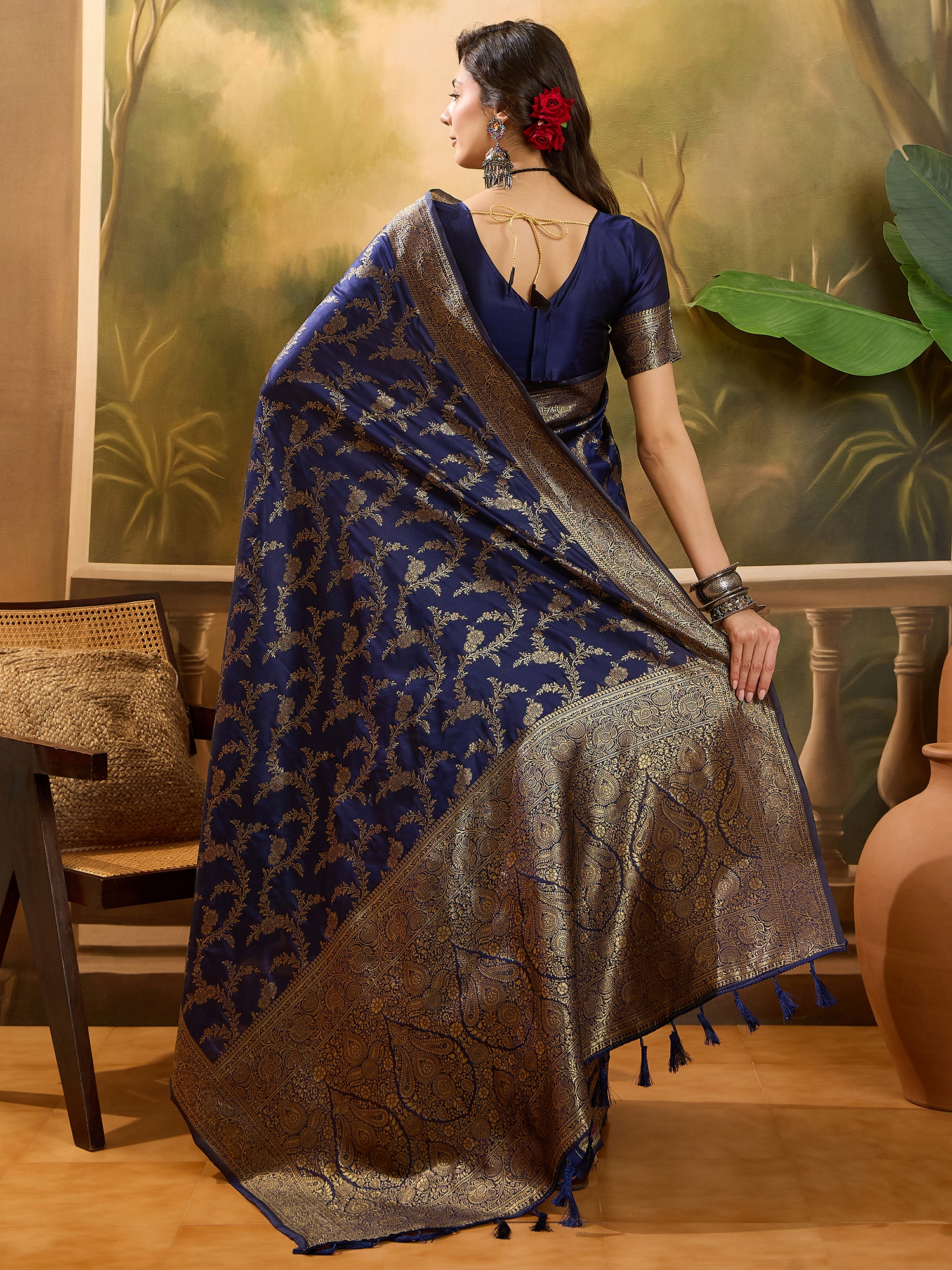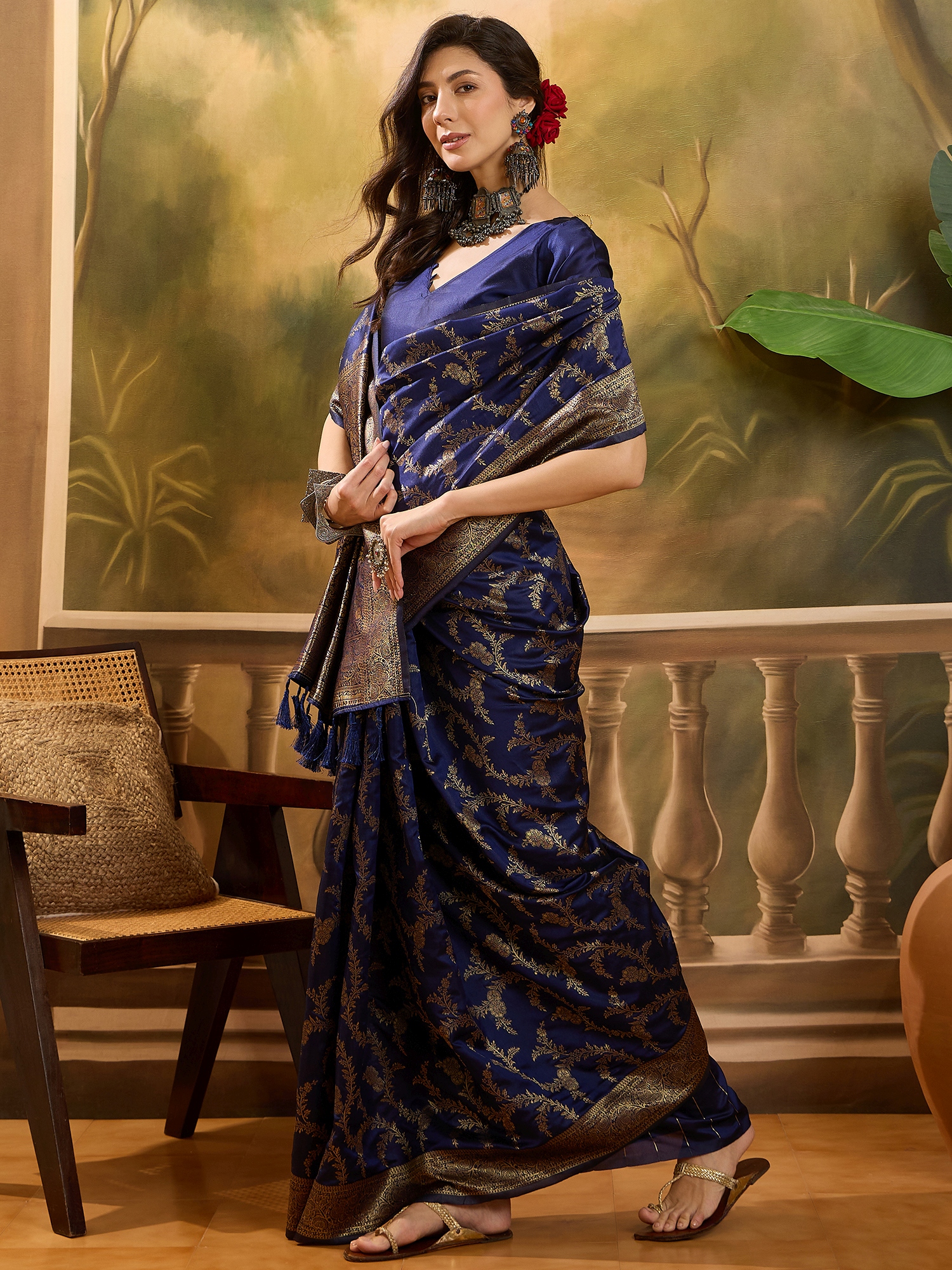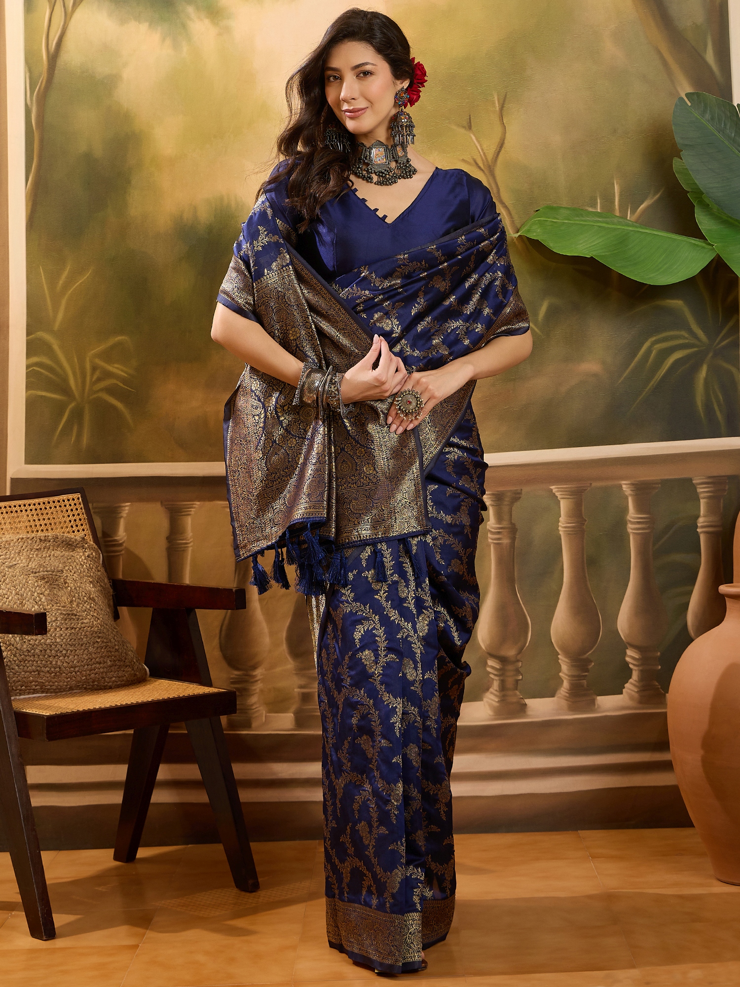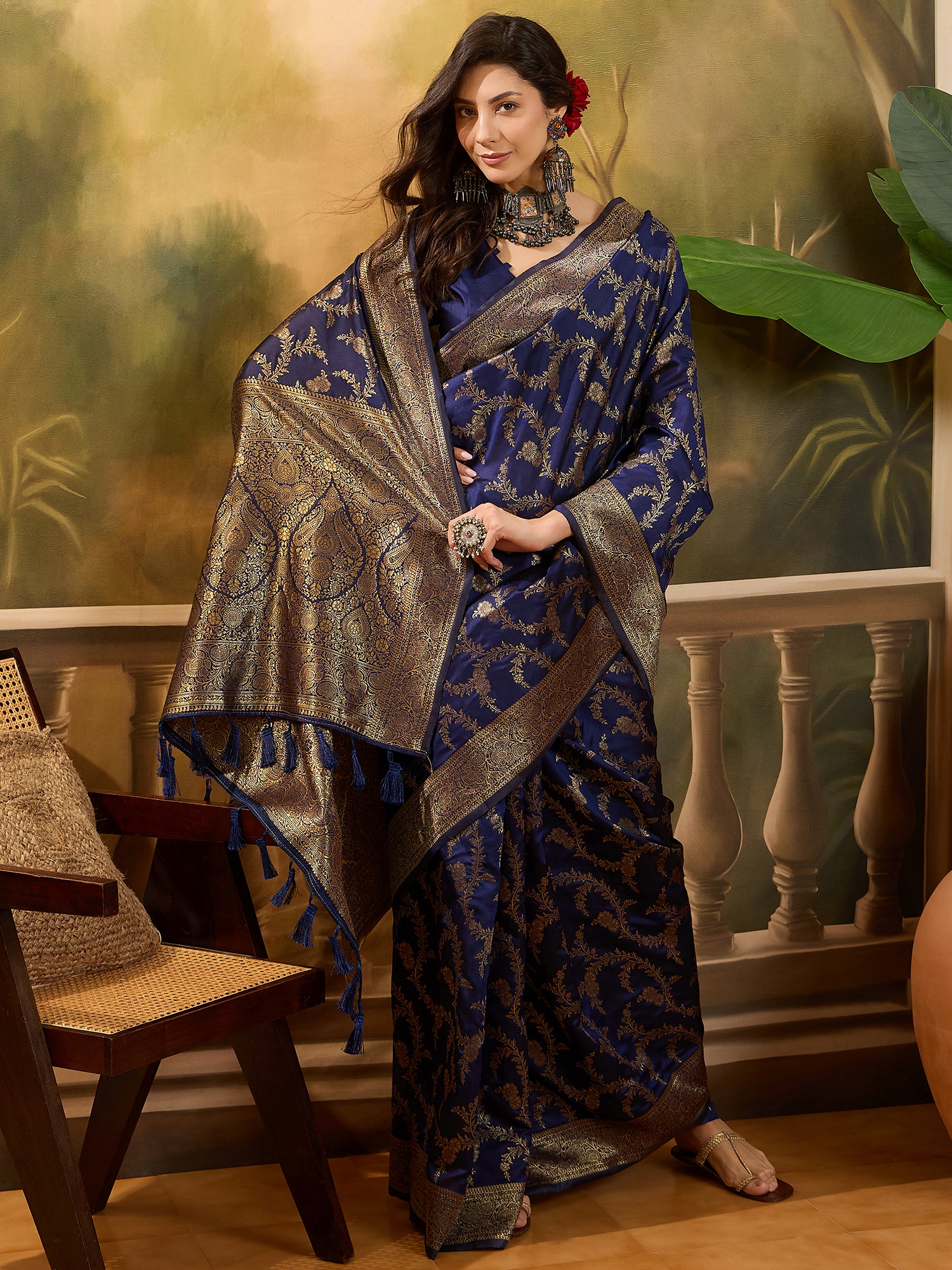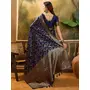 AASTHA FASHION Fashion Dream Womens Navy Blue Banarasi Jacquard Saree | Soft & Elegant Traditional Wear