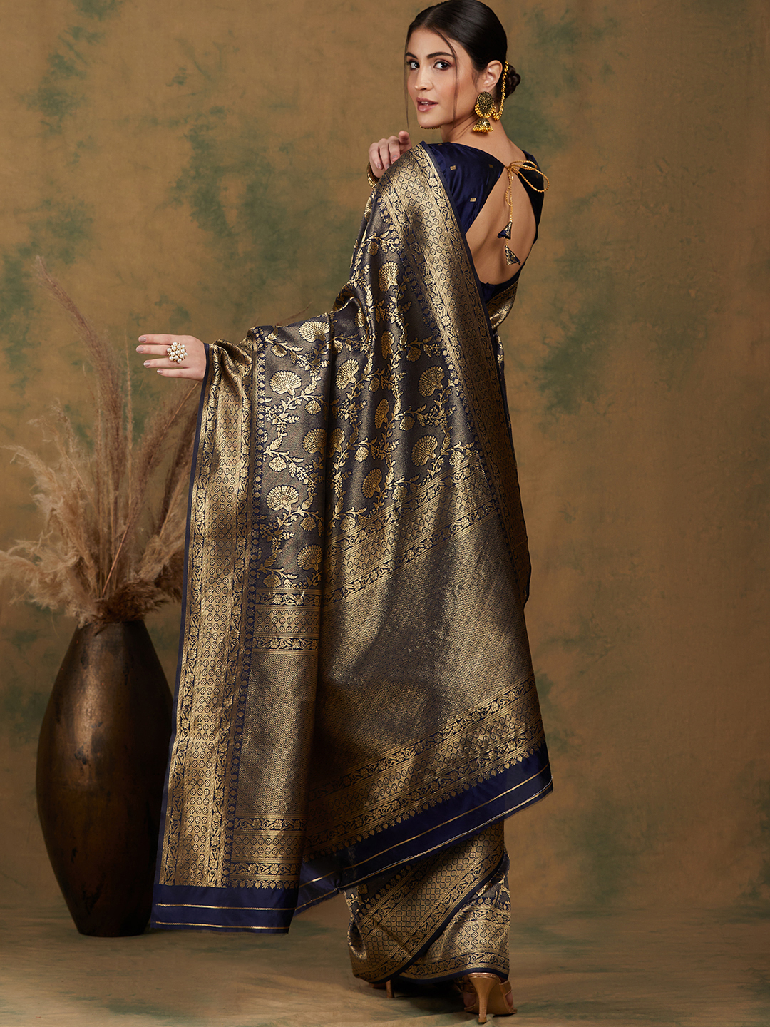 AASTHA FASHION Fashion Dream Womens Navy Blue Banarasi Silk Saree | Soft & Elegant Traditional Wear