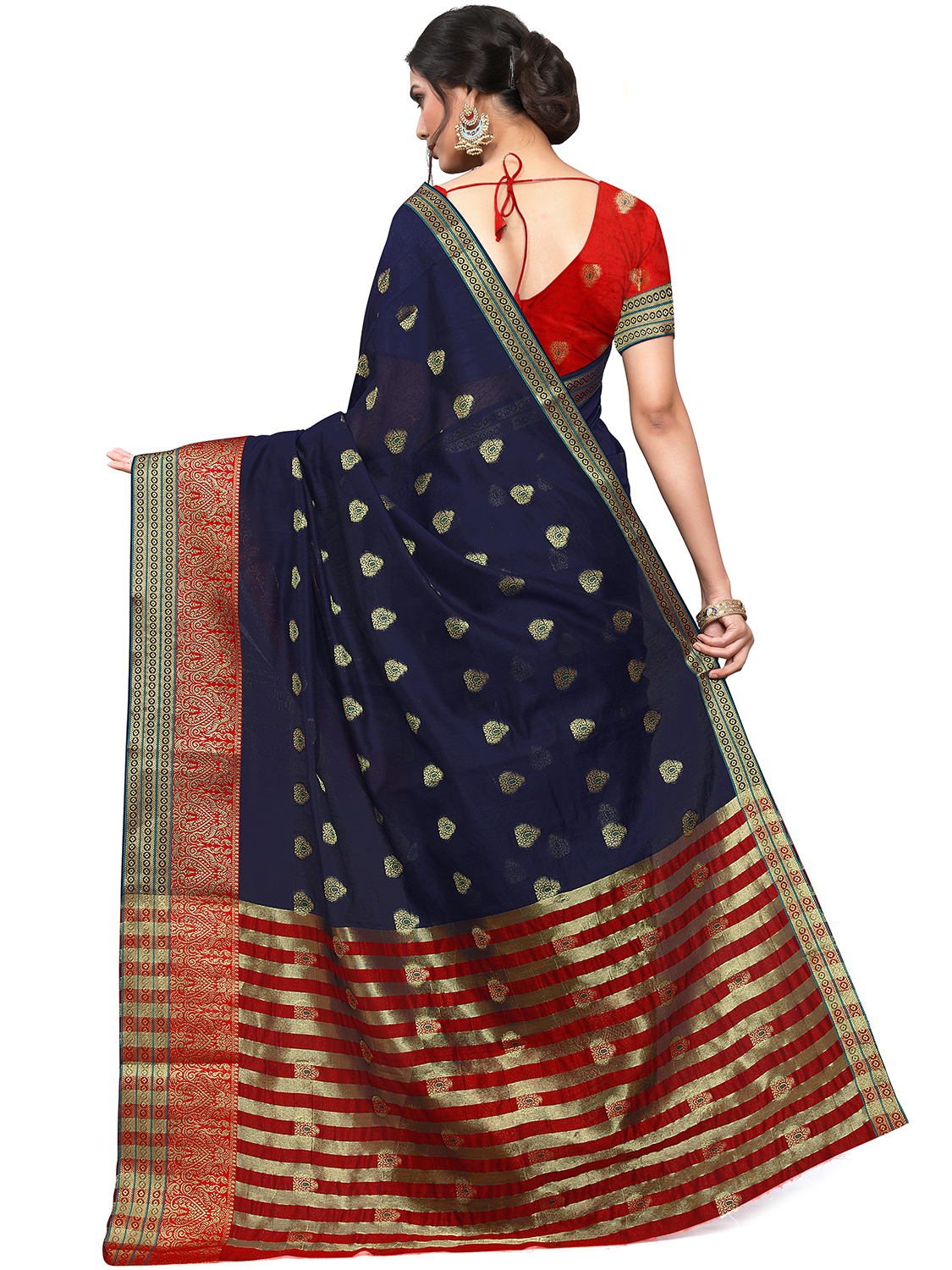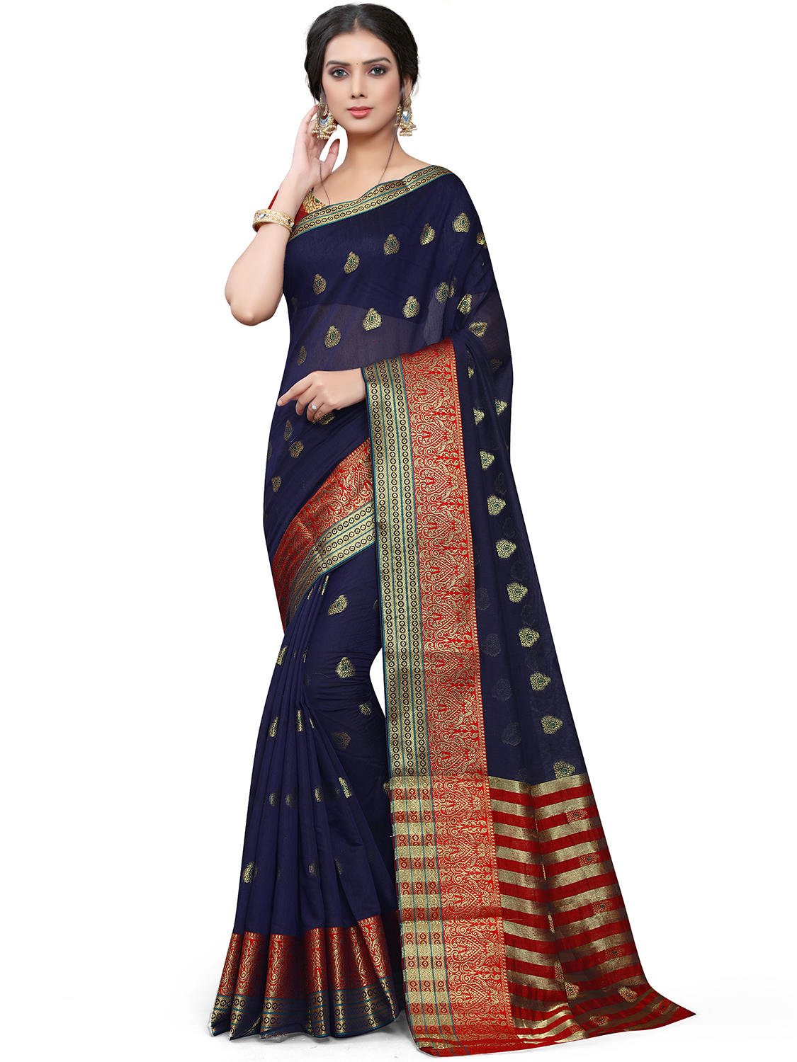 AASTHA FASHION Fashion Dream Womens Navy Blue Cotton Blend Saree | Soft & Elegant Traditional Wear