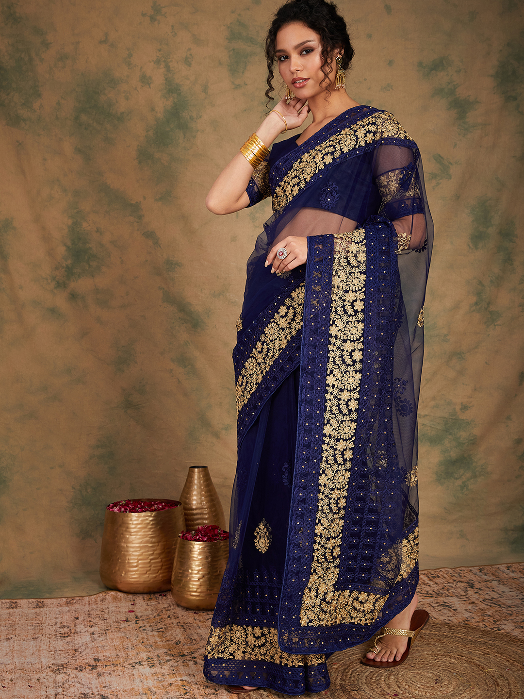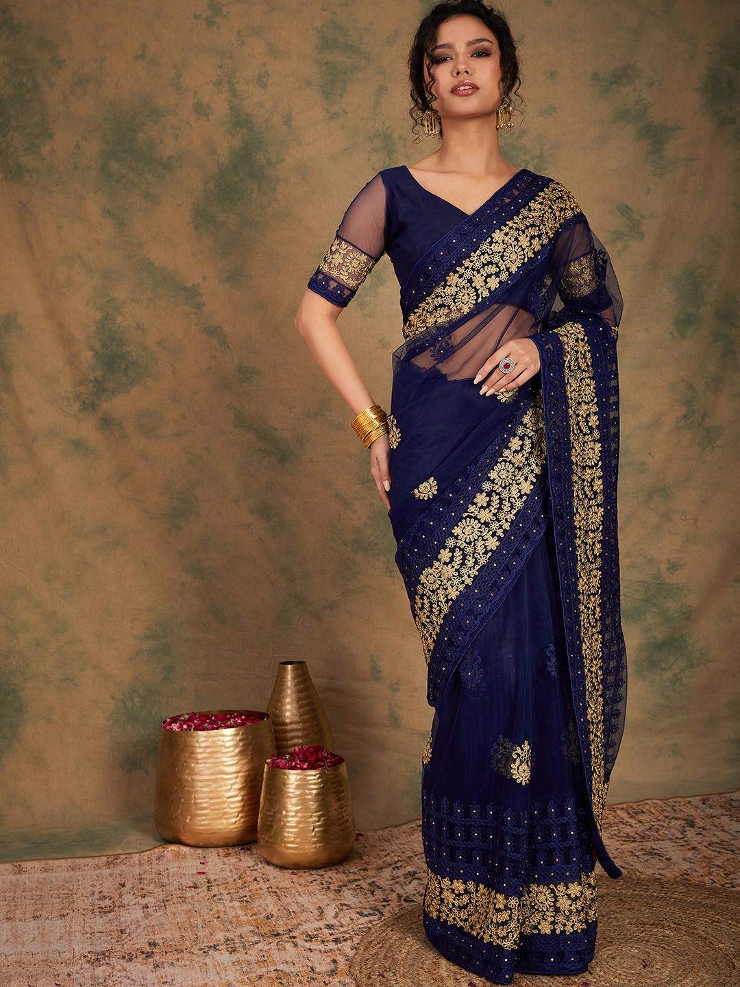 AASTHA FASHION Fashion Dream Womens Navy Blue Net Saree | Soft & Elegant Traditional Wear