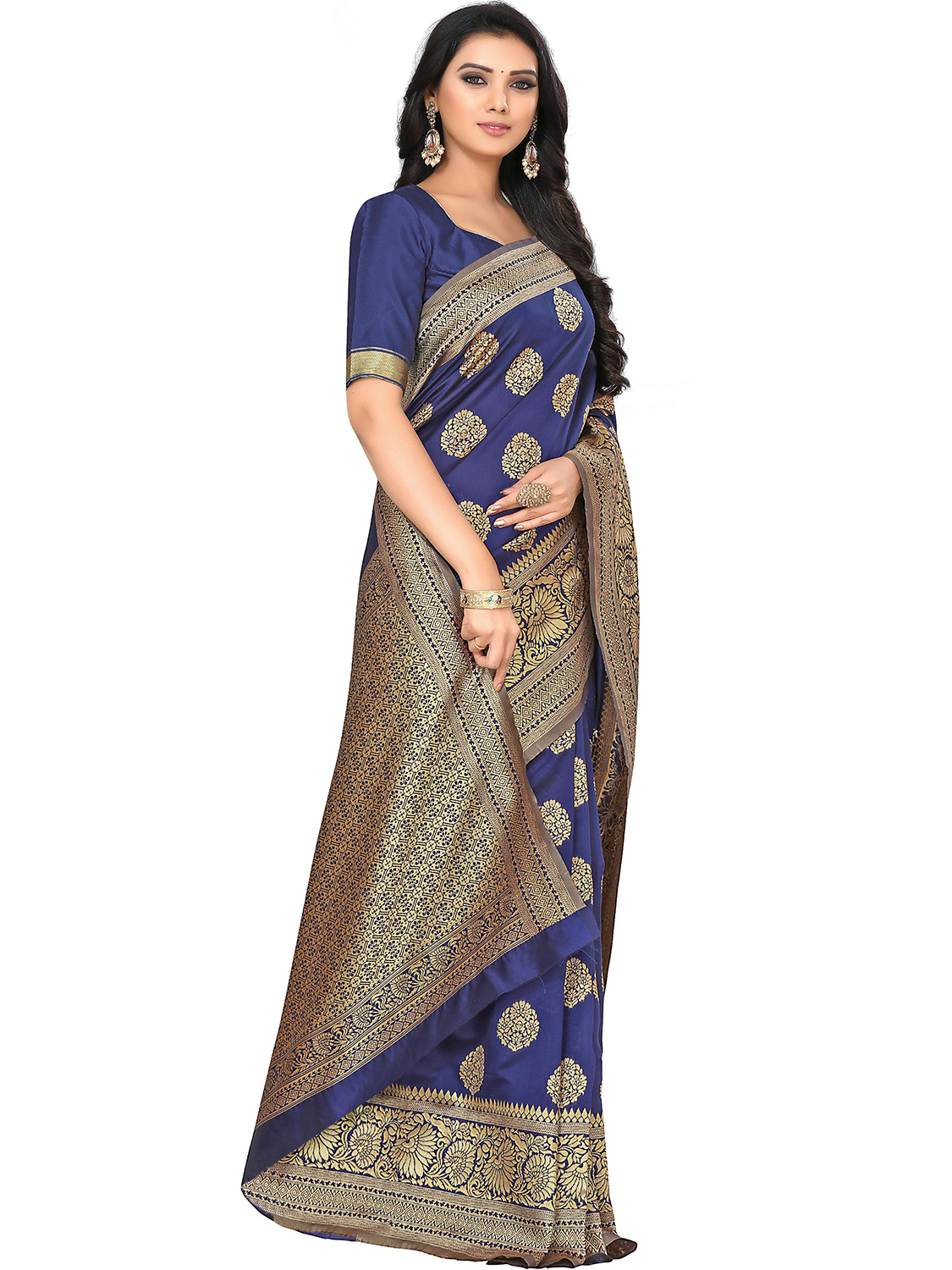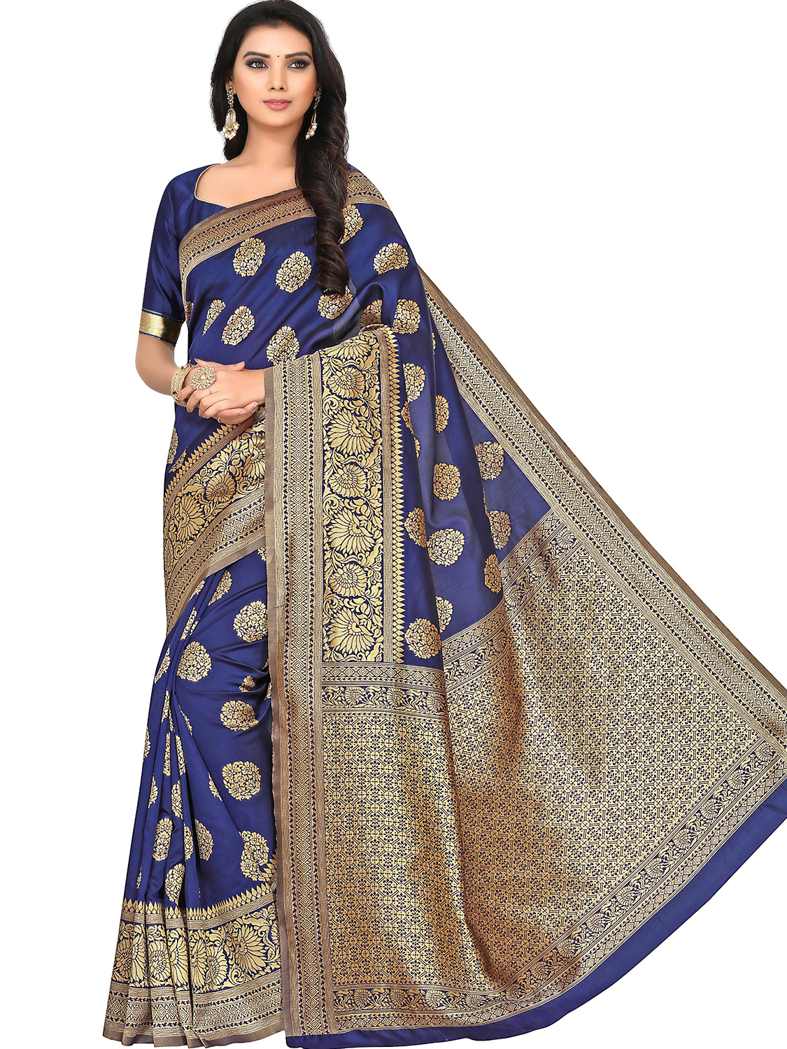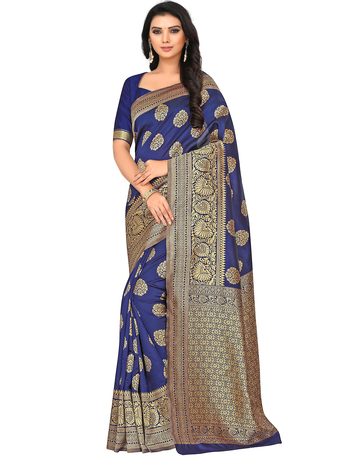 AASTHA FASHION Fashion Dream Womens Navy Blue Silk Blend Saree | Soft & Elegant Traditional Wear