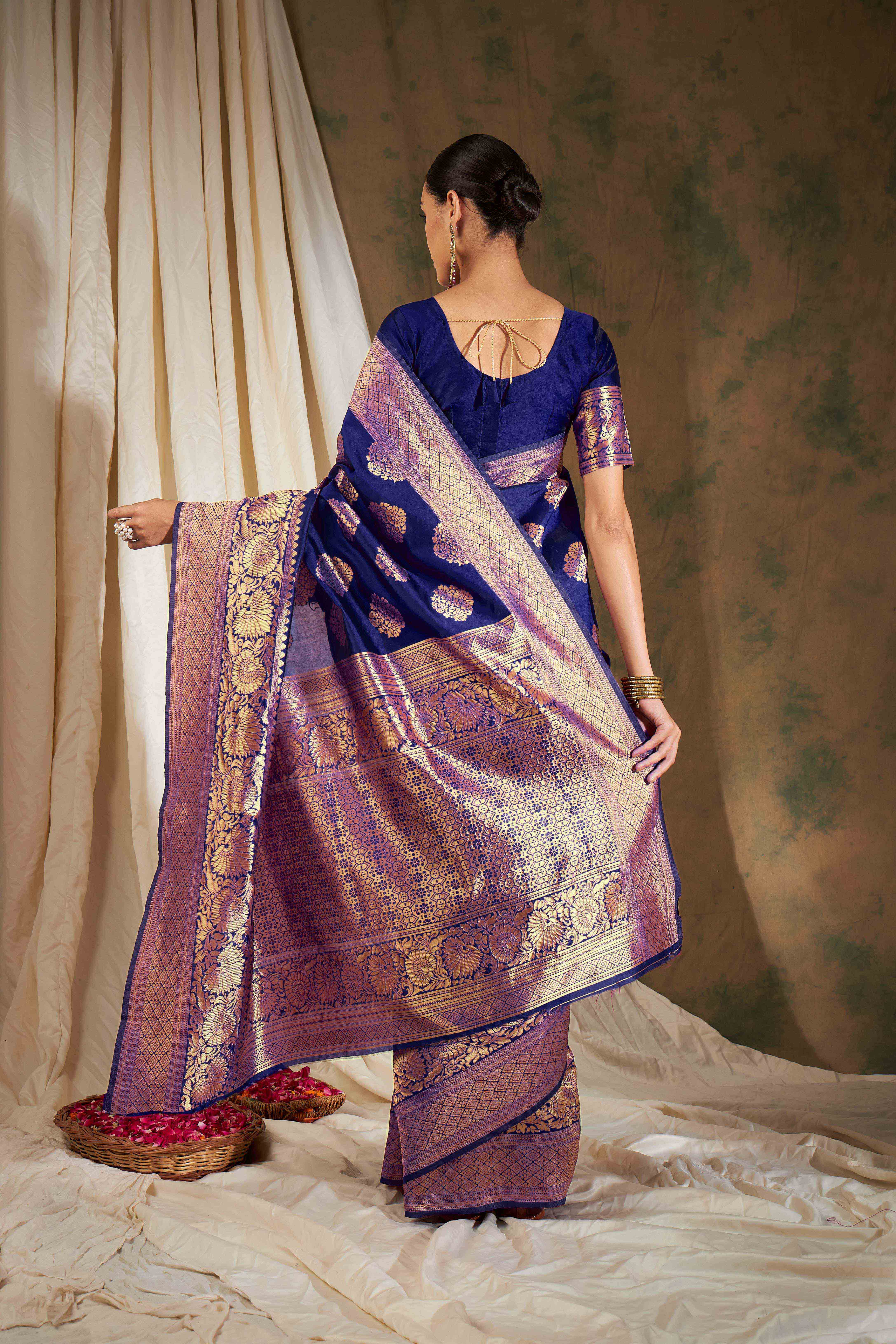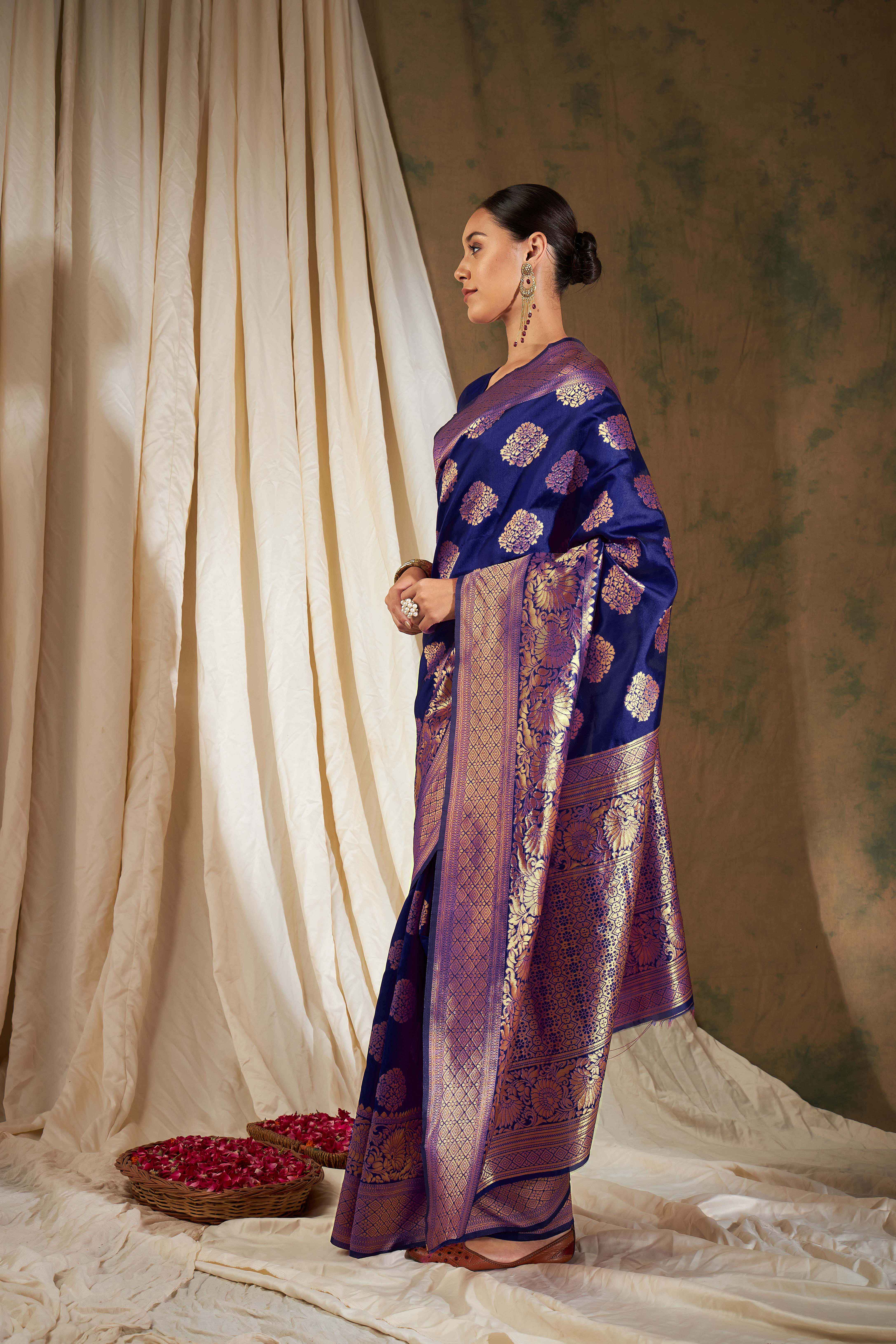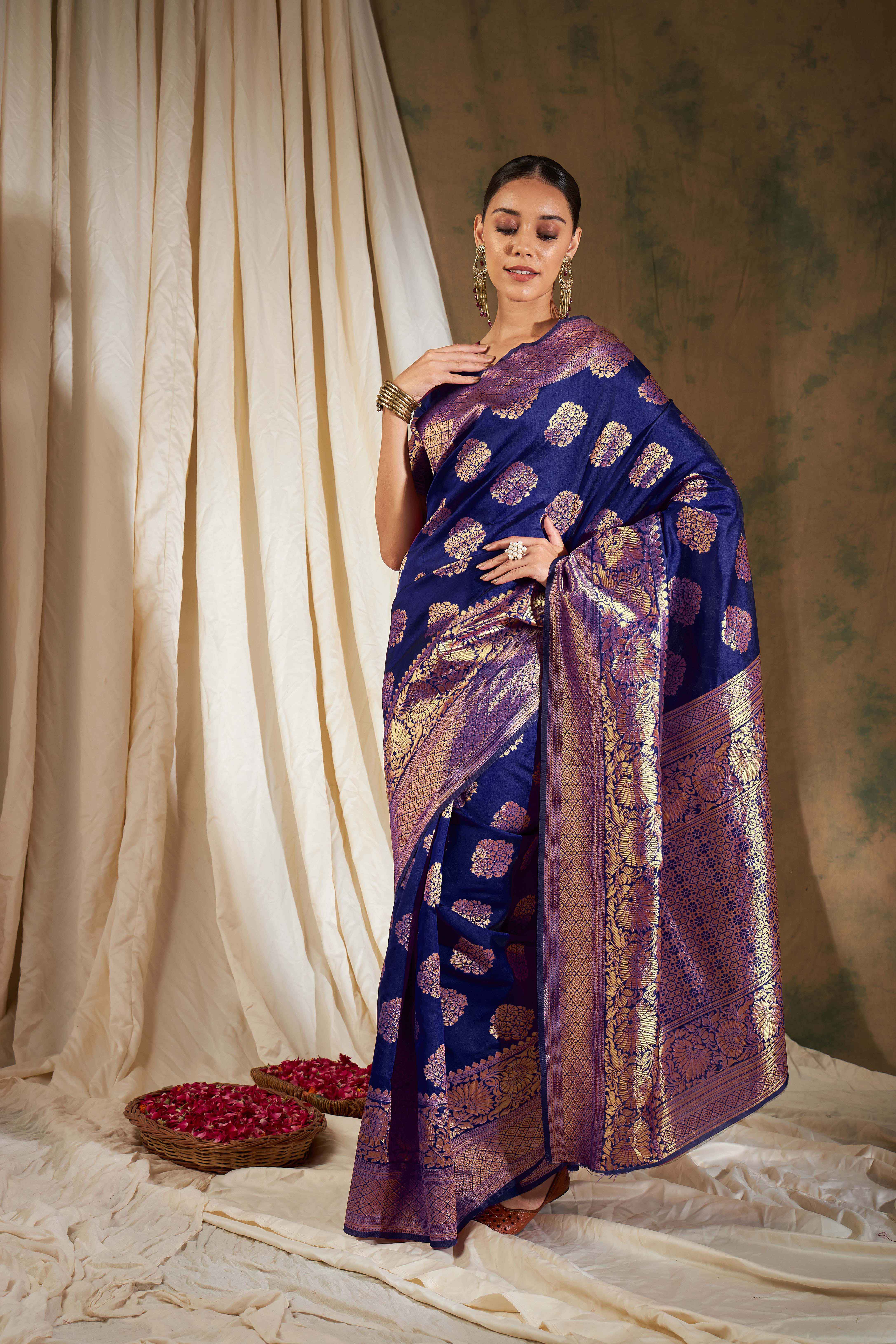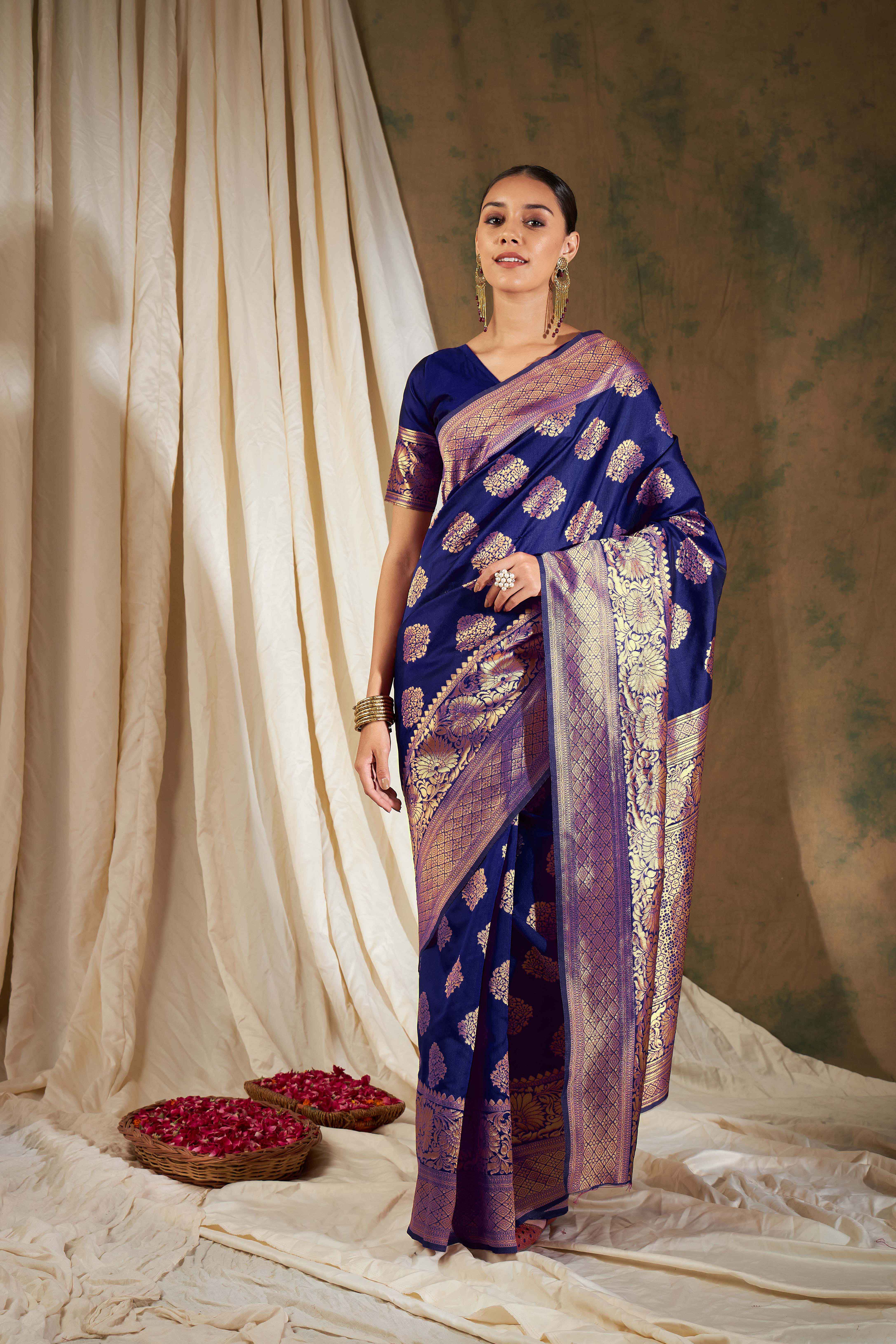 AASTHA FASHION Fashion Dream Womens NEAVY BLUE Banarasi Silk Saree | Soft & Elegant Traditional Wear