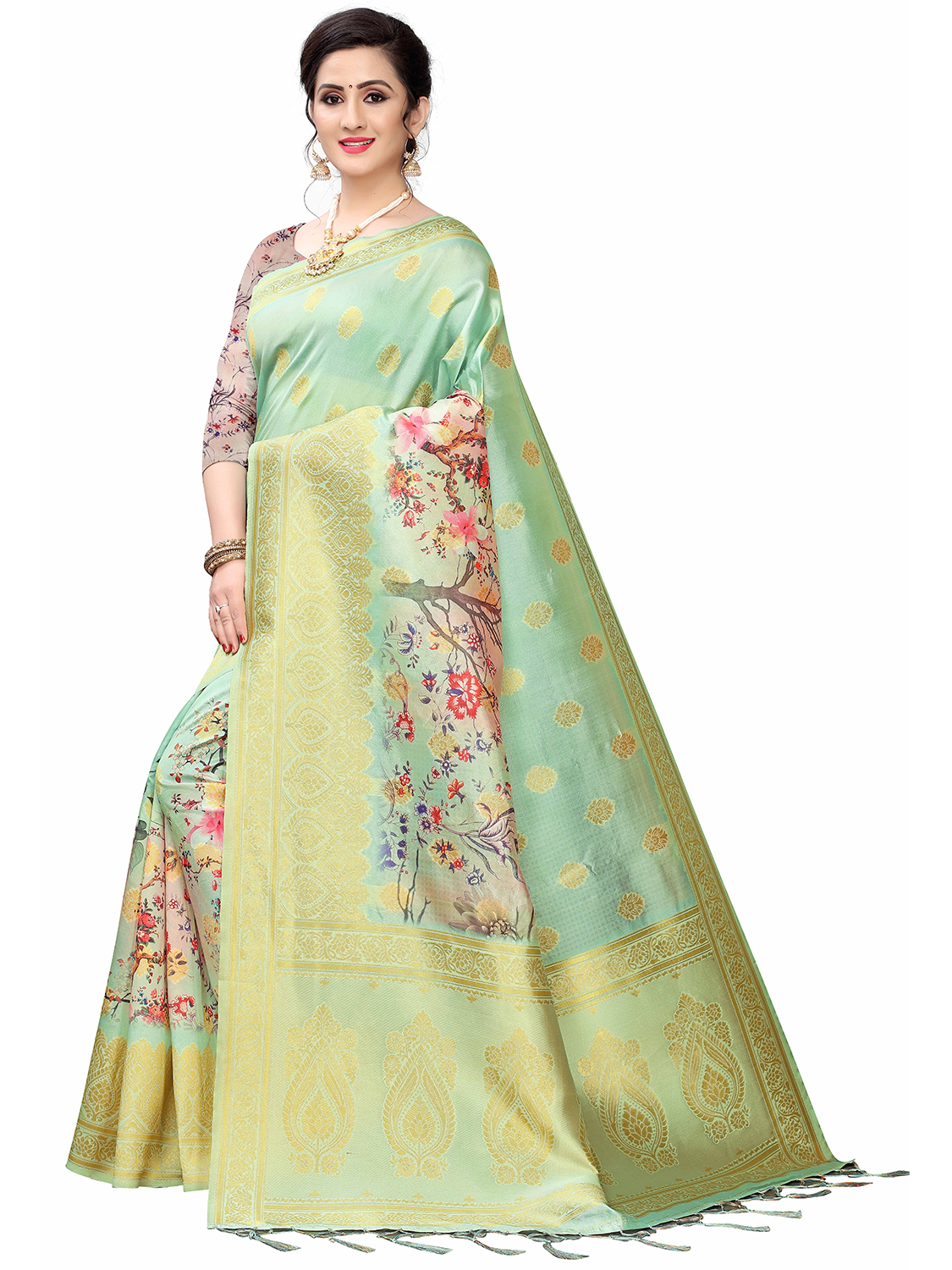 • Saree Fabric-Cotton Silk Blend ,Blouse Fabric-Cotton Silk Blend