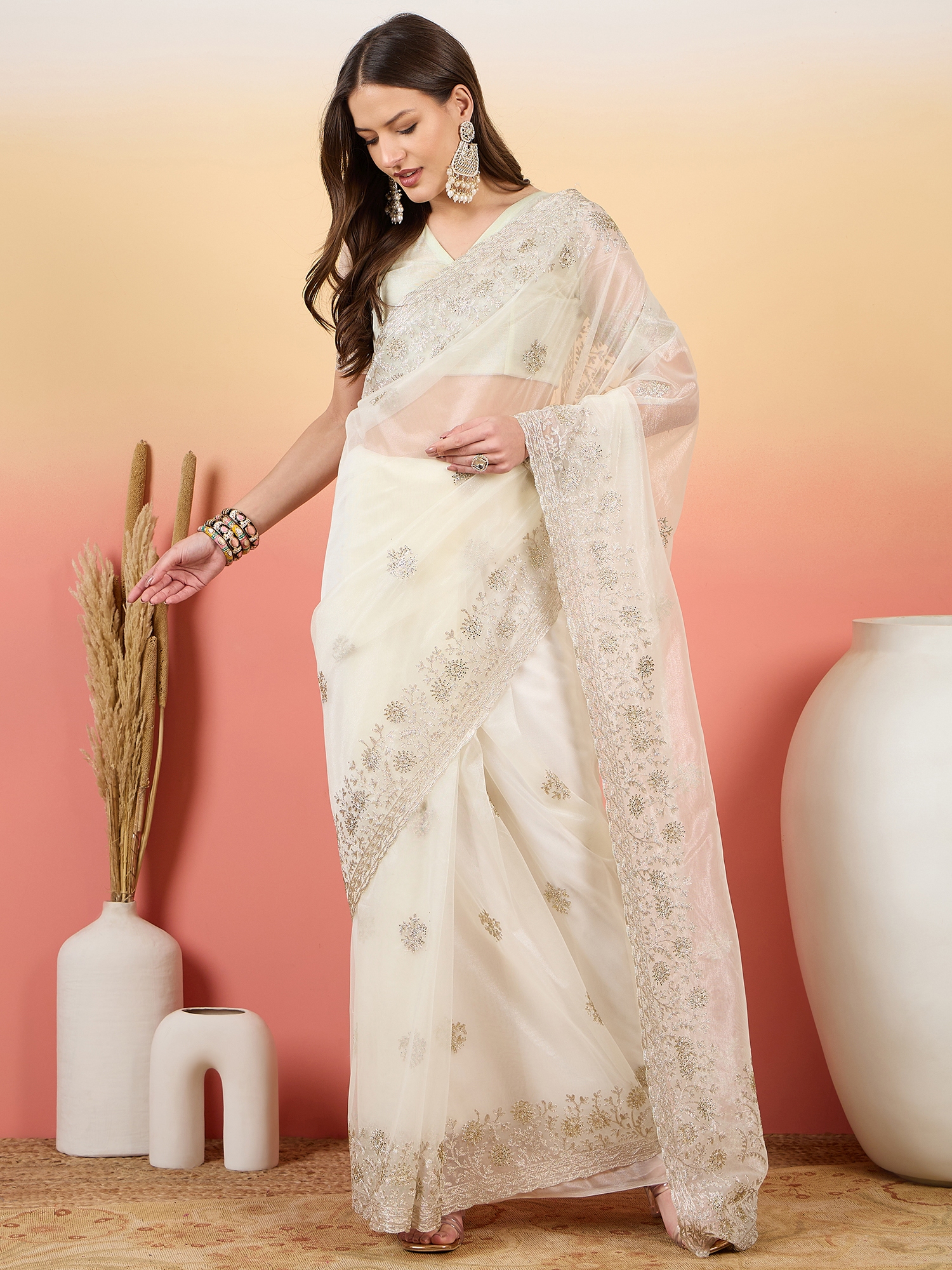 • Saree Work-Embroidered ,Blouse Work- Twil Net