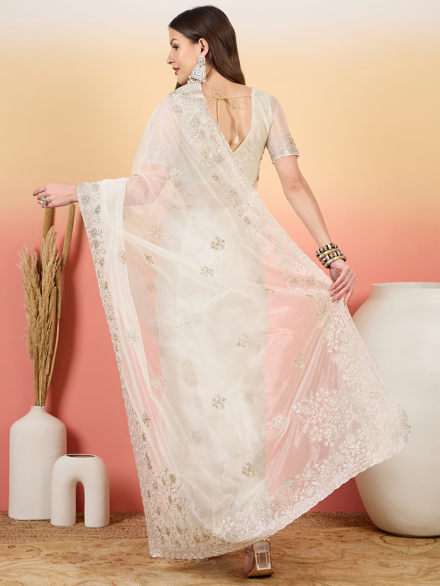 AASTHA FASHION Fashion Dream Womens Off White Twil Net Saree | Soft & Elegant Traditional Wear