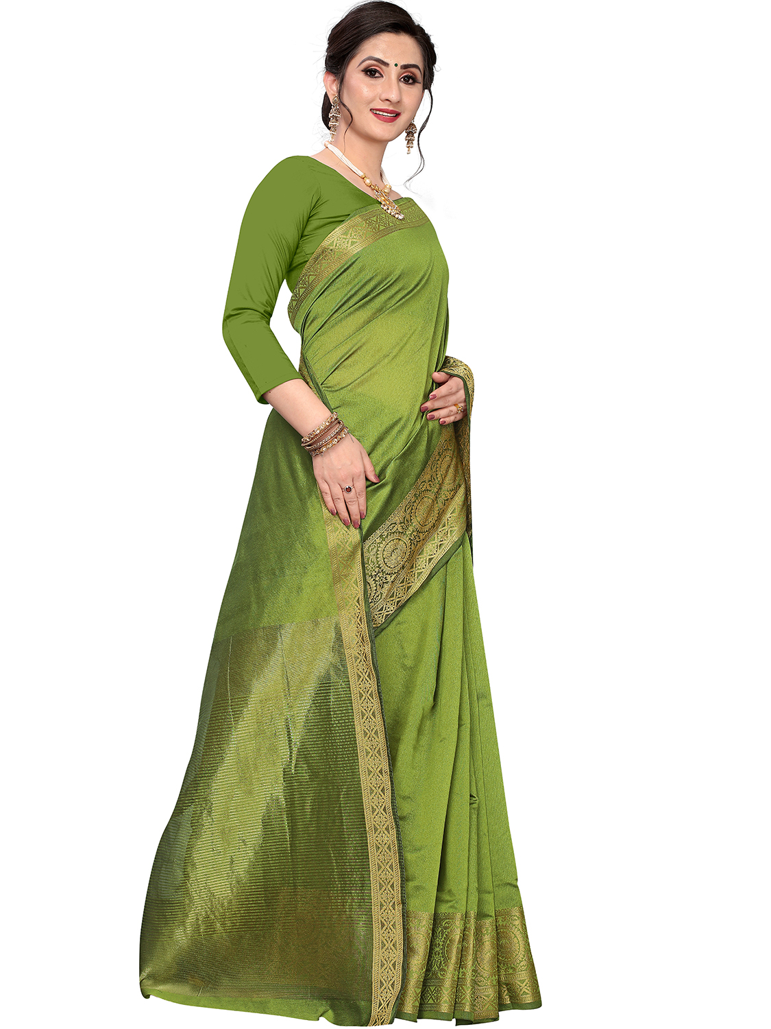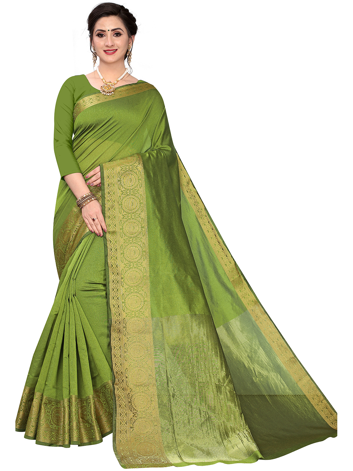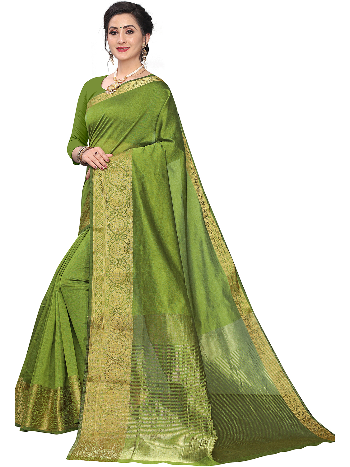 AASTHA FASHION Fashion Dream Womens Olive Green Cotton silk Saree | Soft & Elegant Traditional Wear
