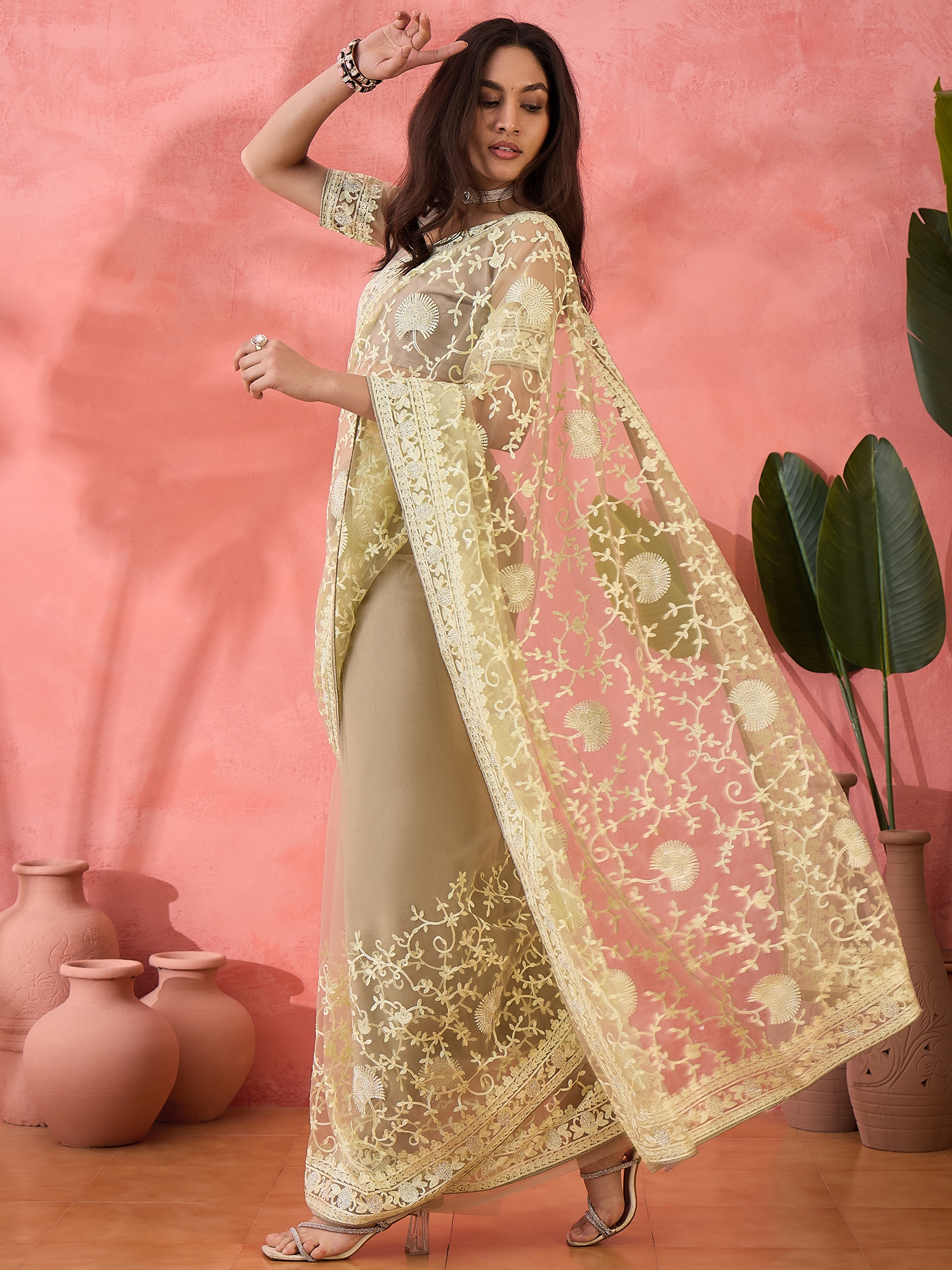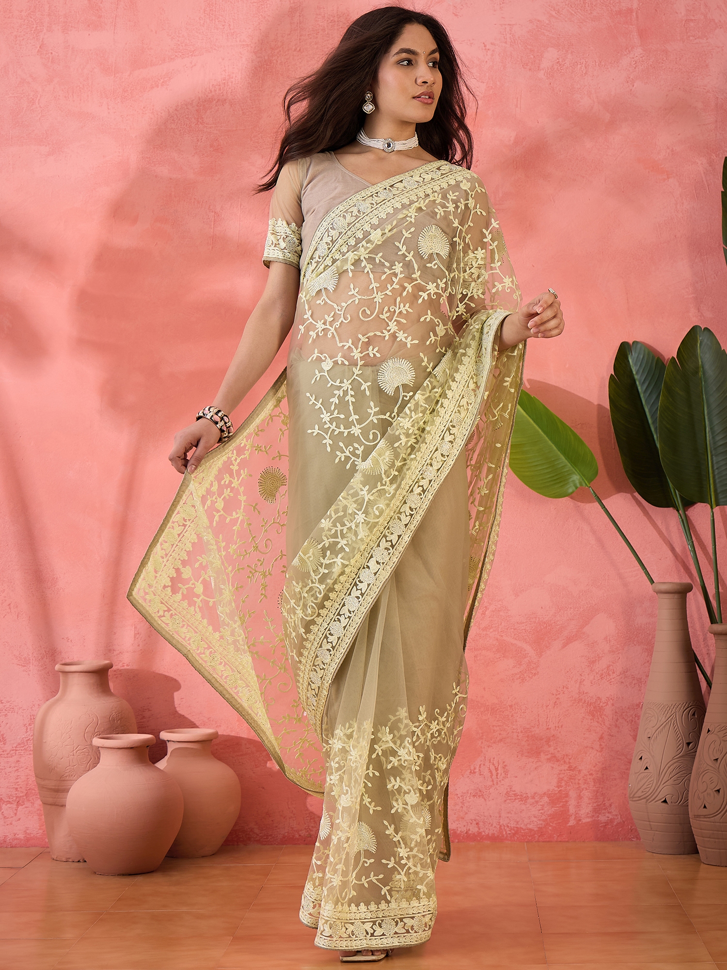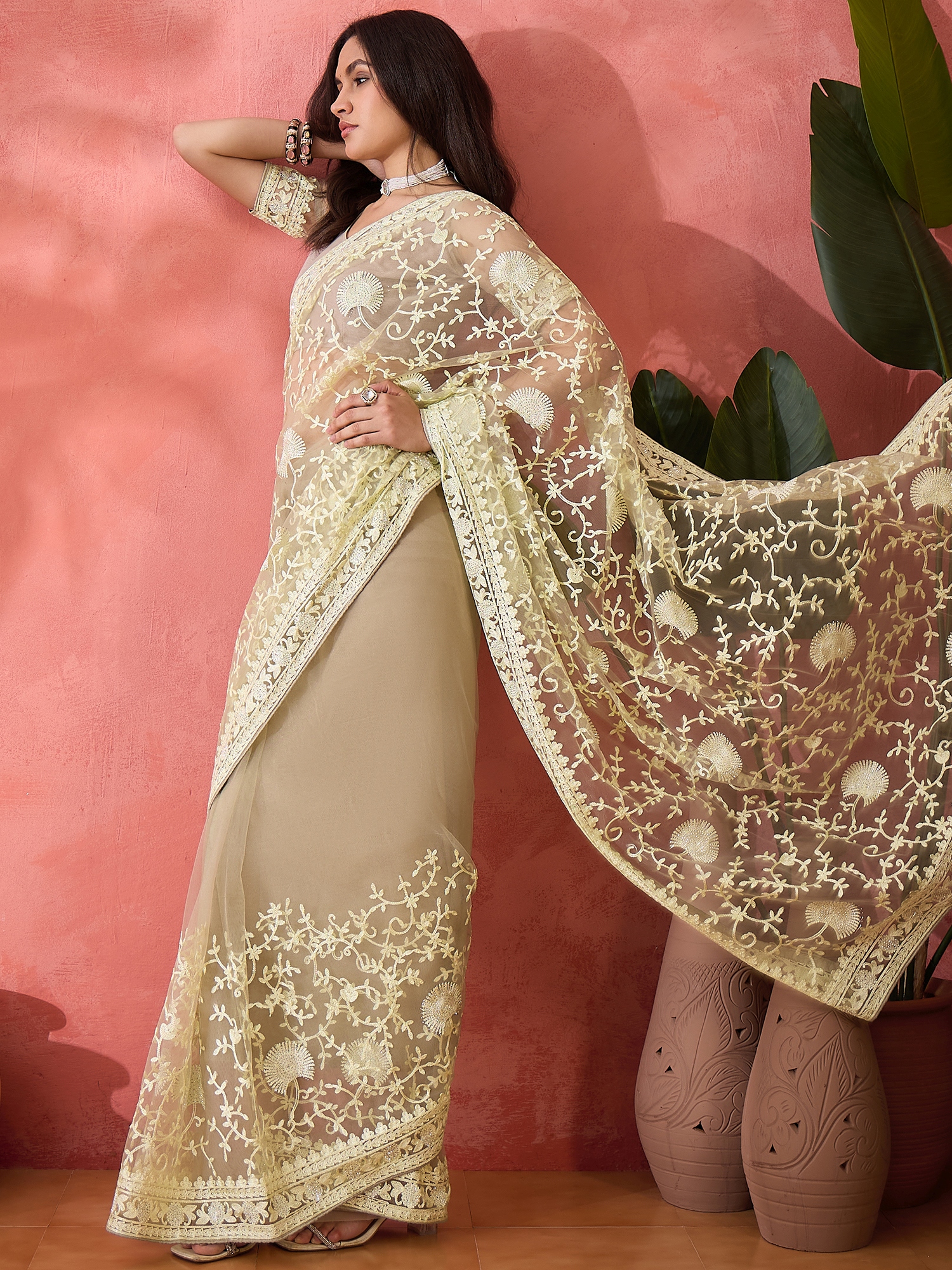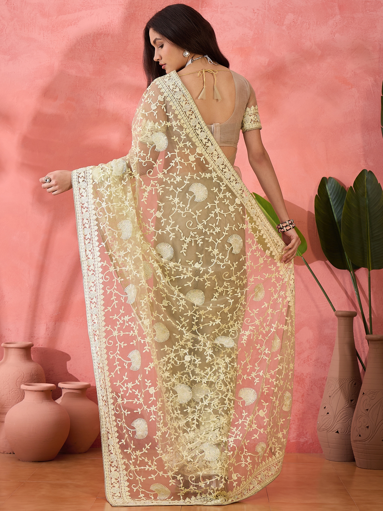 AASTHA FASHION Fashion Dream Womens Pale Yellow Net Saree | Soft & Elegant Traditional Wear