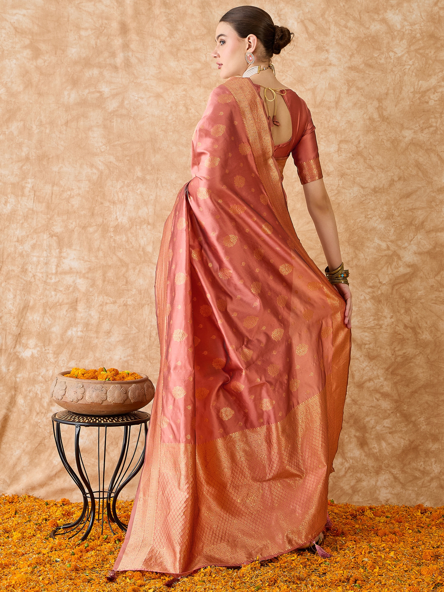 AASTHA FASHION Fashion Dream Womens Peach Banarasi Silk Saree | Soft & Elegant Traditional Wear
