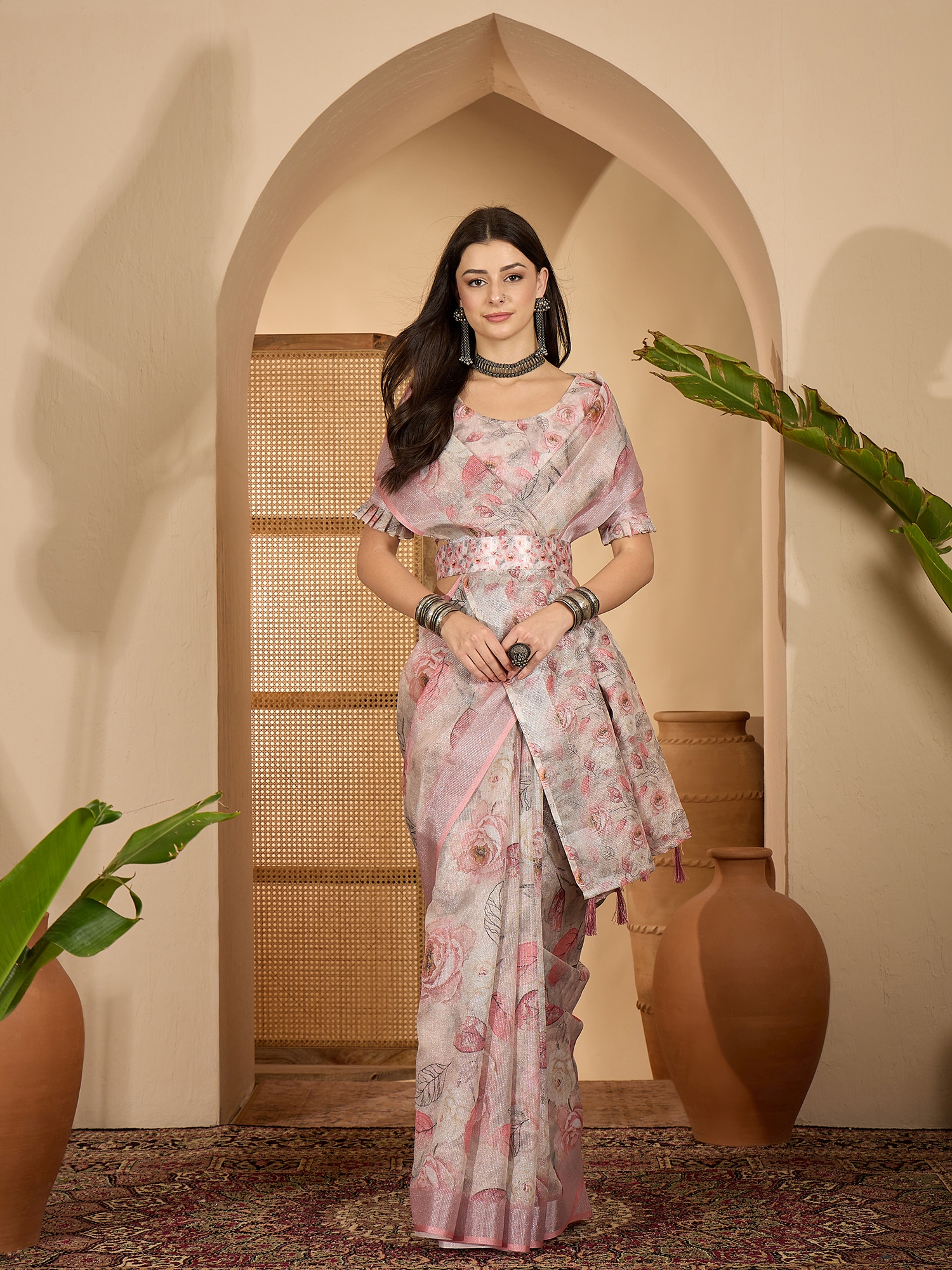 • Saree Fabric-Linen Zari Silver ,Blouse Fabric-Linen Zari Silver