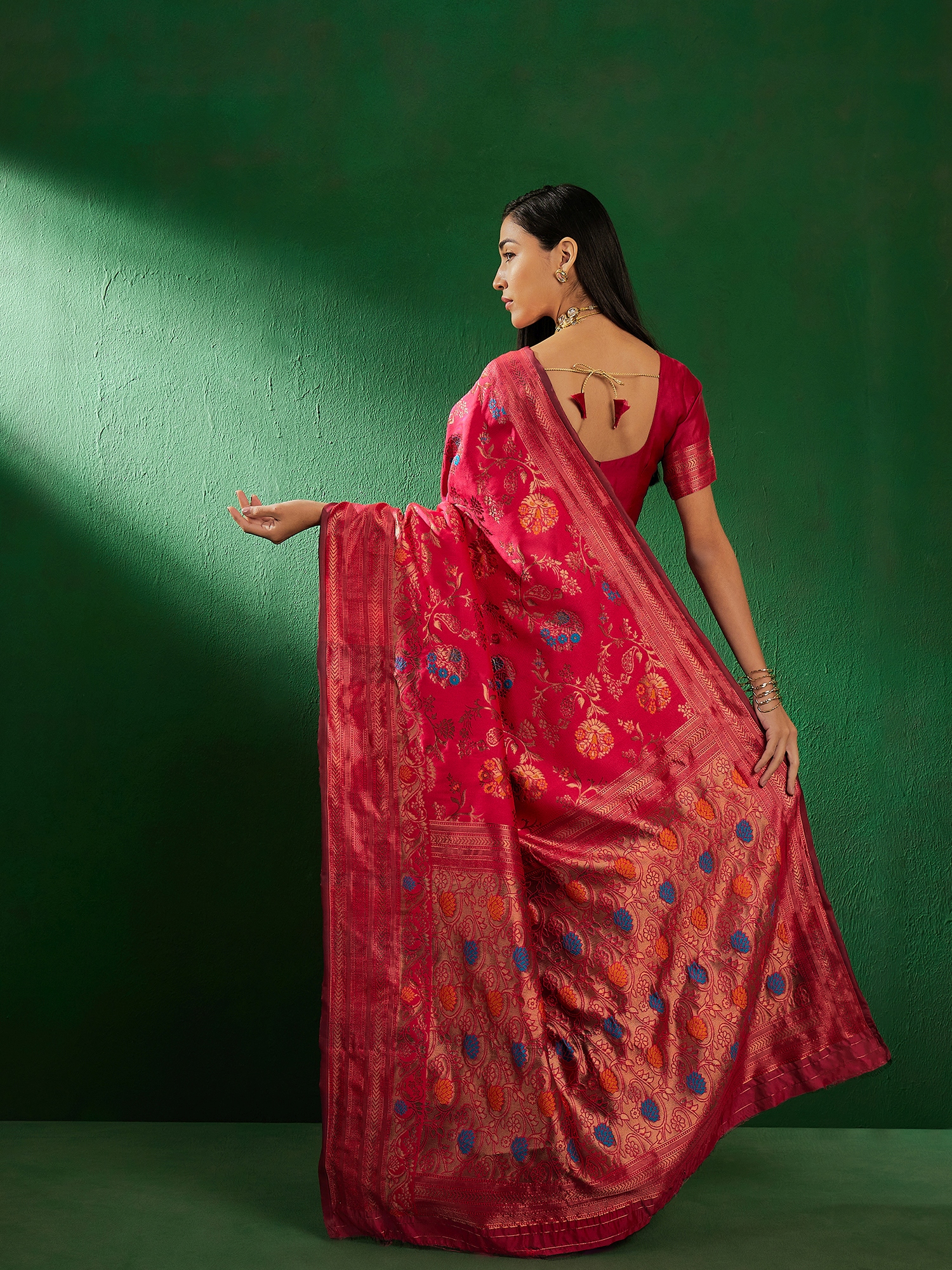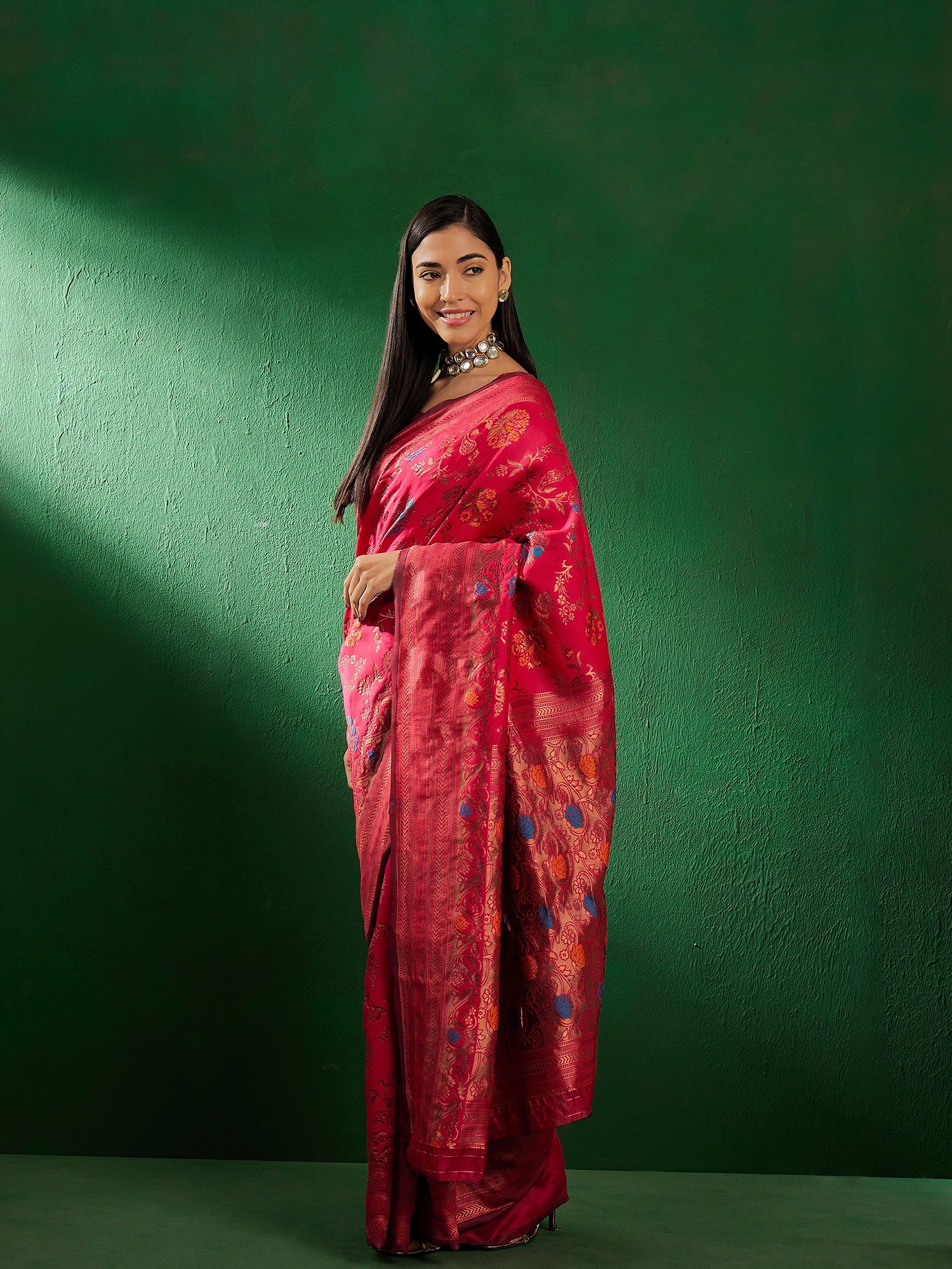 AASTHA FASHION Fashion Dream Womens Pink Banarasi Silk Saree | Soft & Elegant Traditional Wear