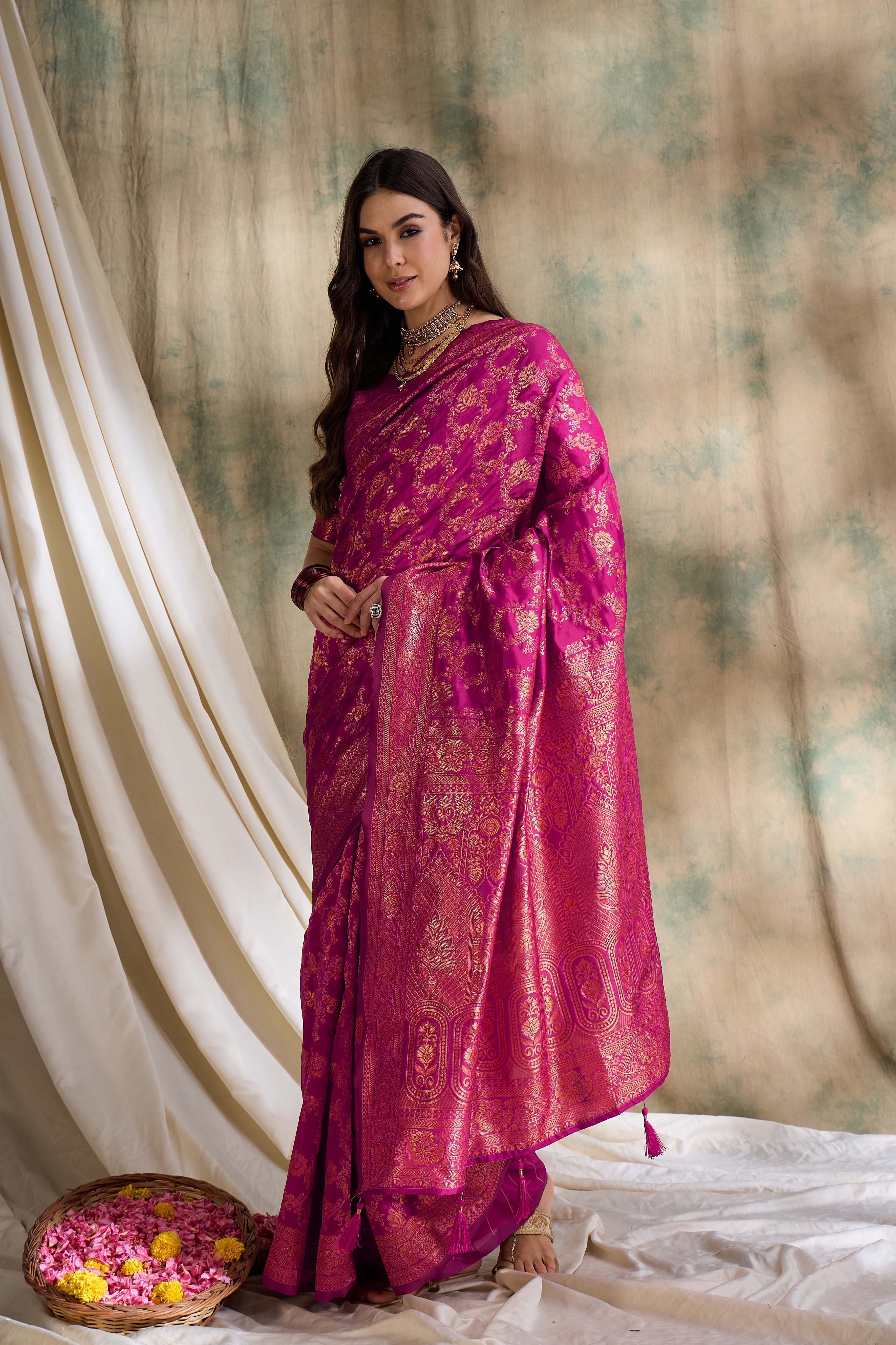 AASTHA FASHION Fashion Dream Womens Pink Banarasi Silk Saree | Soft & Elegant Traditional Wear