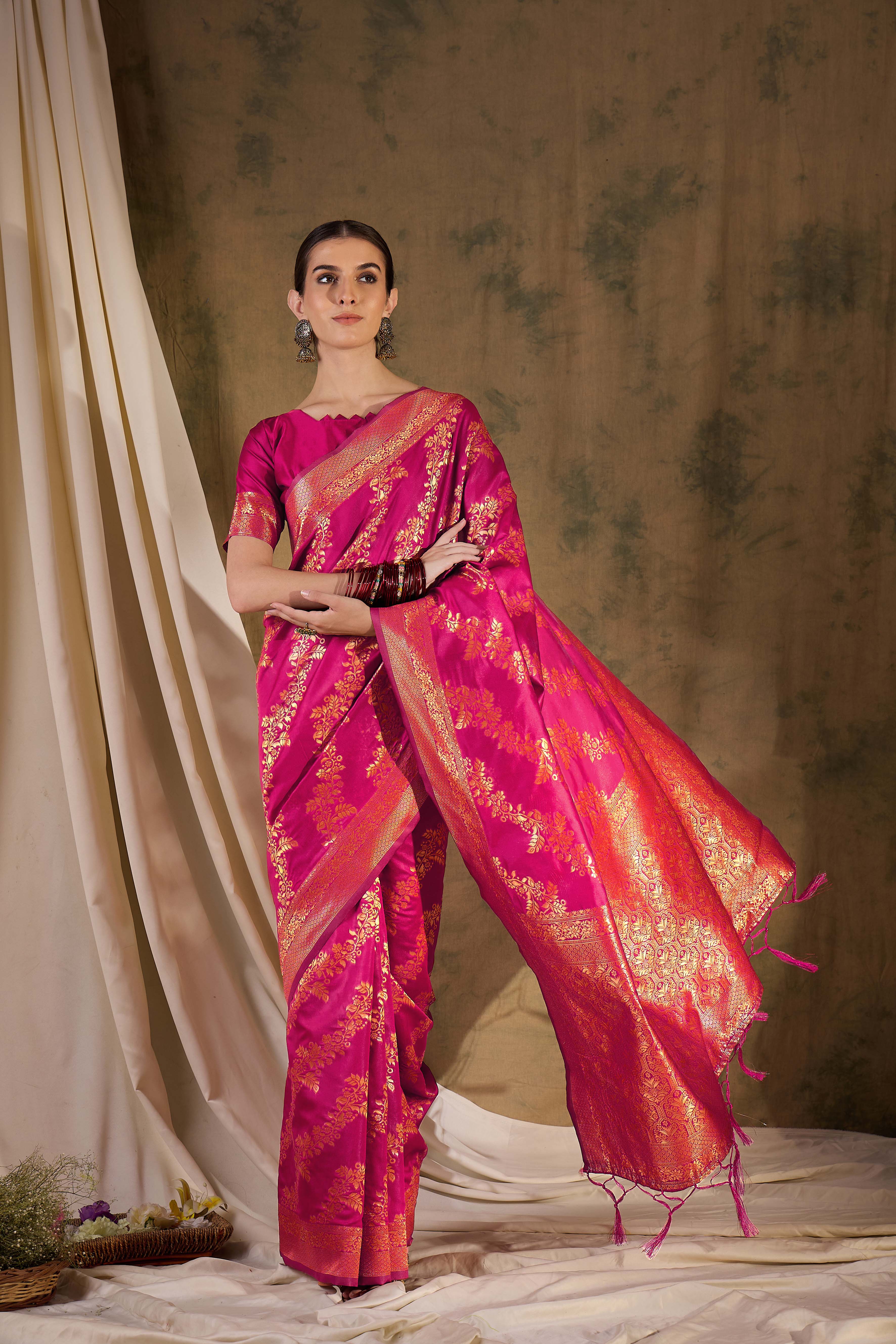 AASTHA FASHION Fashion Dream Womens Pink Banarasi Silk Saree | Soft & Elegant Traditional Wear