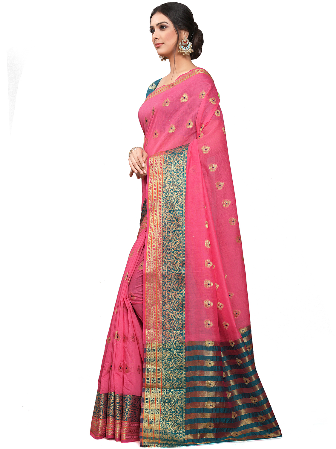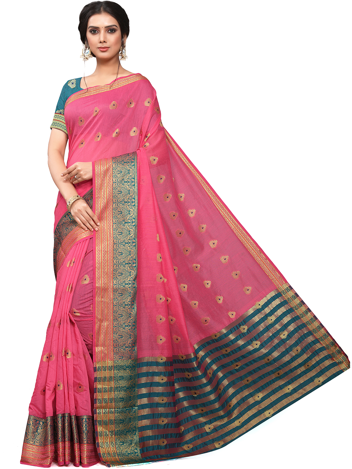 AASTHA FASHION Fashion Dream Womens Pink Cotton Blend Saree | Soft & Elegant Traditional Wear