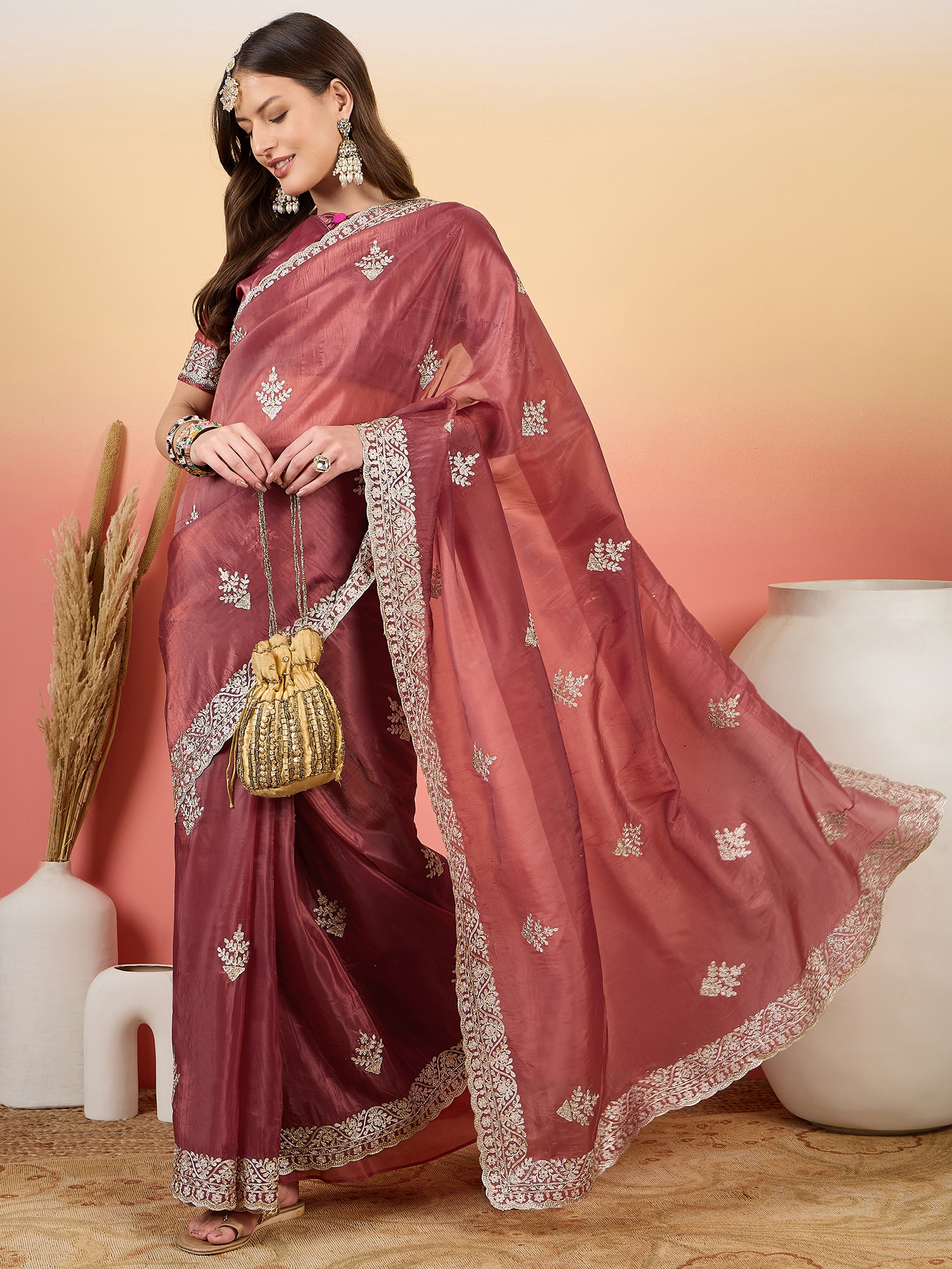 • Saree Work-Embroidered ,Blouse Work- Gold Crush