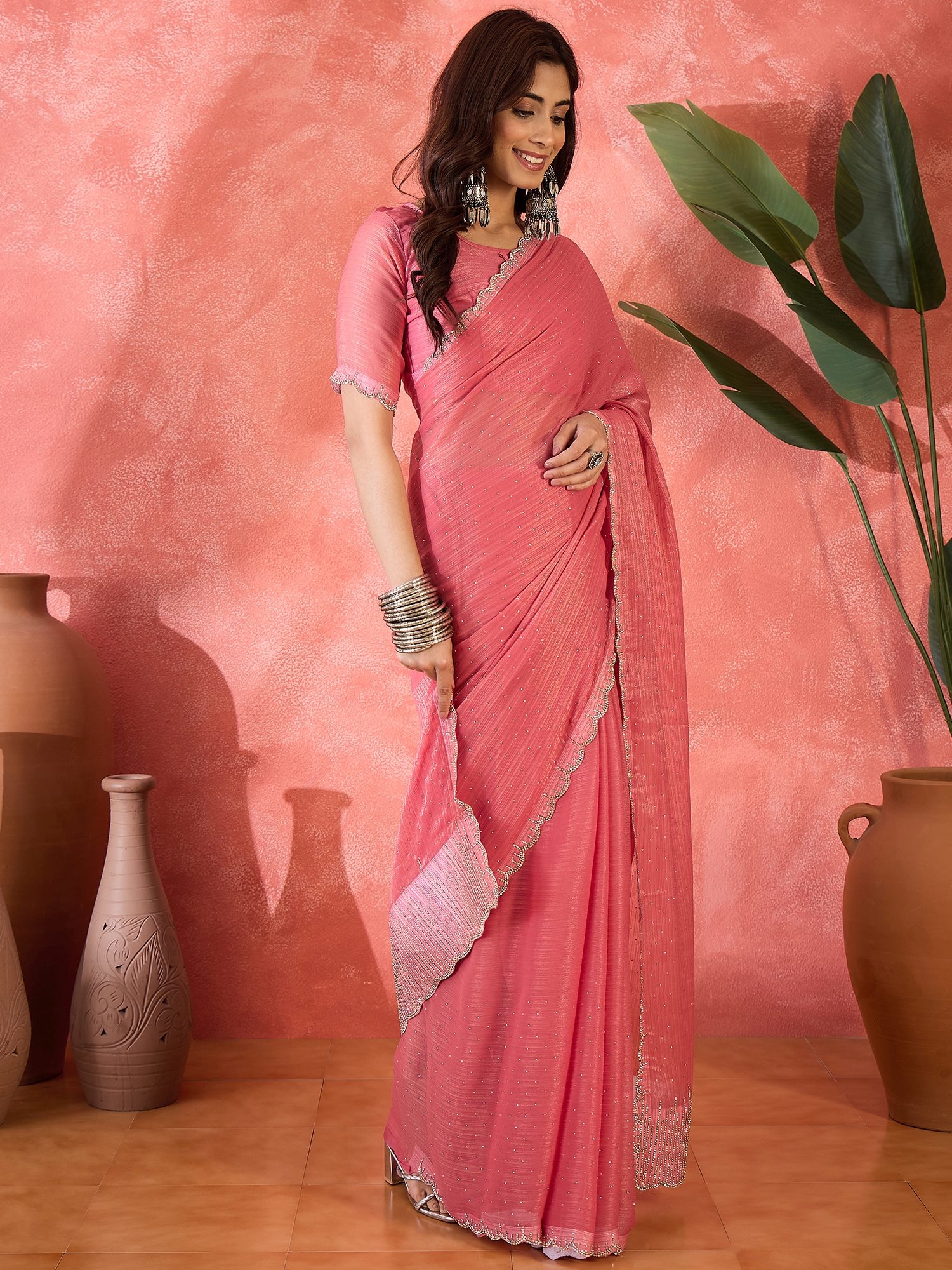 AASTHA FASHION Fashion Dream Womens Pink Heavy Barbari Silk Saree | Soft & Elegant Traditional Wear
