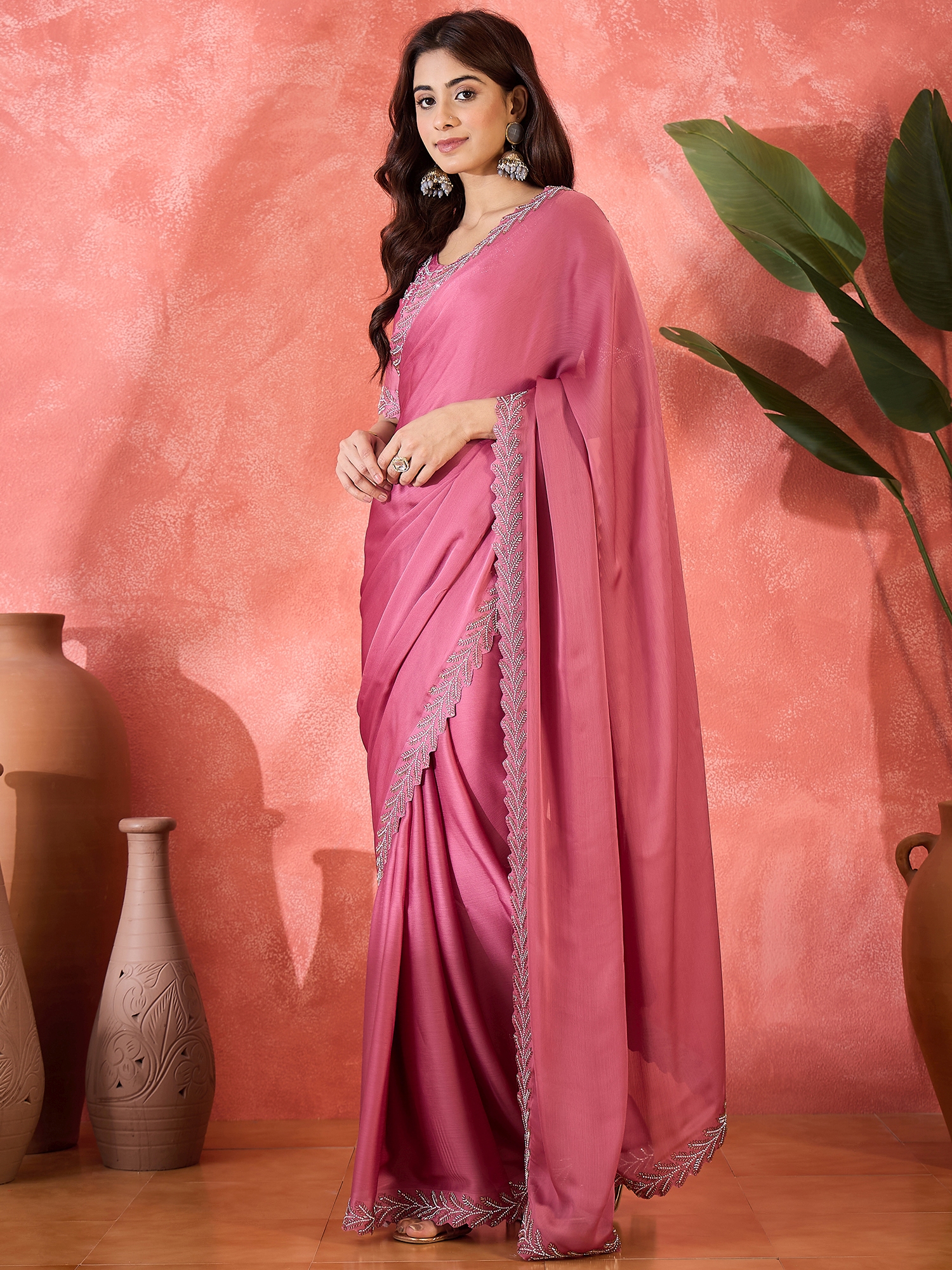 • Saree Fabric-Heavy Satin Chiffon ,Blouse Fabric-Heavy Satin Chiffon