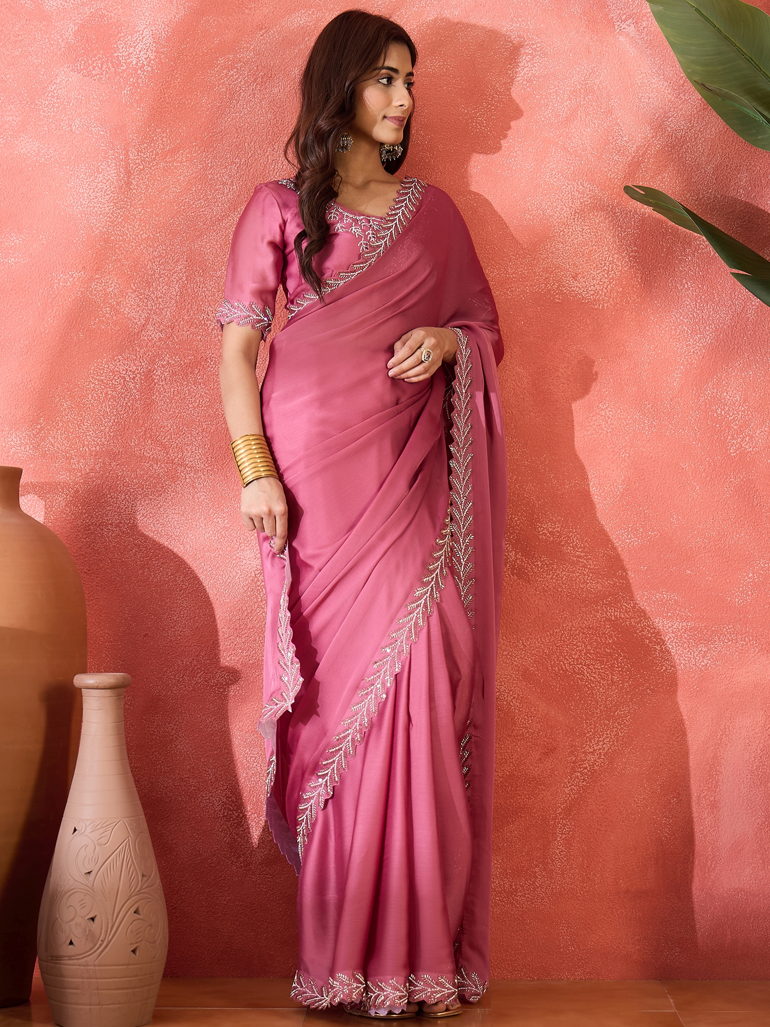 AASTHA FASHION Fashion Dream Womens Pink Heavy Satin Chiffon Saree | Soft & Elegant Traditional Wear