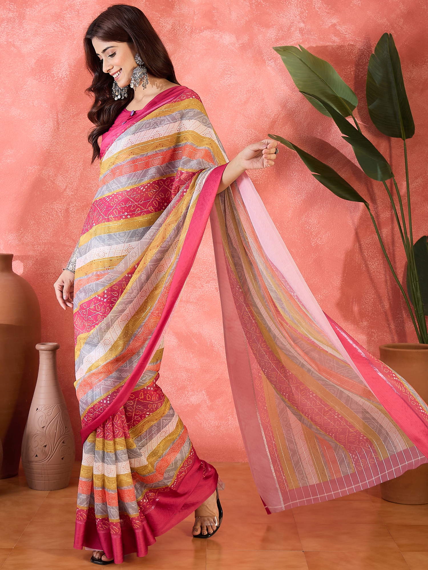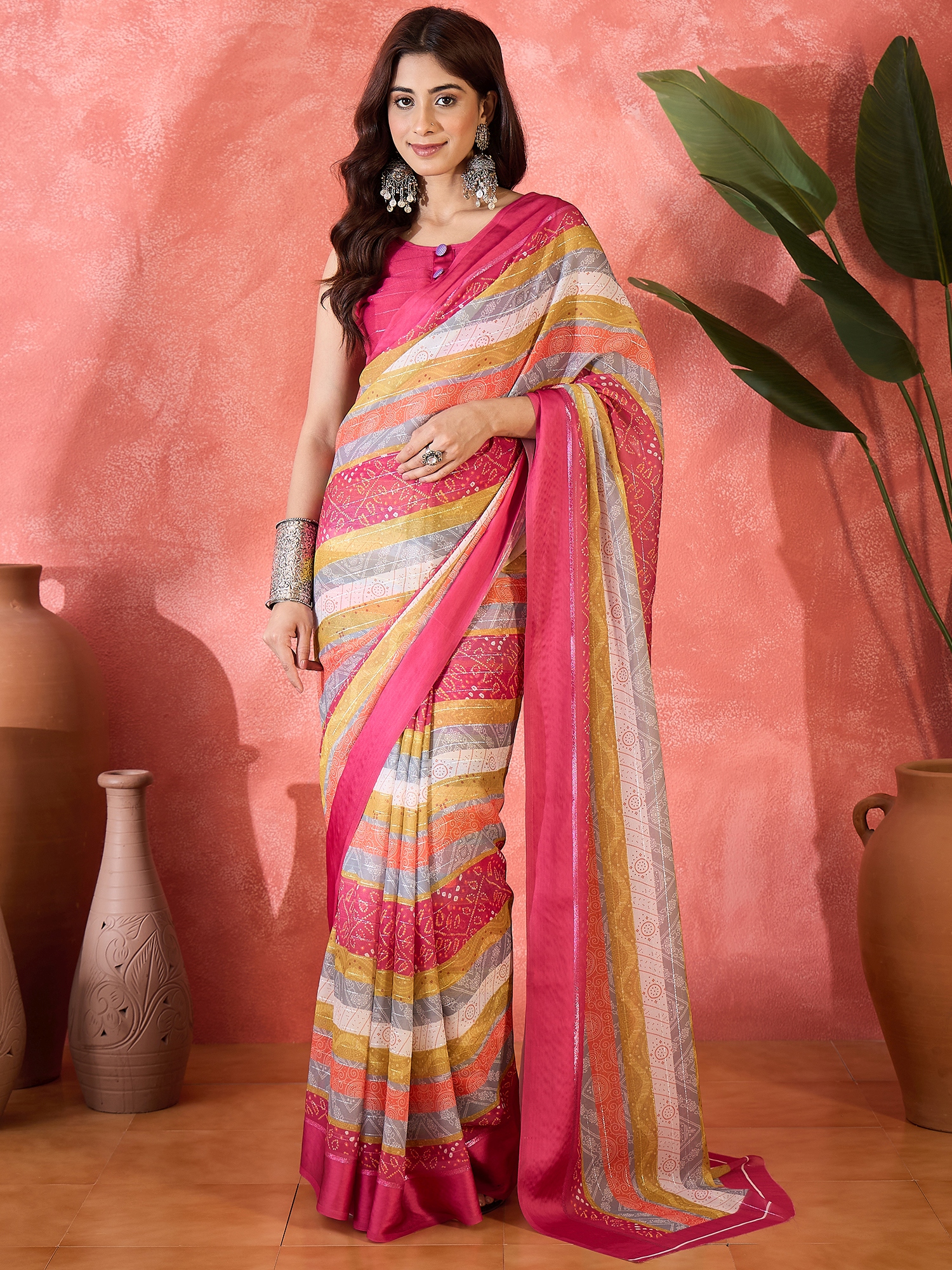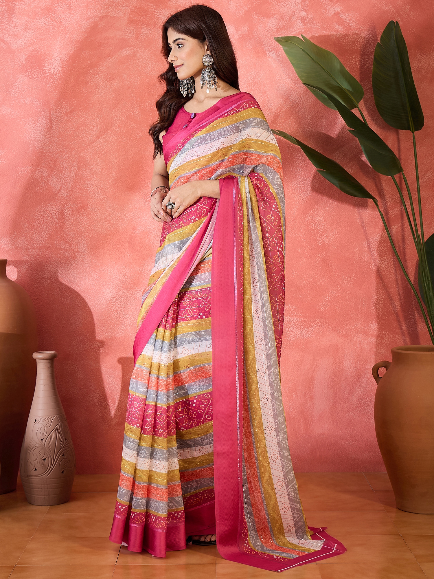 AASTHA FASHION Fashion Dream Womens Pink Moss Chiffon Saree | Soft & Elegant Traditional Wear
