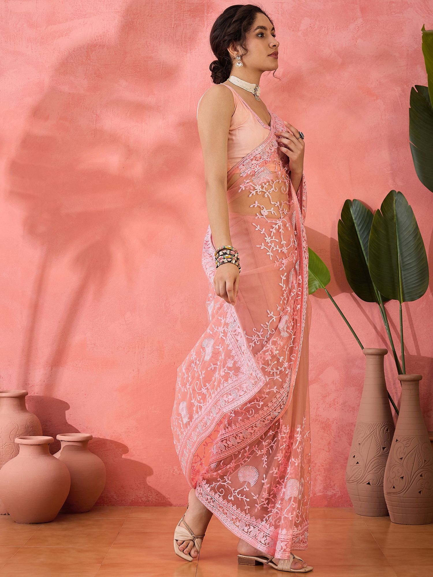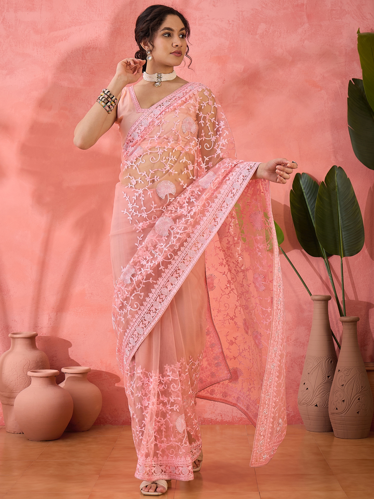 AASTHA FASHION Fashion Dream Womens Pink Net Saree | Soft & Elegant Traditional Wear