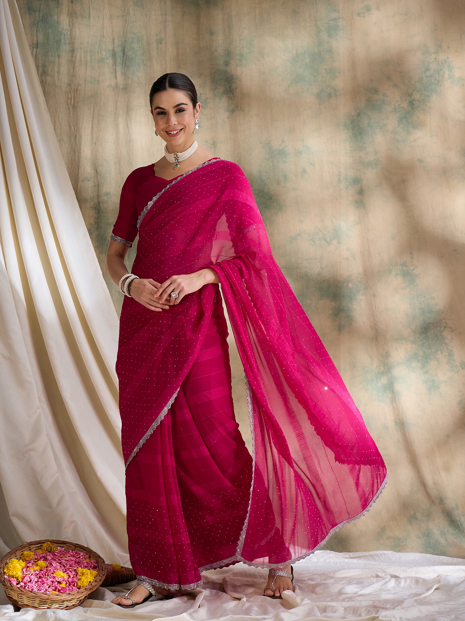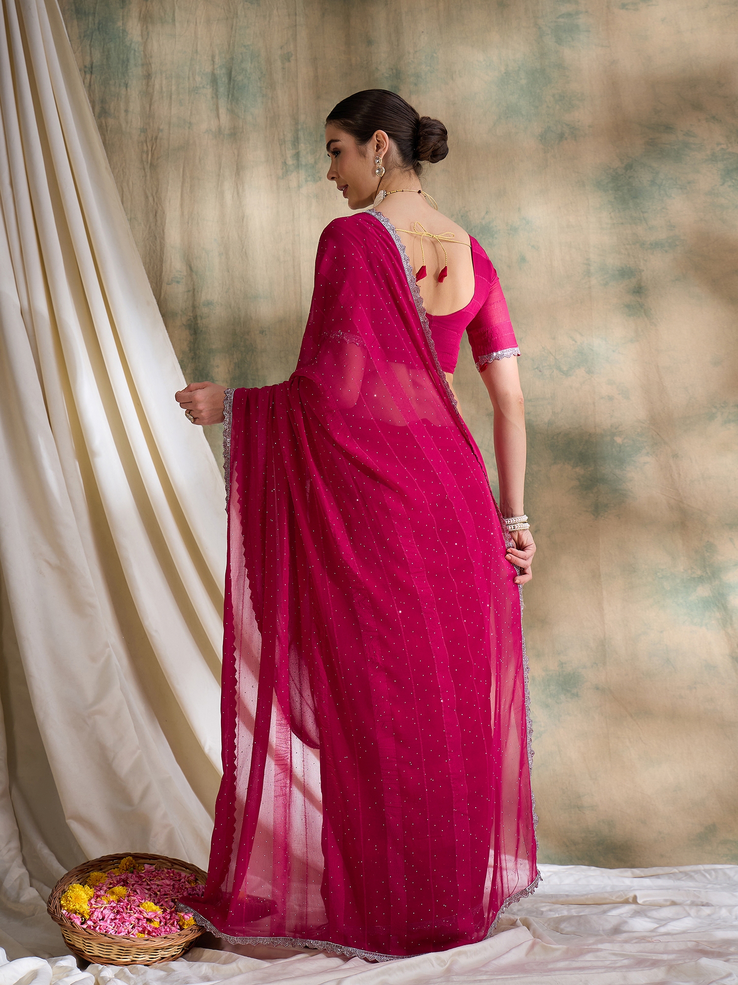 • Saree Fabric-Vichitra Silk ,Blouse Fabric-Silk Blend