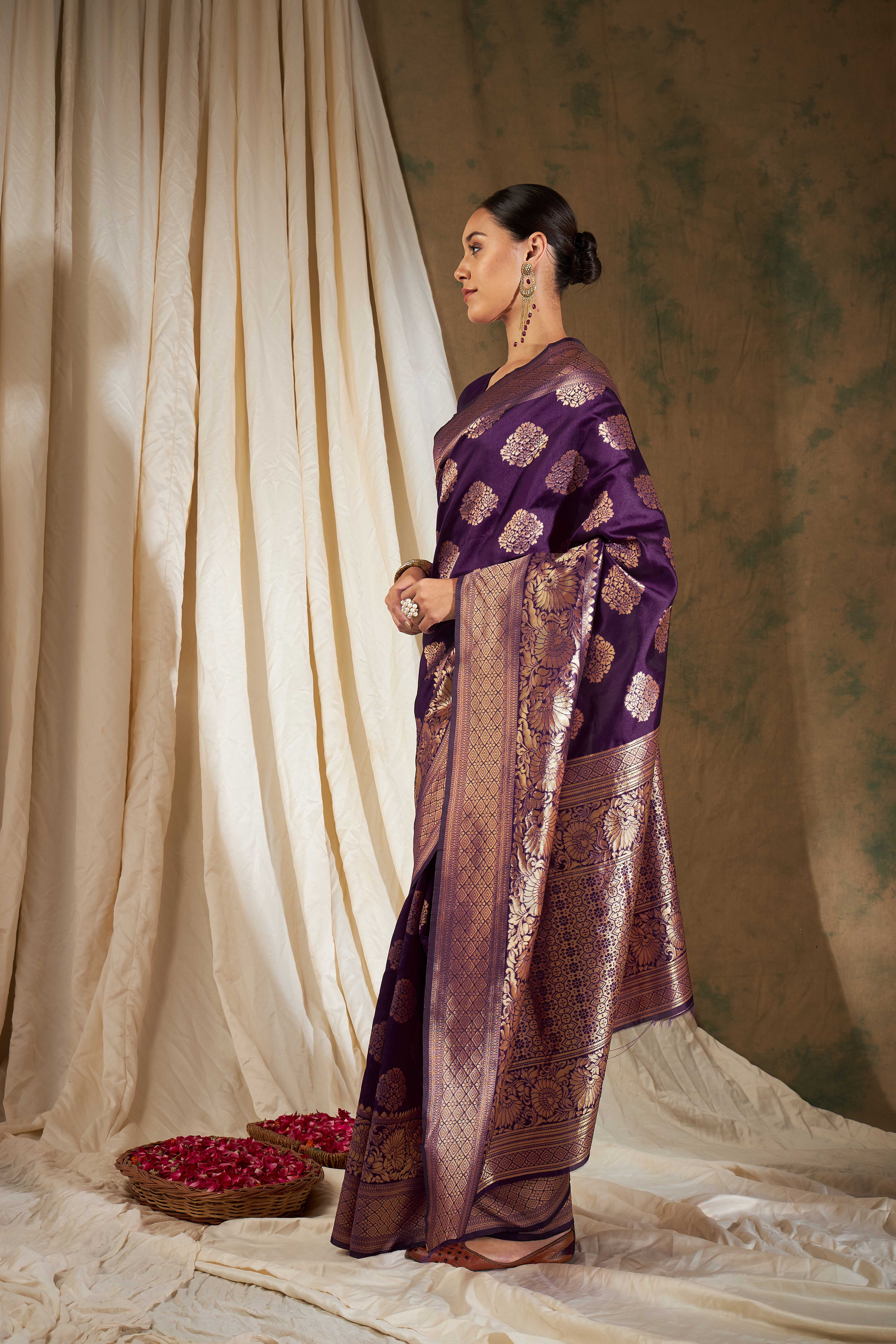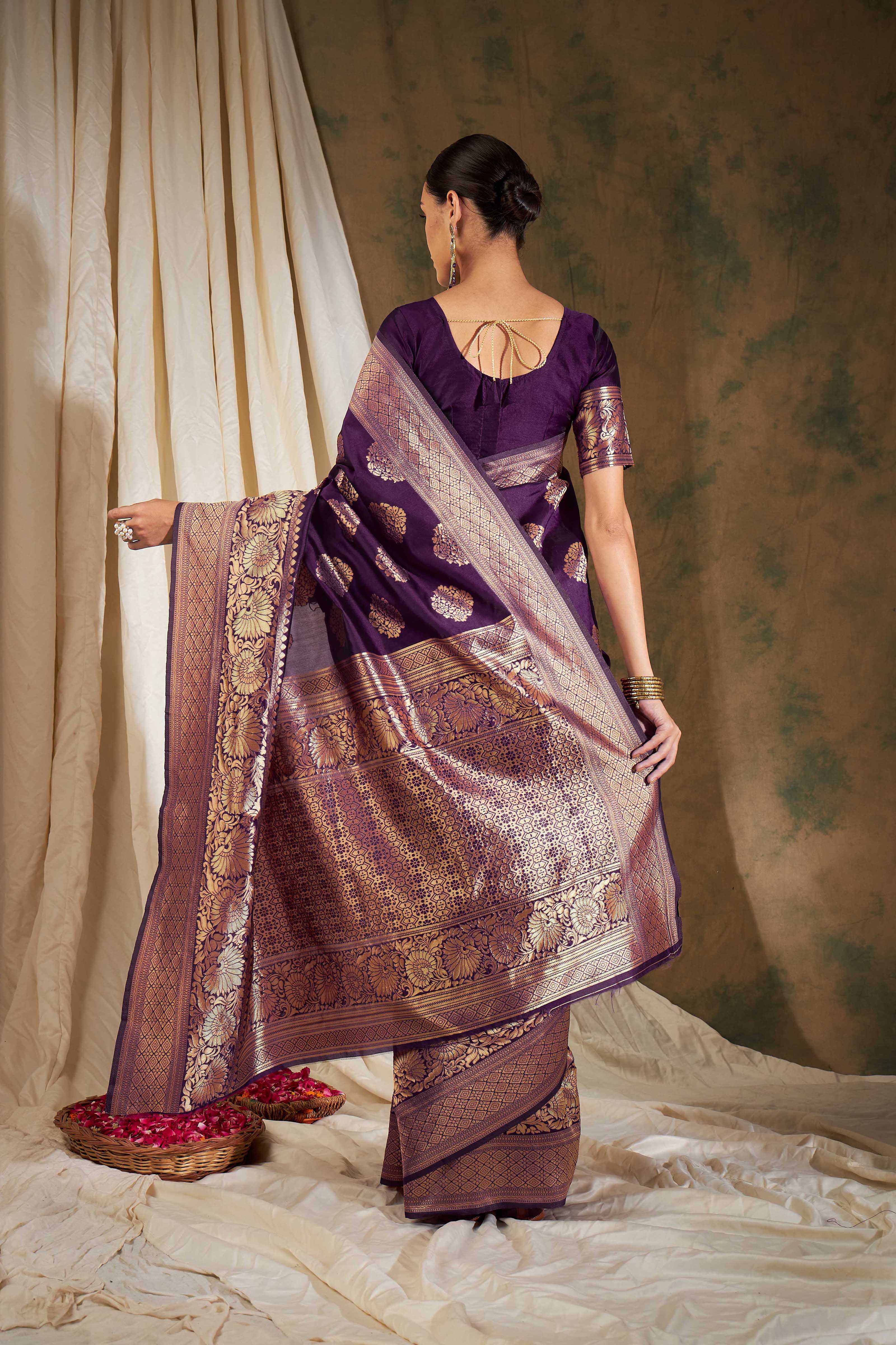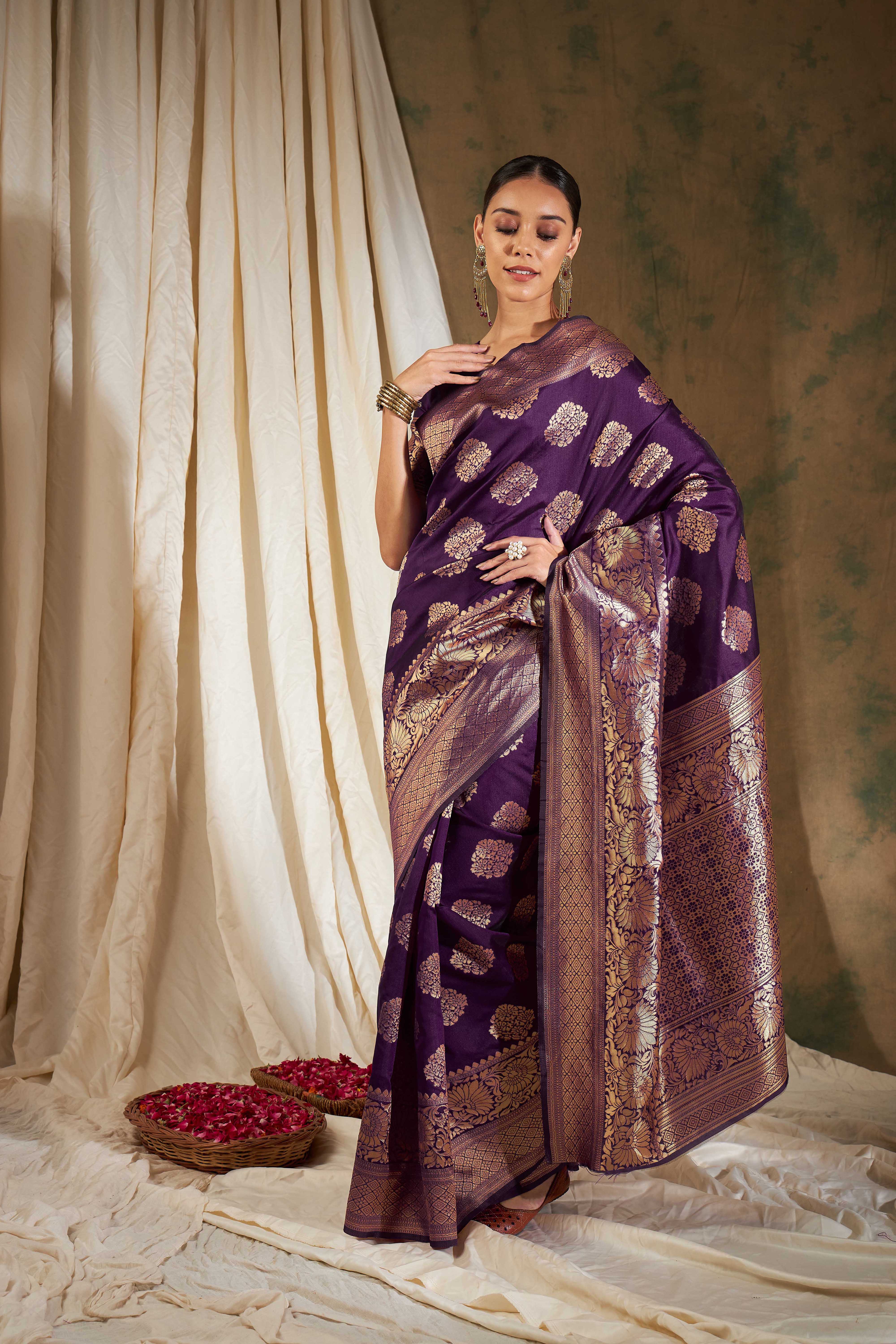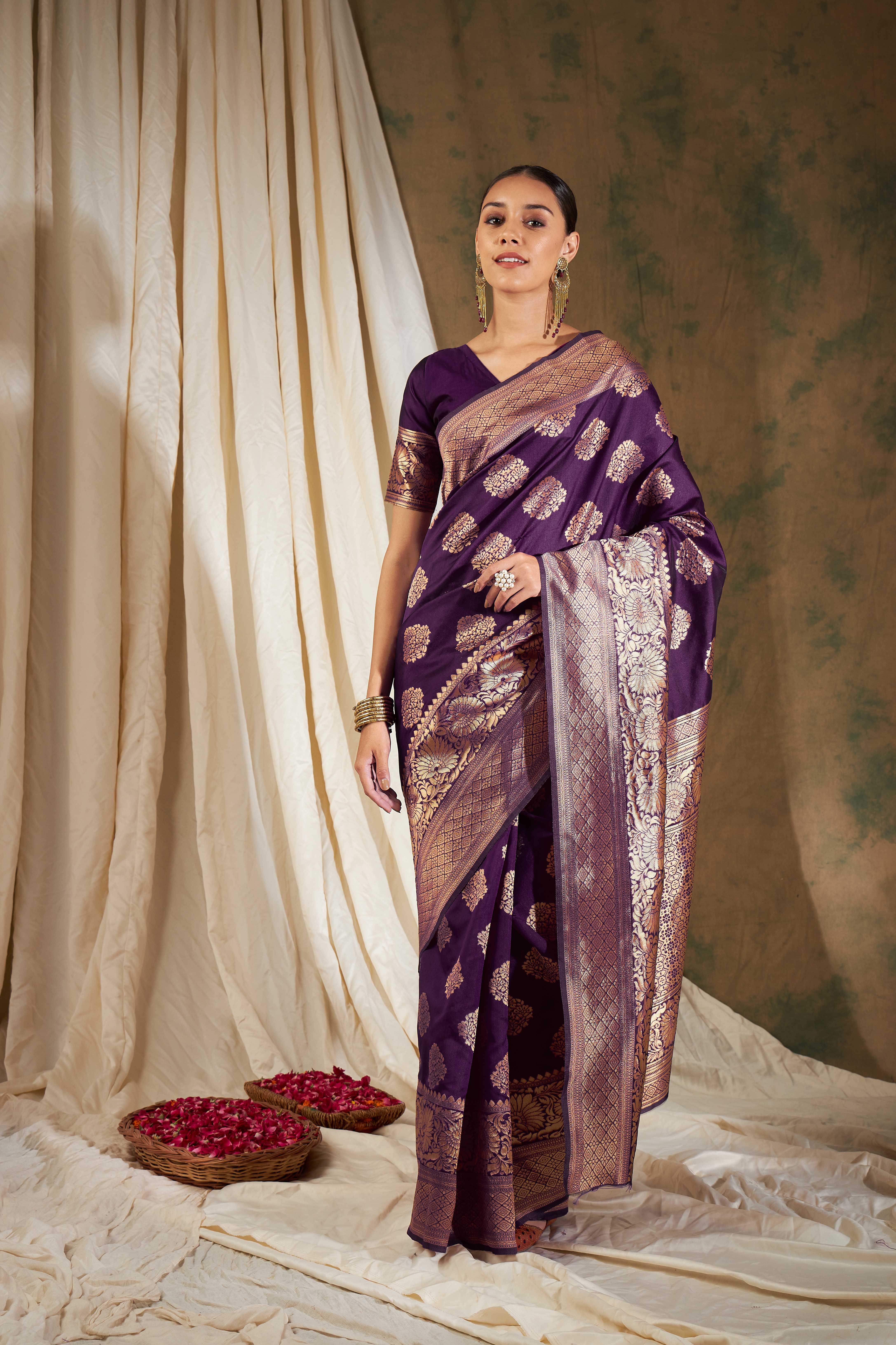 AASTHA FASHION Fashion Dream Womens Purple Banarasi Silk Saree | Soft & Elegant Traditional Wear