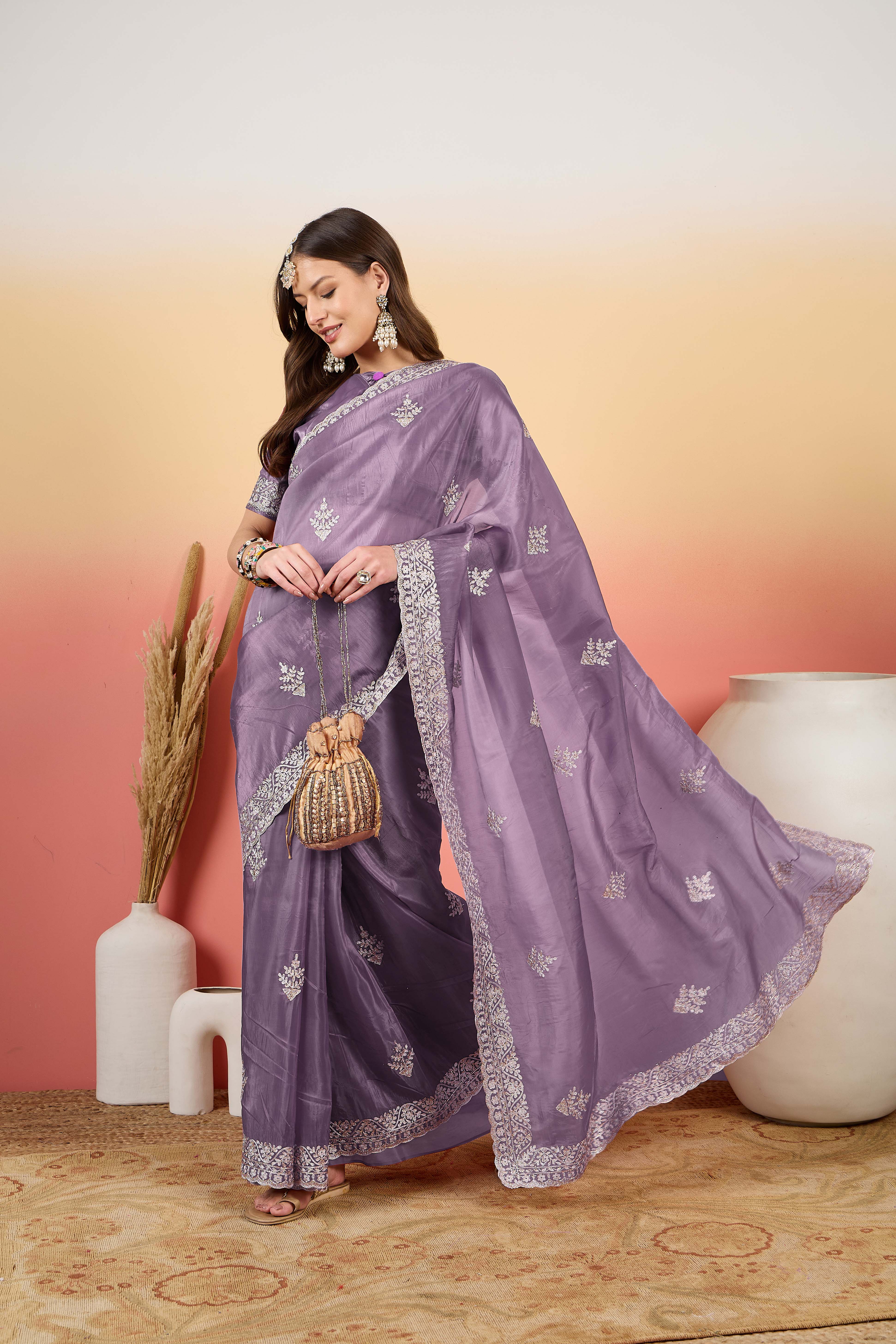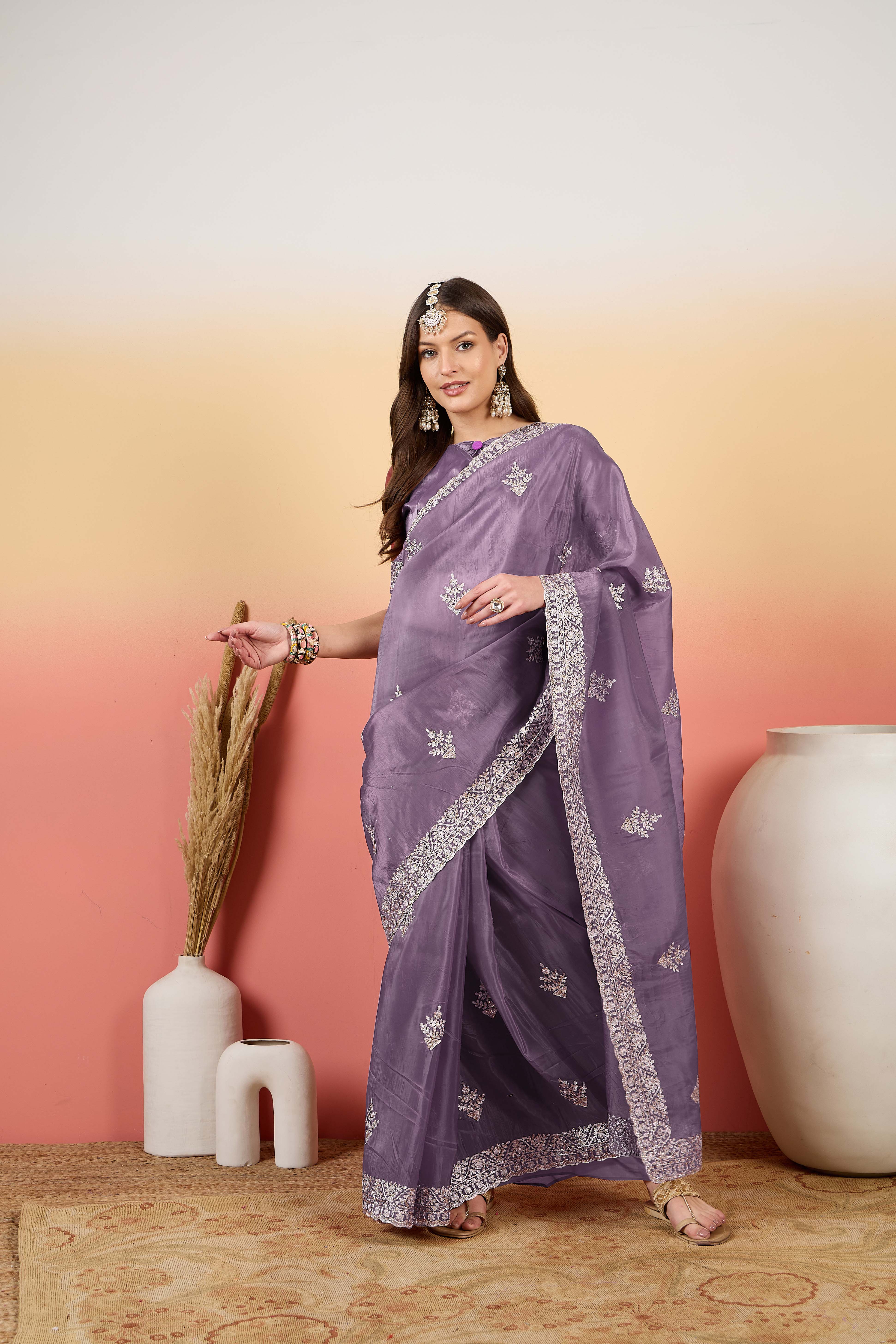 AASTHA FASHION Fashion Dream Womens Purple Gold Crush Saree | Soft & Elegant Traditional Wear