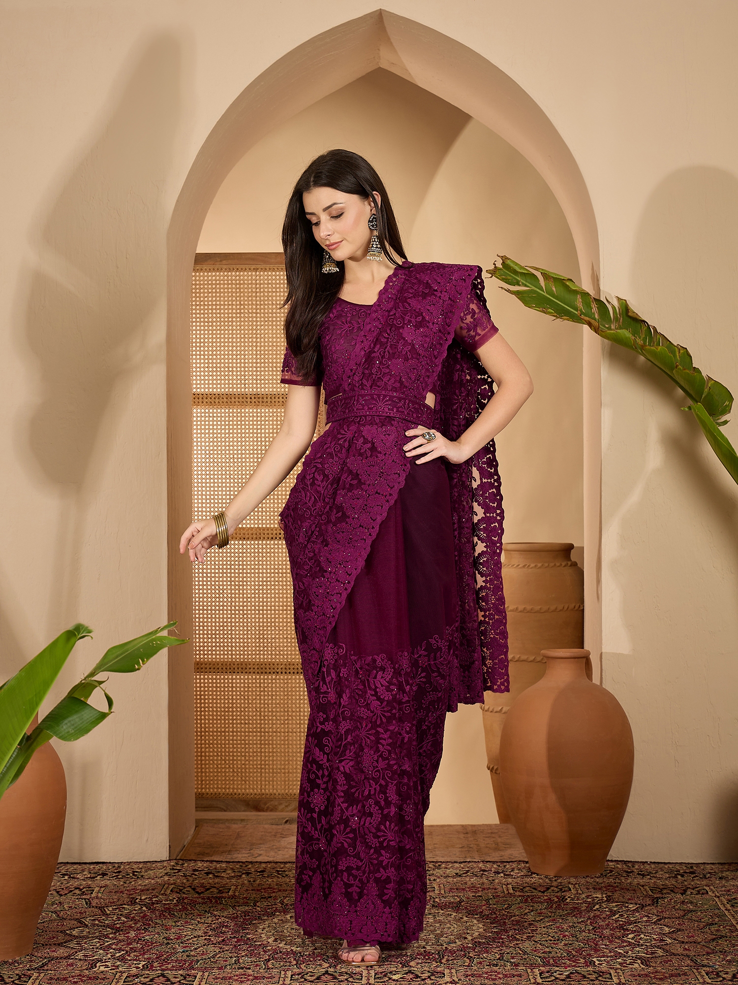 AASTHA FASHION Fashion Dream Womens Purple Heavy Net Saree | Soft & Elegant Traditional Wear