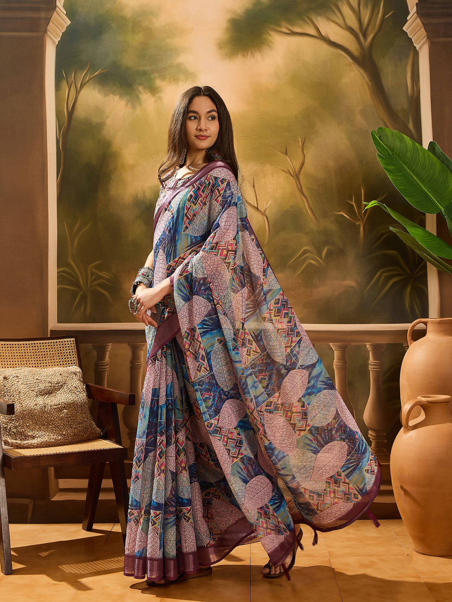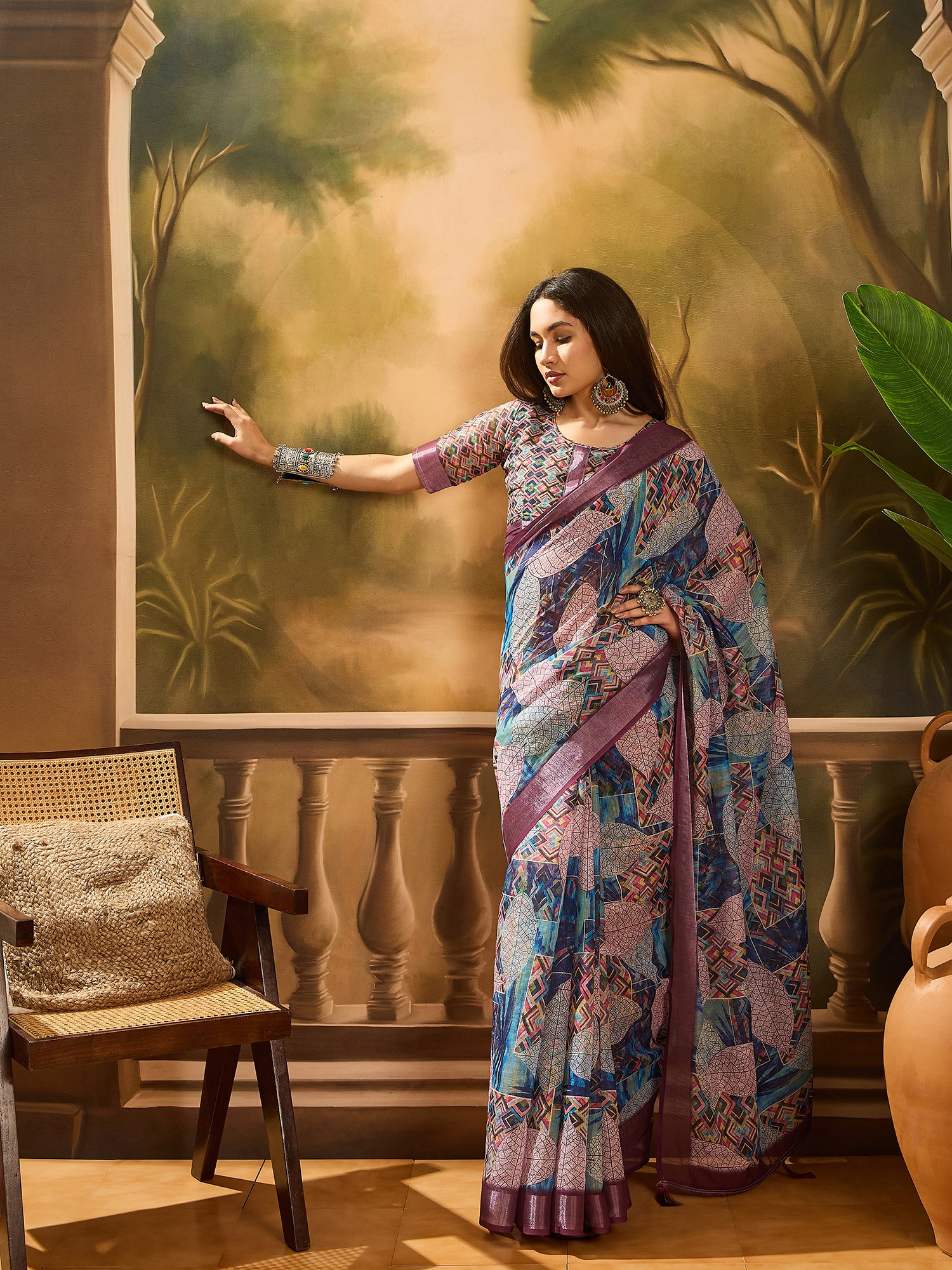 • Saree Work-Digital Print ,Blouse Work- Linen Cotton Blend