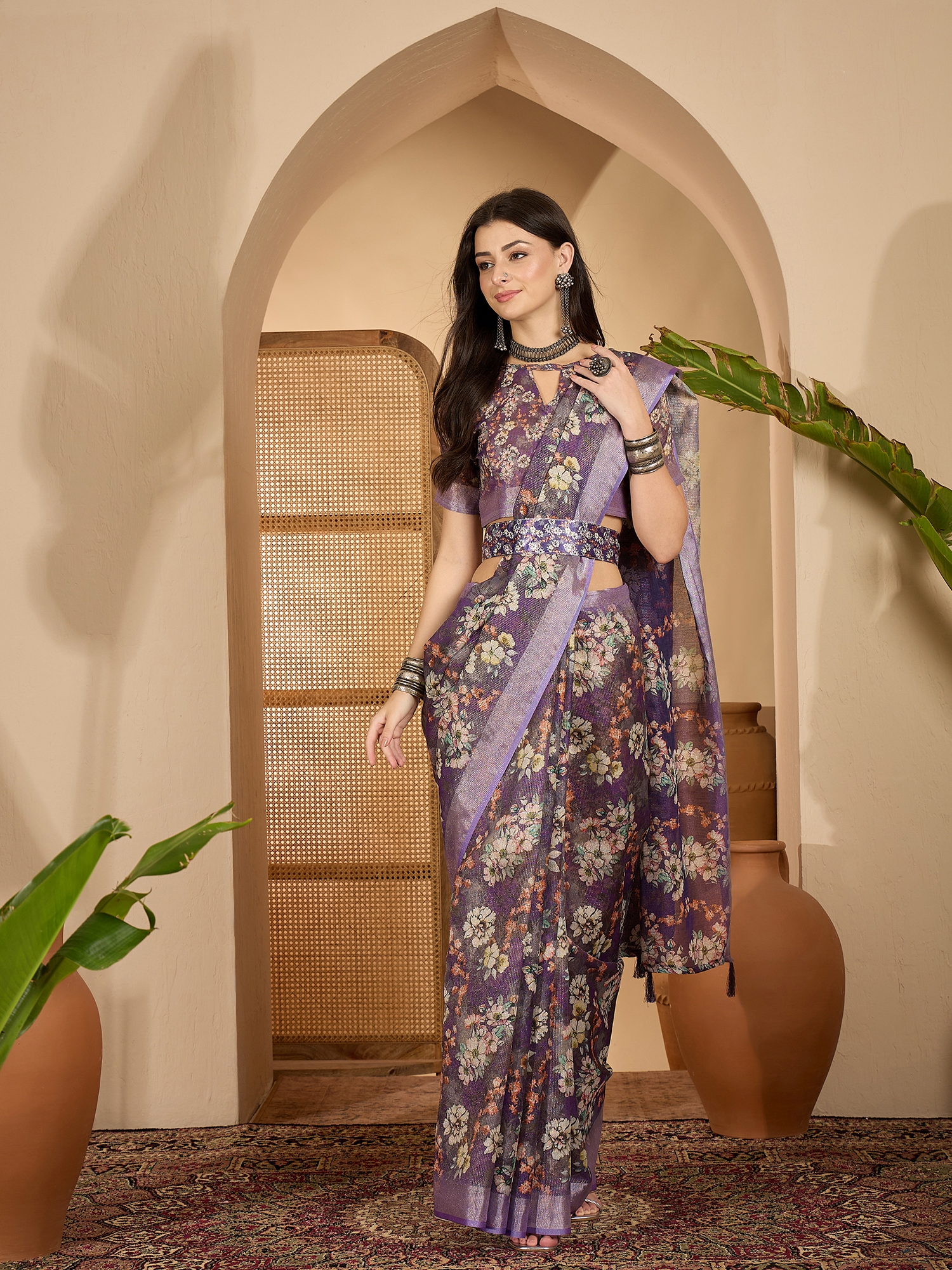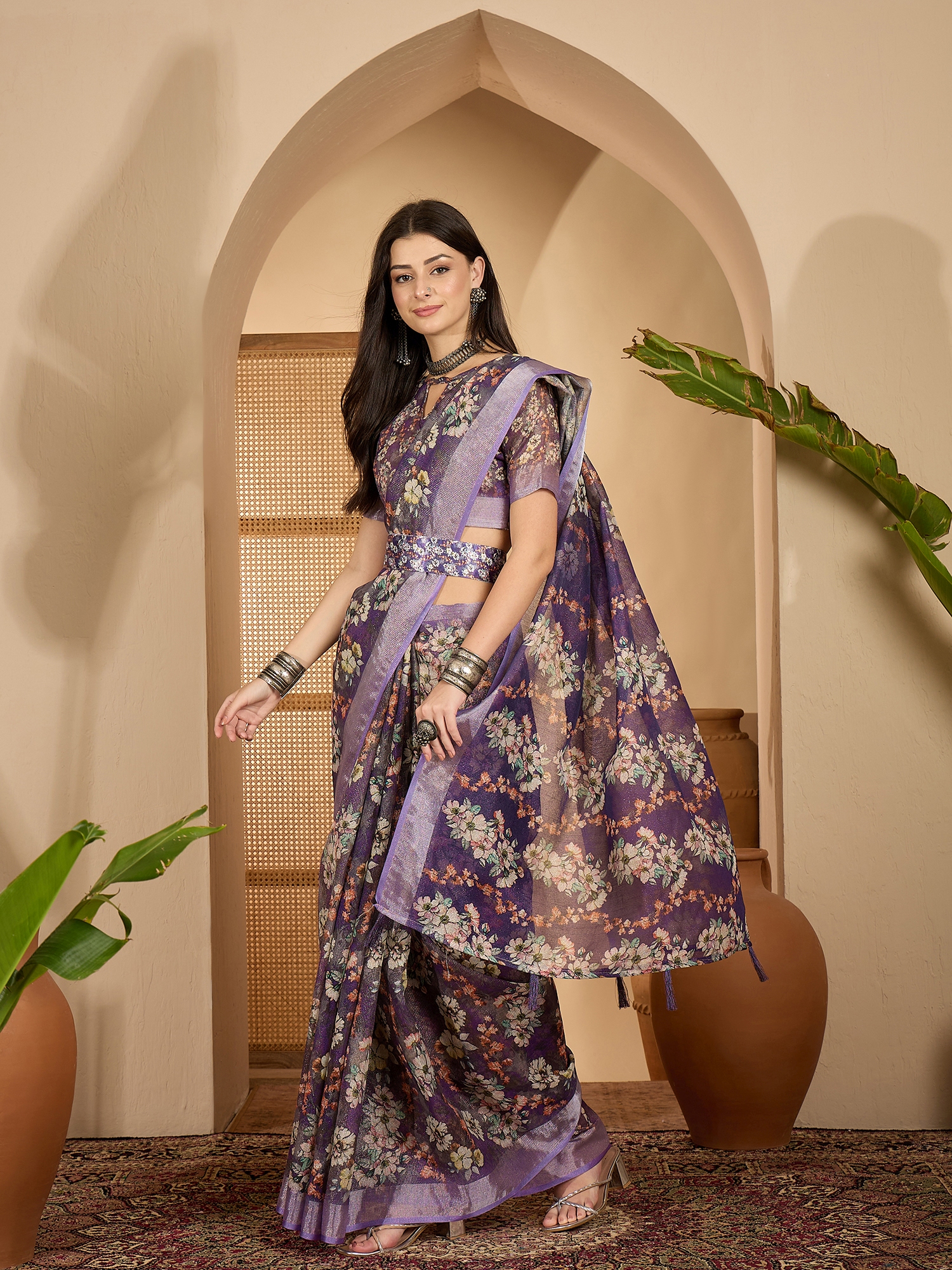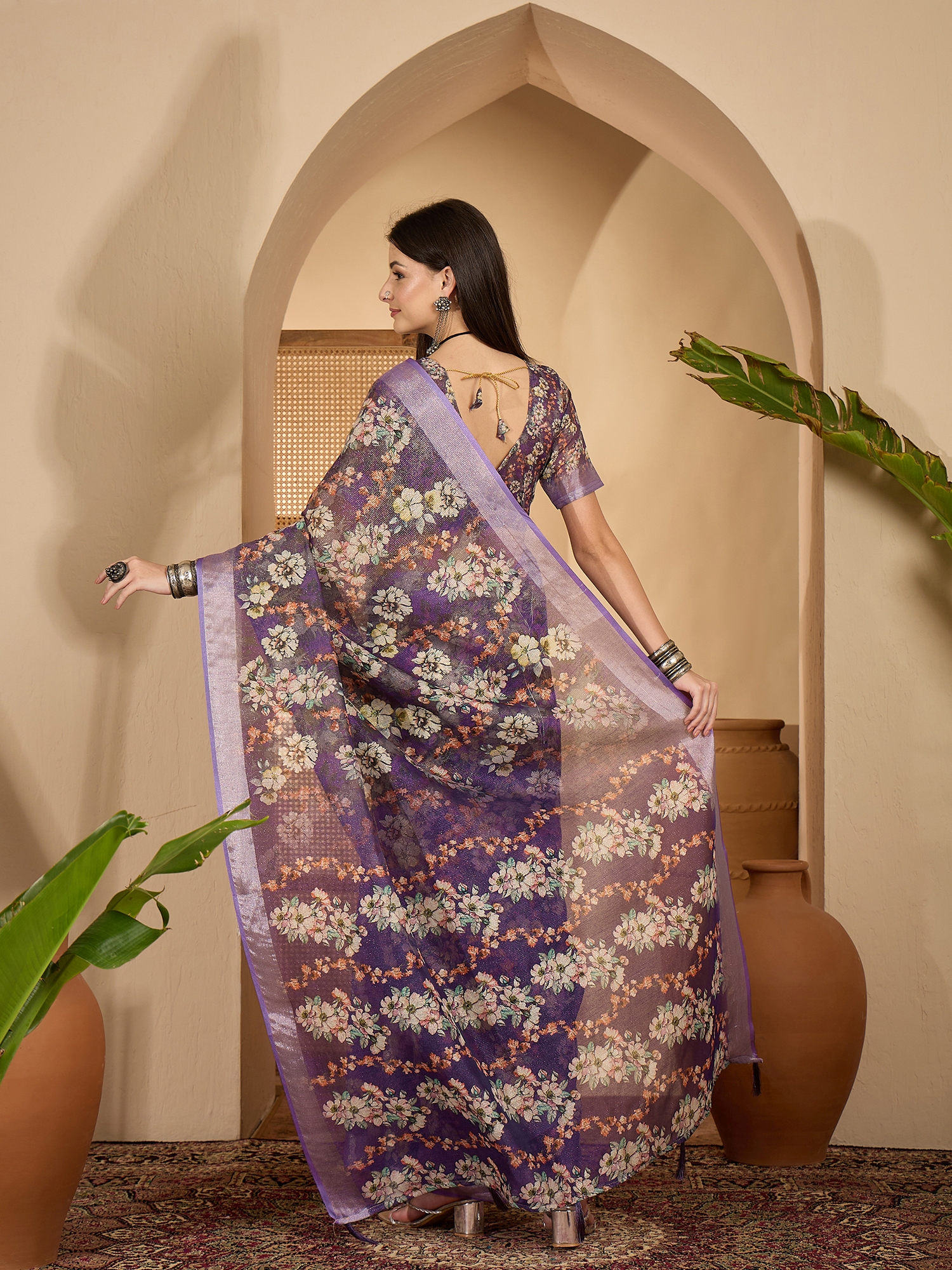 AASTHA FASHION Fashion Dream Womens Purple Linen Zari Gold Saree | Soft & Elegant Traditional Wear