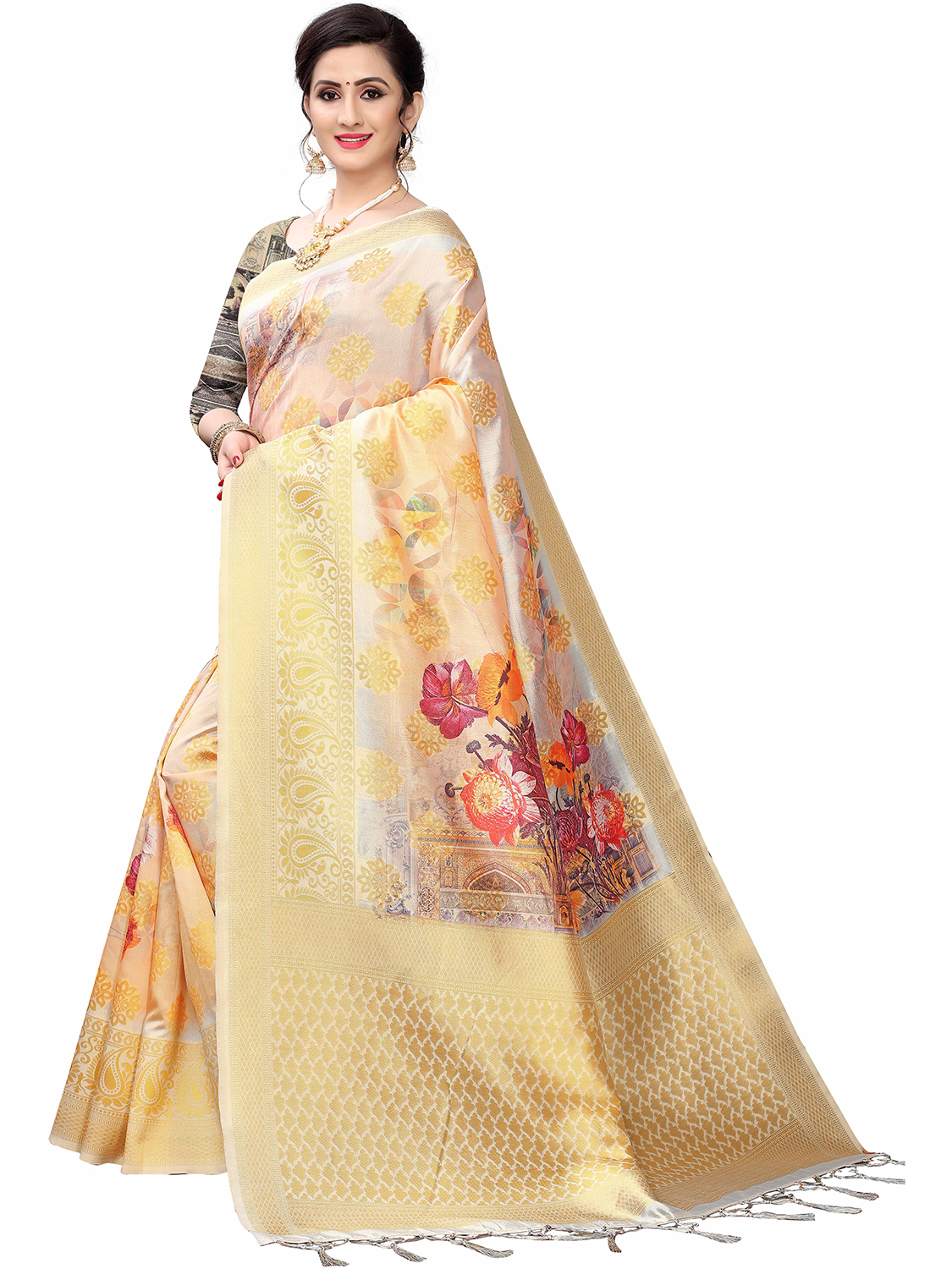 • Saree Fabric-Cotton Silk Blend ,Blouse Fabric-Cotton Silk Blend
