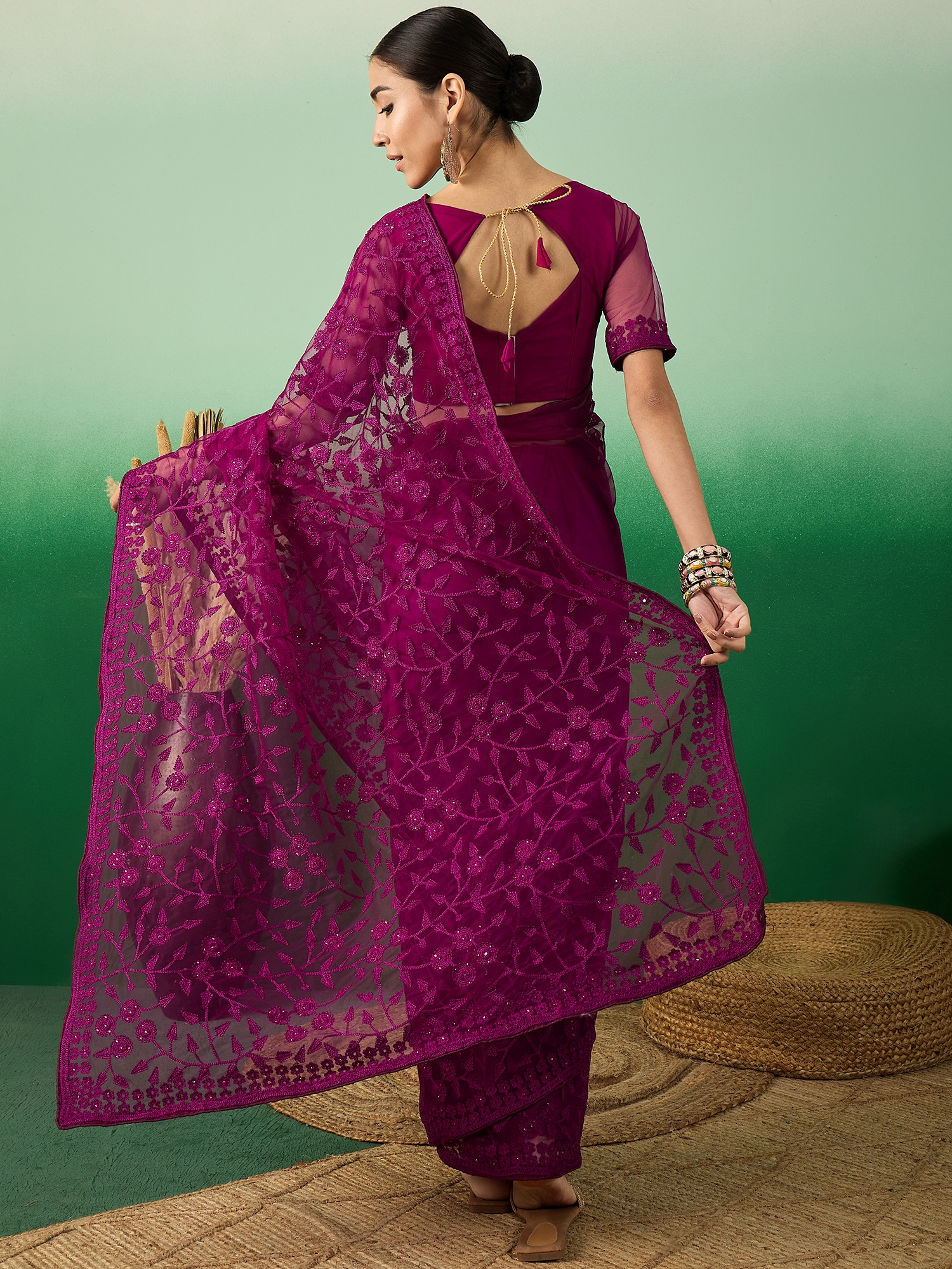 AASTHA FASHION Fashion Dream Womens Purple Net Saree | Soft & Elegant Traditional Wear