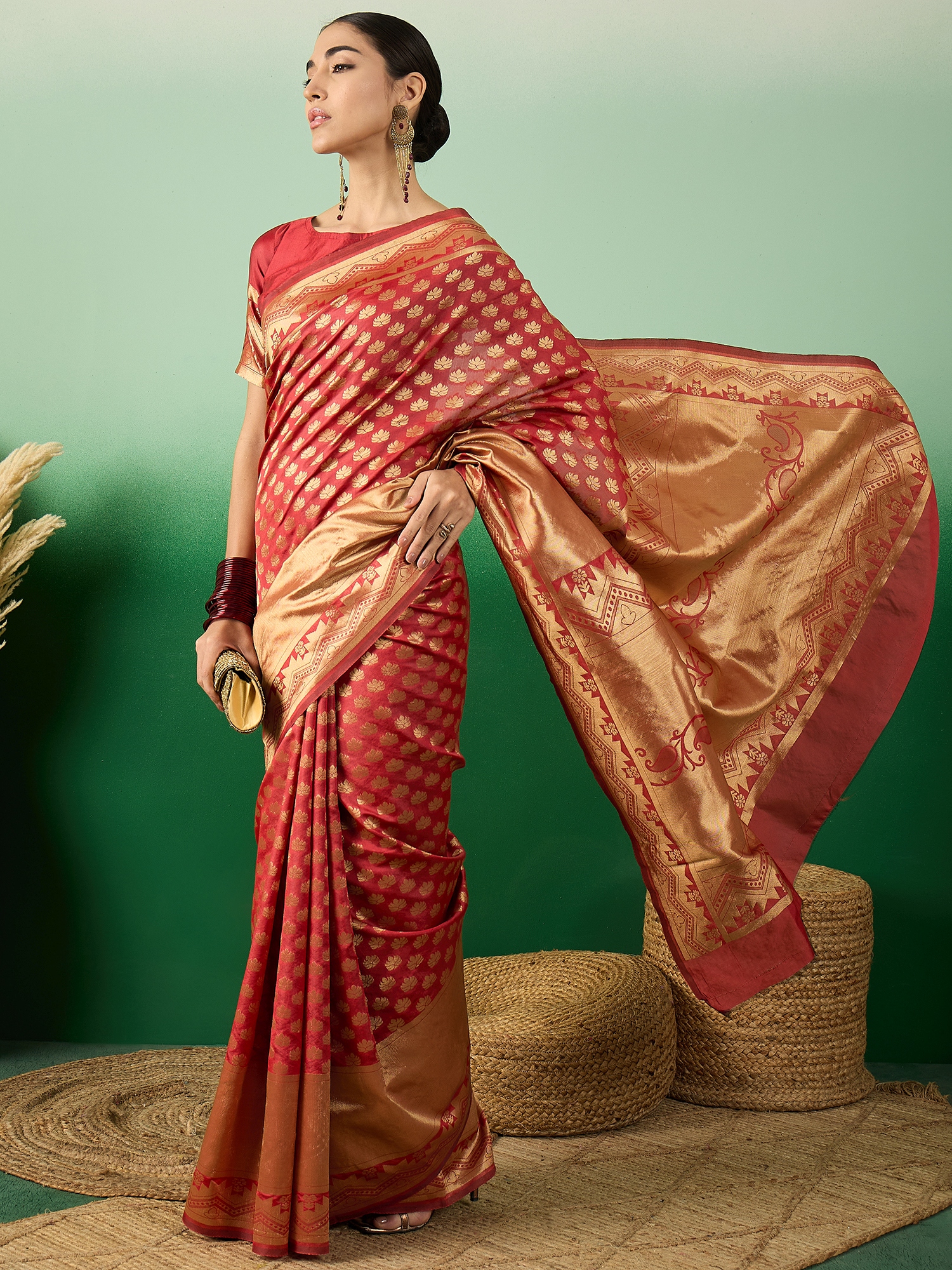 AASTHA FASHION Fashion Dream Womens RED Banarasi Silk Saree | Soft & Elegant Traditional Wear