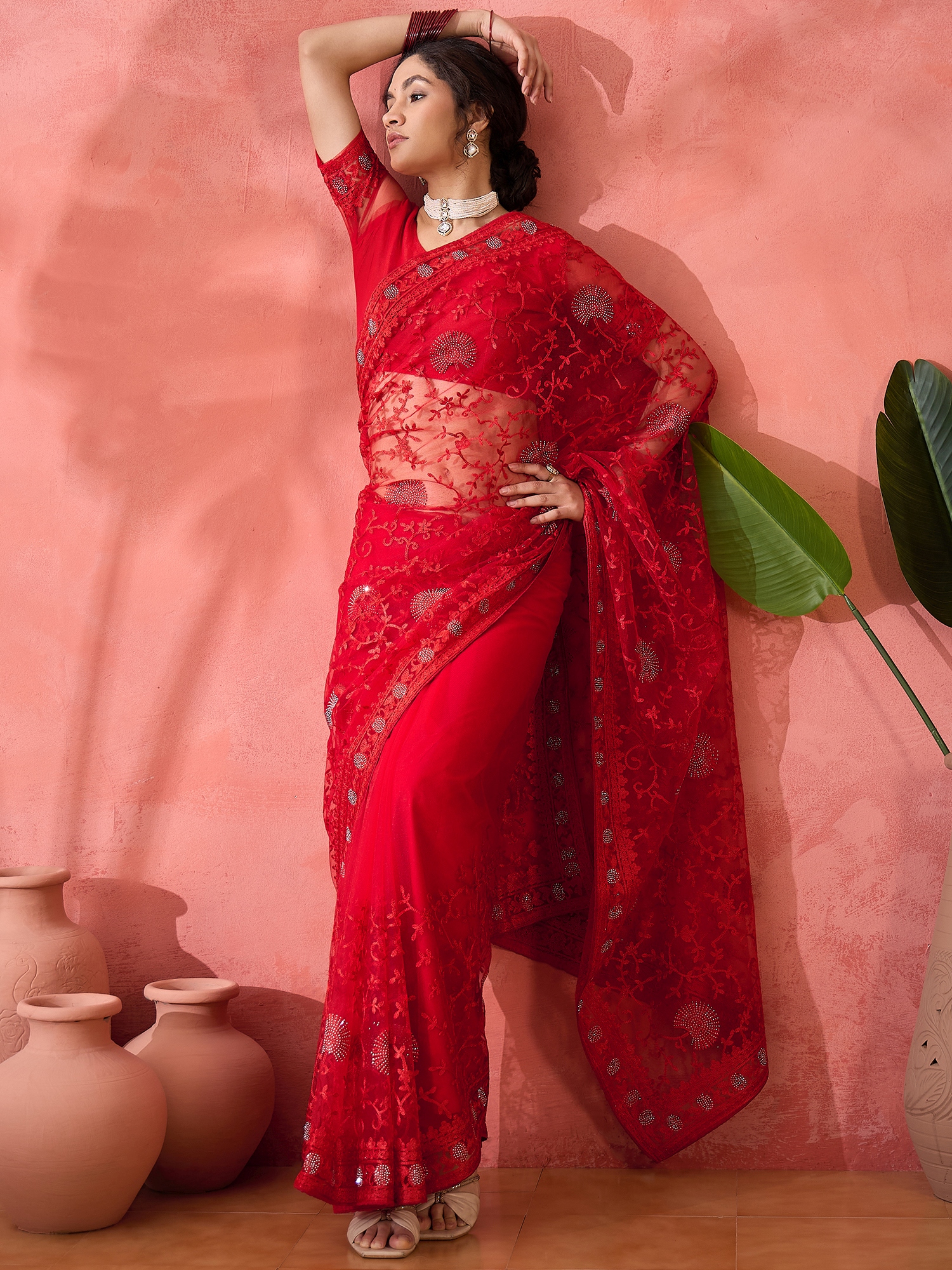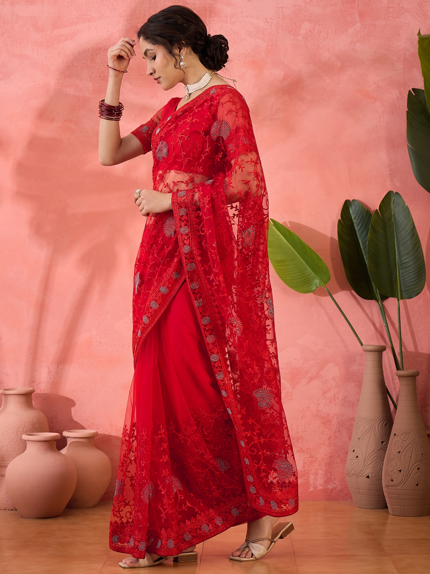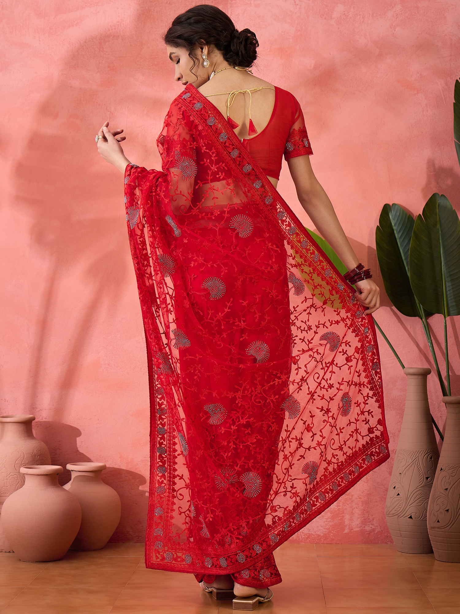 AASTHA FASHION Fashion Dream Womens Red Net Saree | Soft & Elegant Traditional Wear