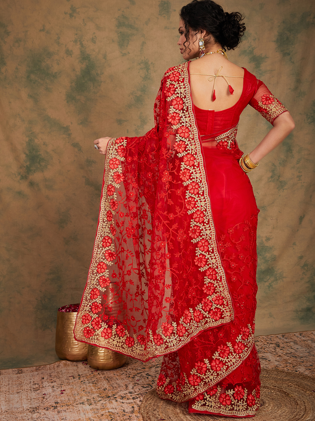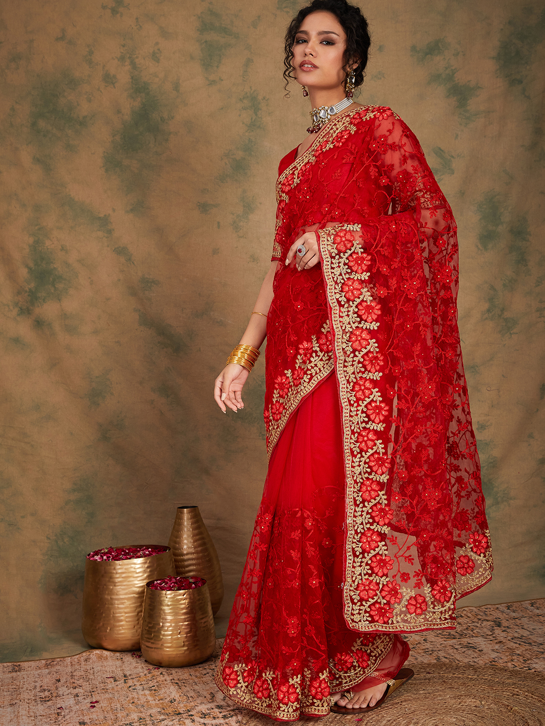 AASTHA FASHION Fashion Dream Womens Red Net Saree | Soft & Elegant Traditional Wear