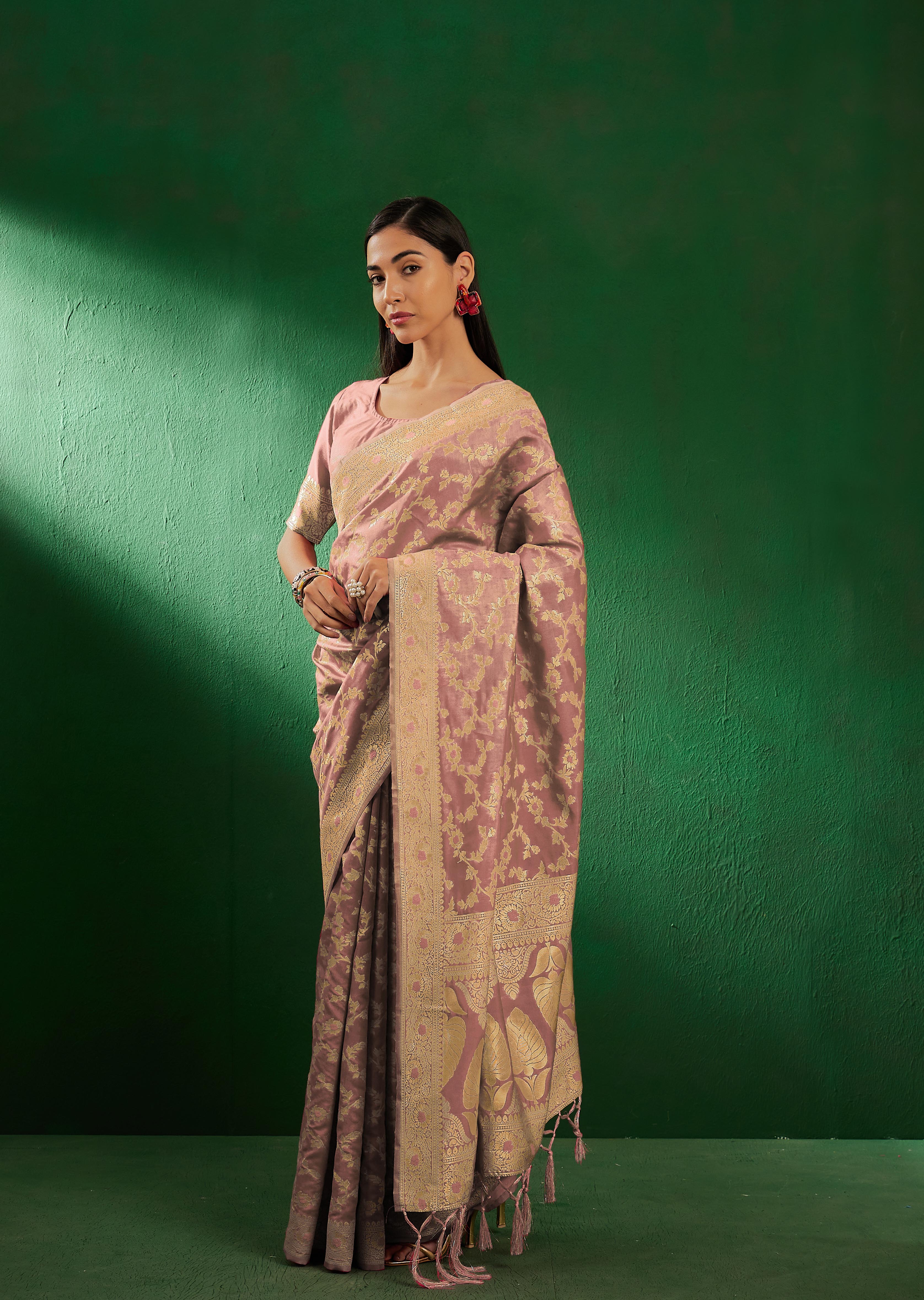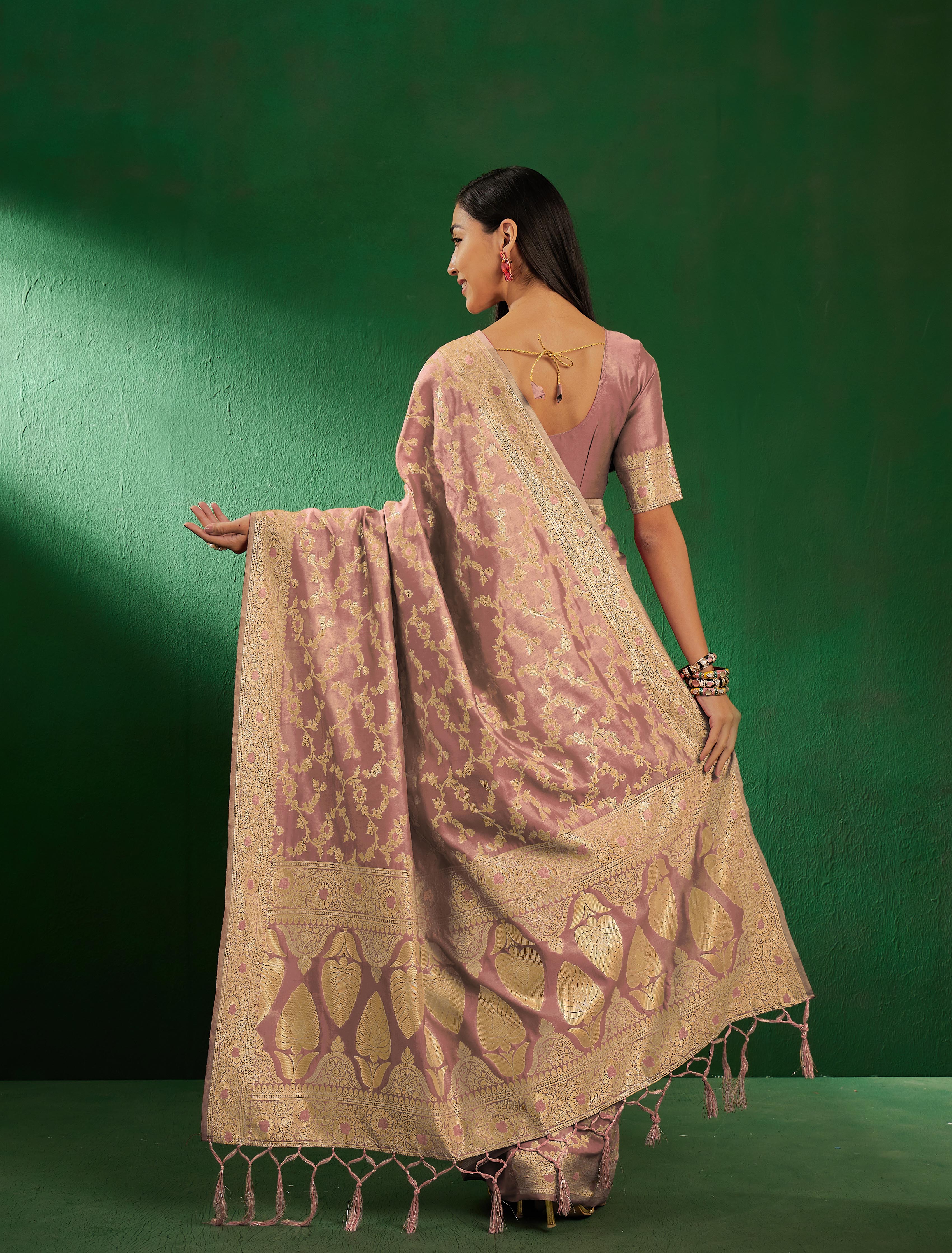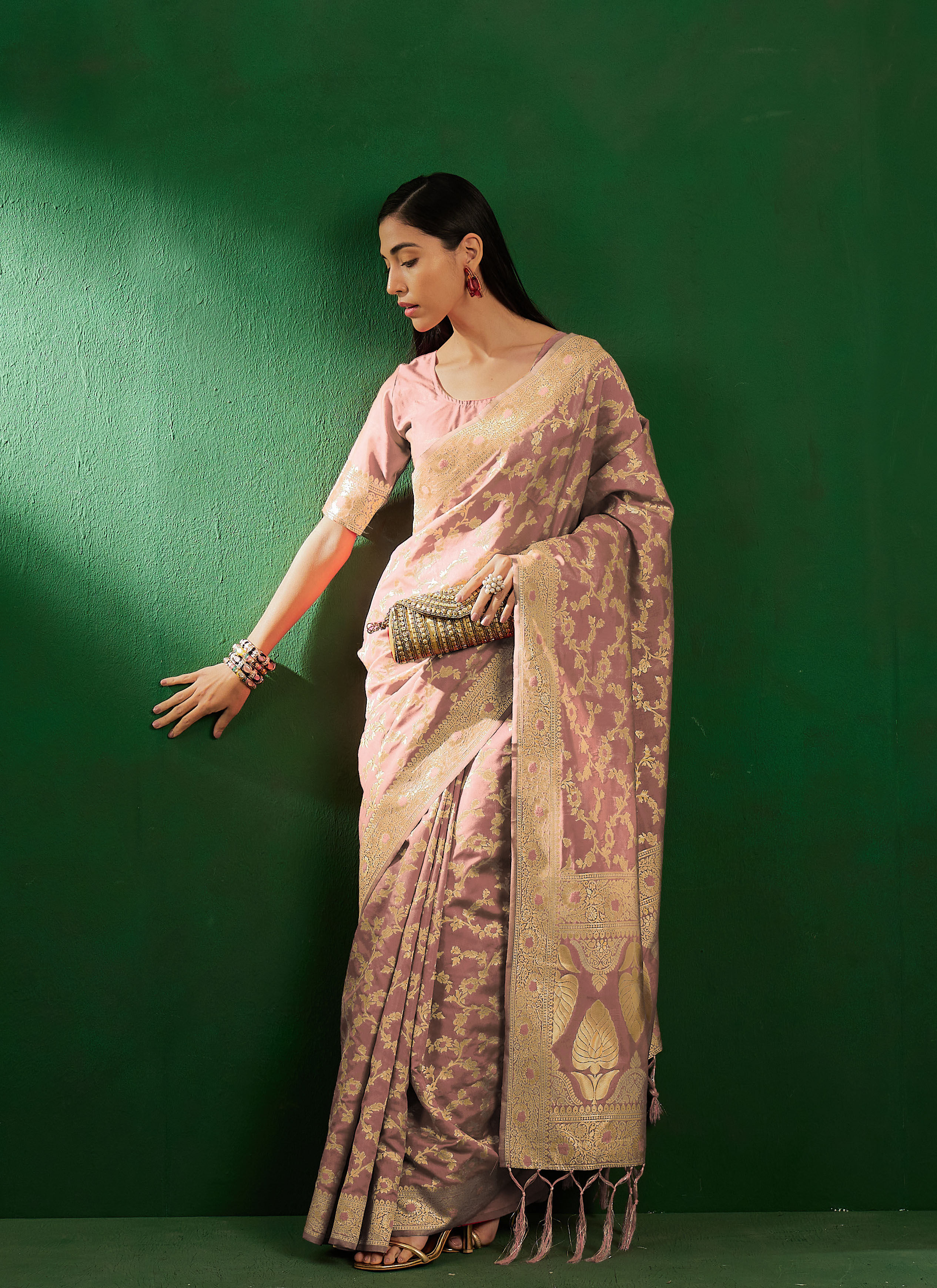 AASTHA FASHION Fashion Dream Womens Rose Gold Banarasi Silk Saree | Soft & Elegant Traditional Wear