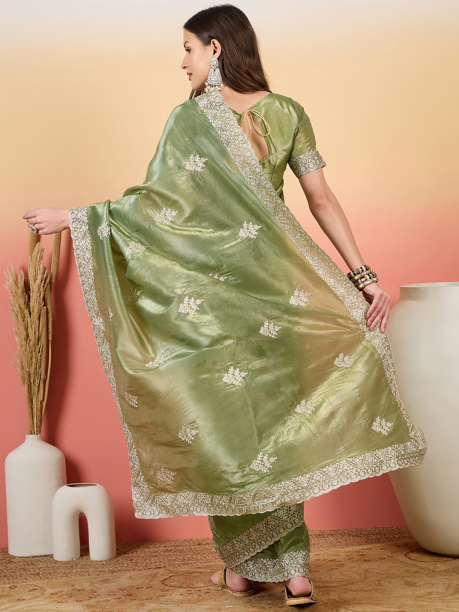 AASTHA FASHION Fashion Dream Womens Sea Green Gold Crush Saree | Soft & Elegant Traditional Wear