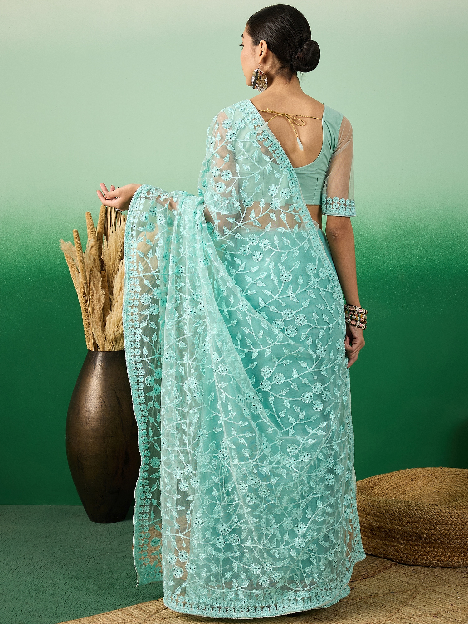 AASTHA FASHION Fashion Dream Womens Sea Green Net Saree | Soft & Elegant Traditional Wear