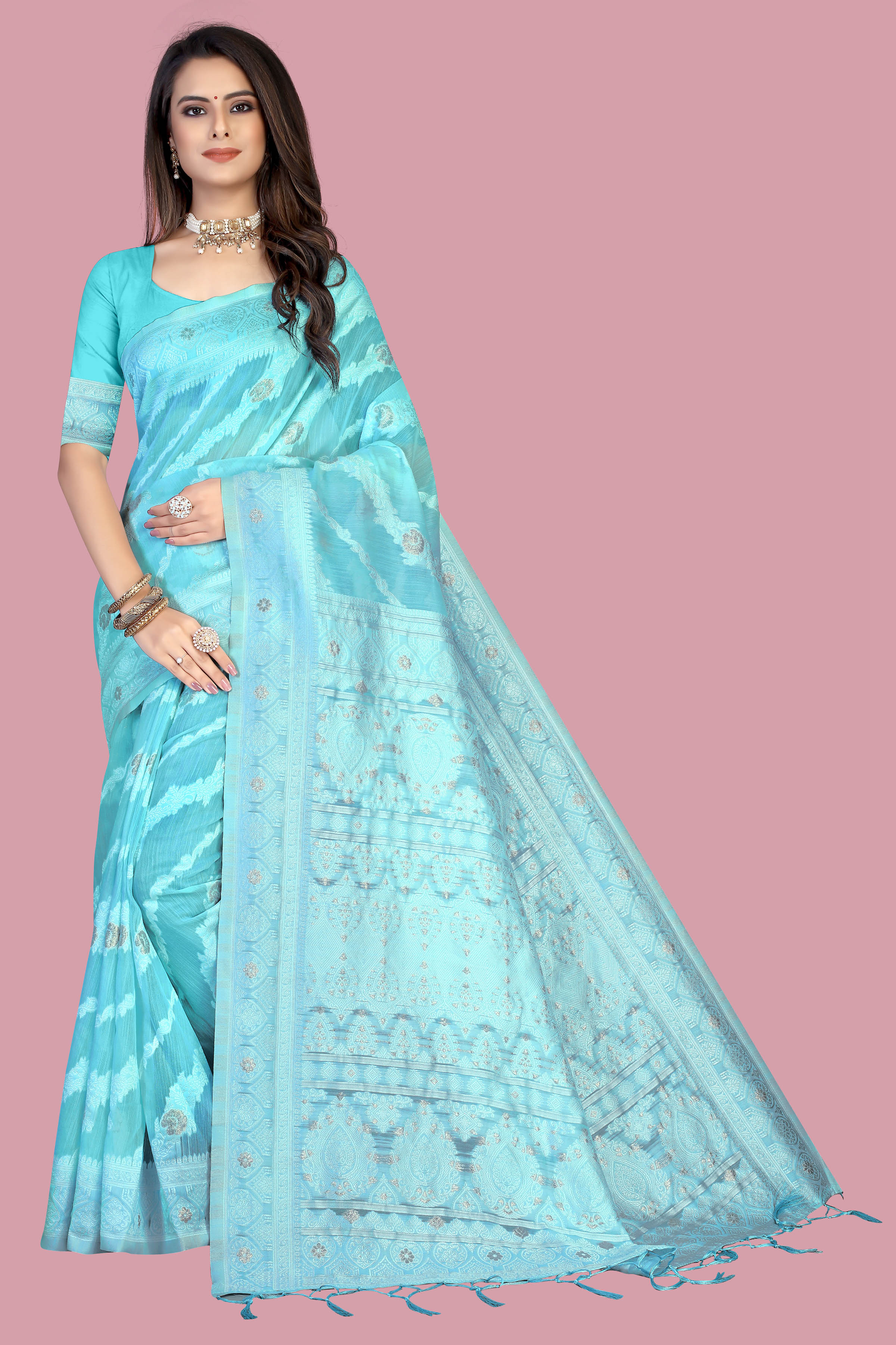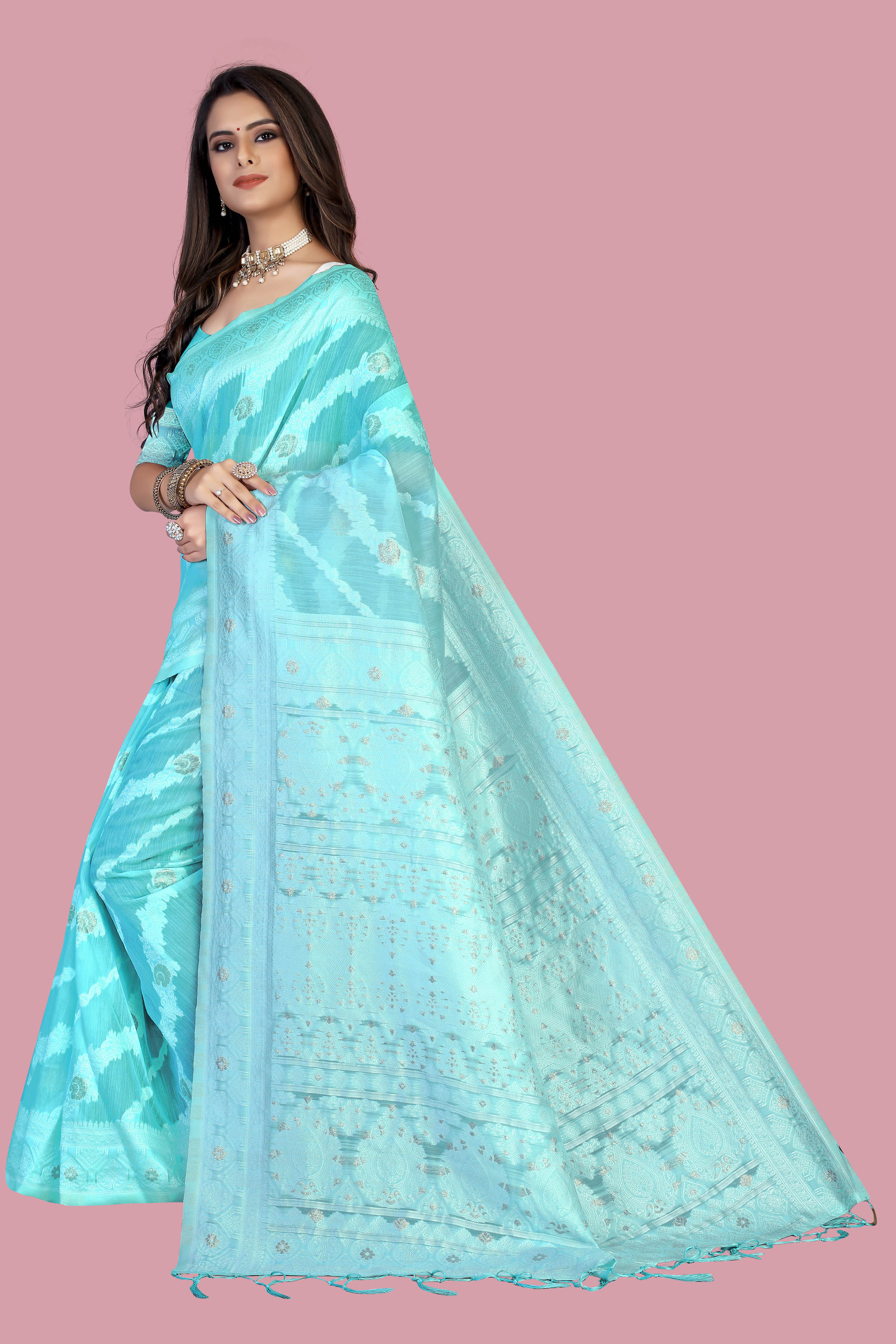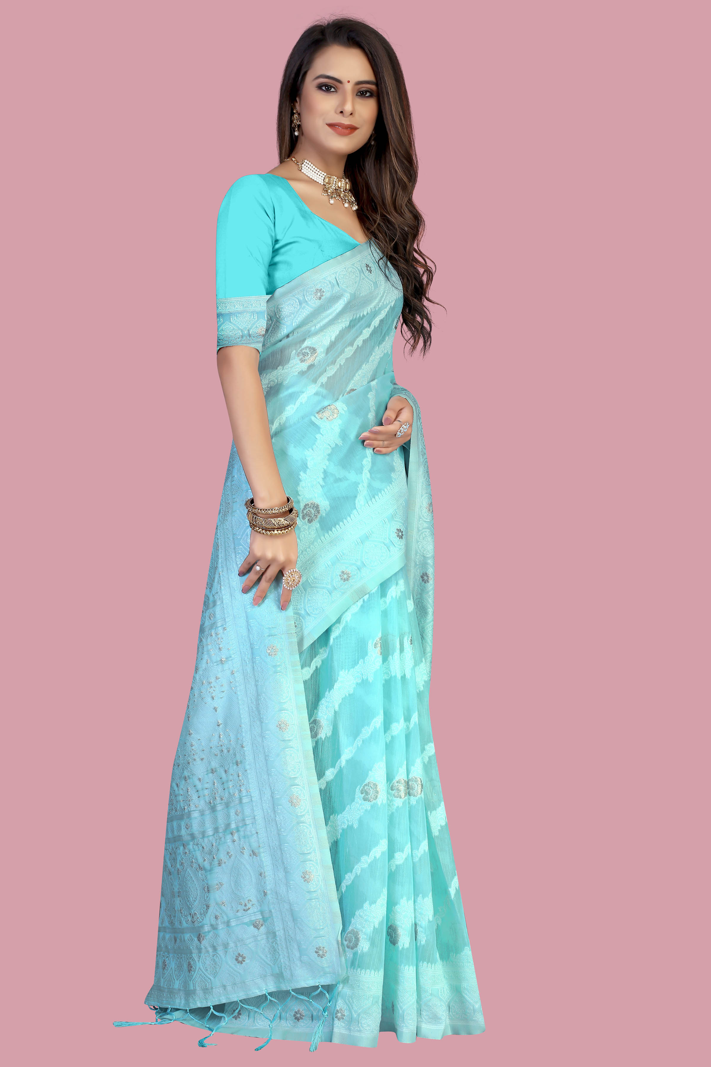 AASTHA FASHION Fashion Dream Womens Sky Blue Cotton Saree | Soft & Elegant Traditional Wear