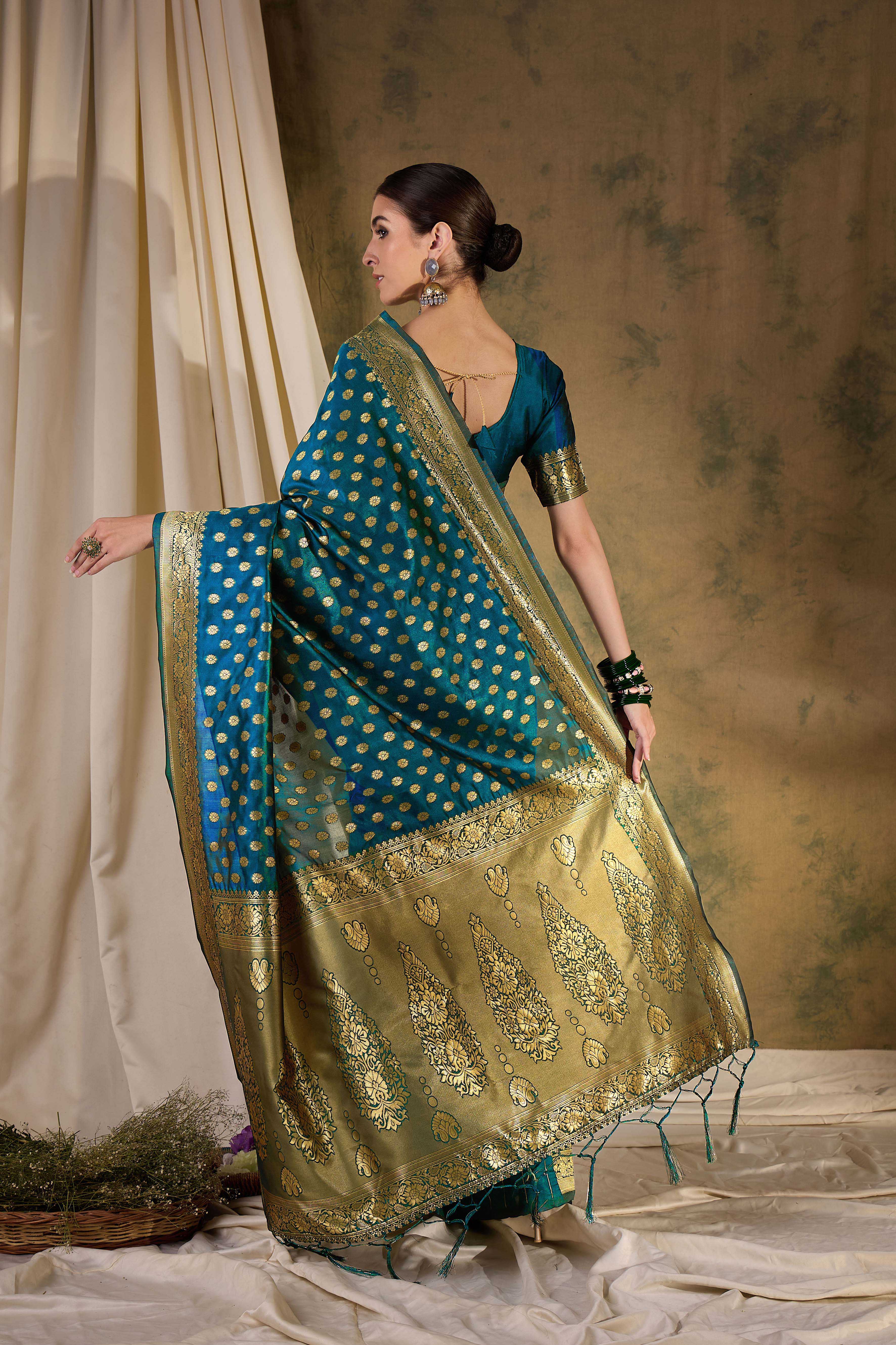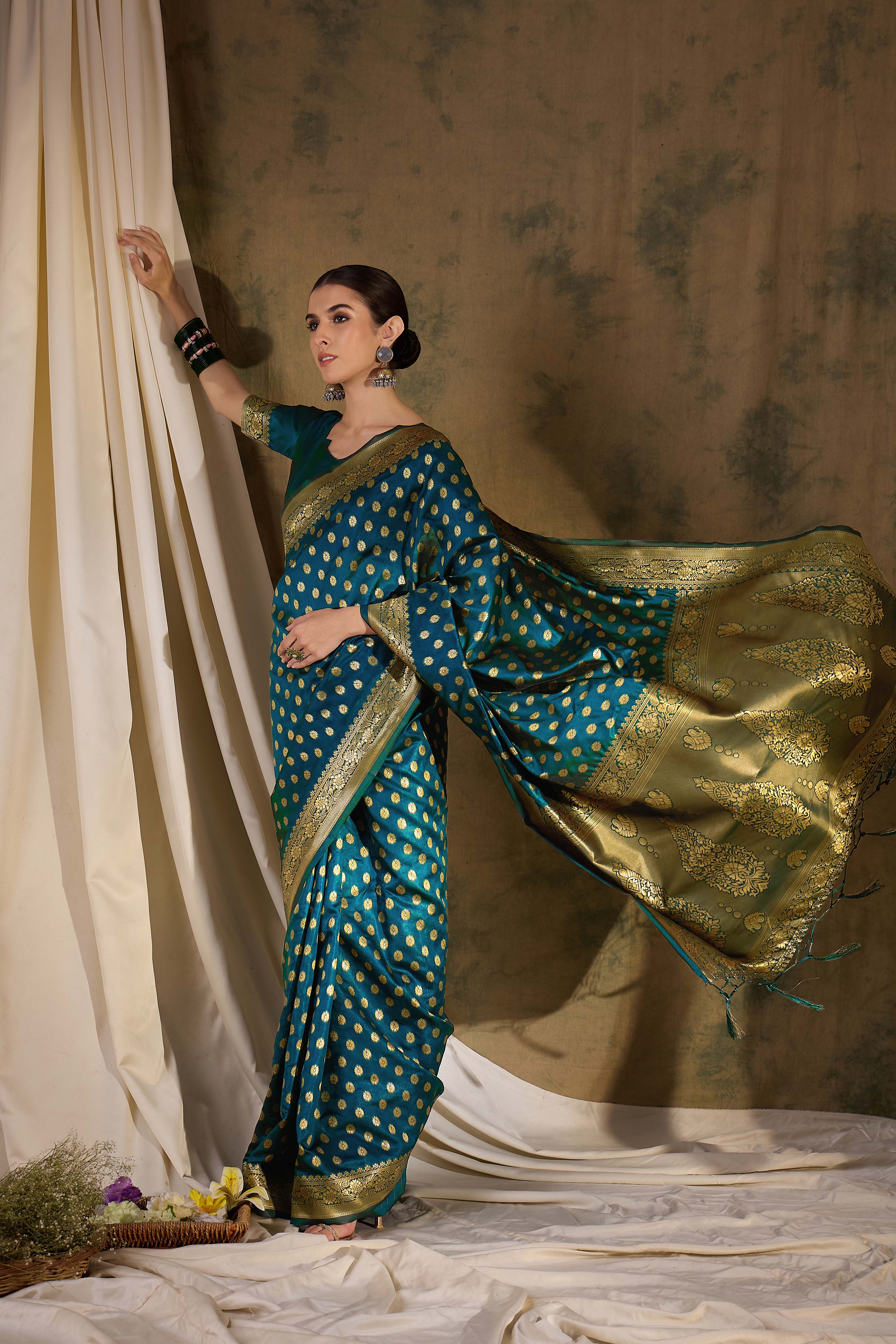 AASTHA FASHION Fashion Dream Womens Teal Blue Banarasi Silk Saree | Soft & Elegant Traditional Wear