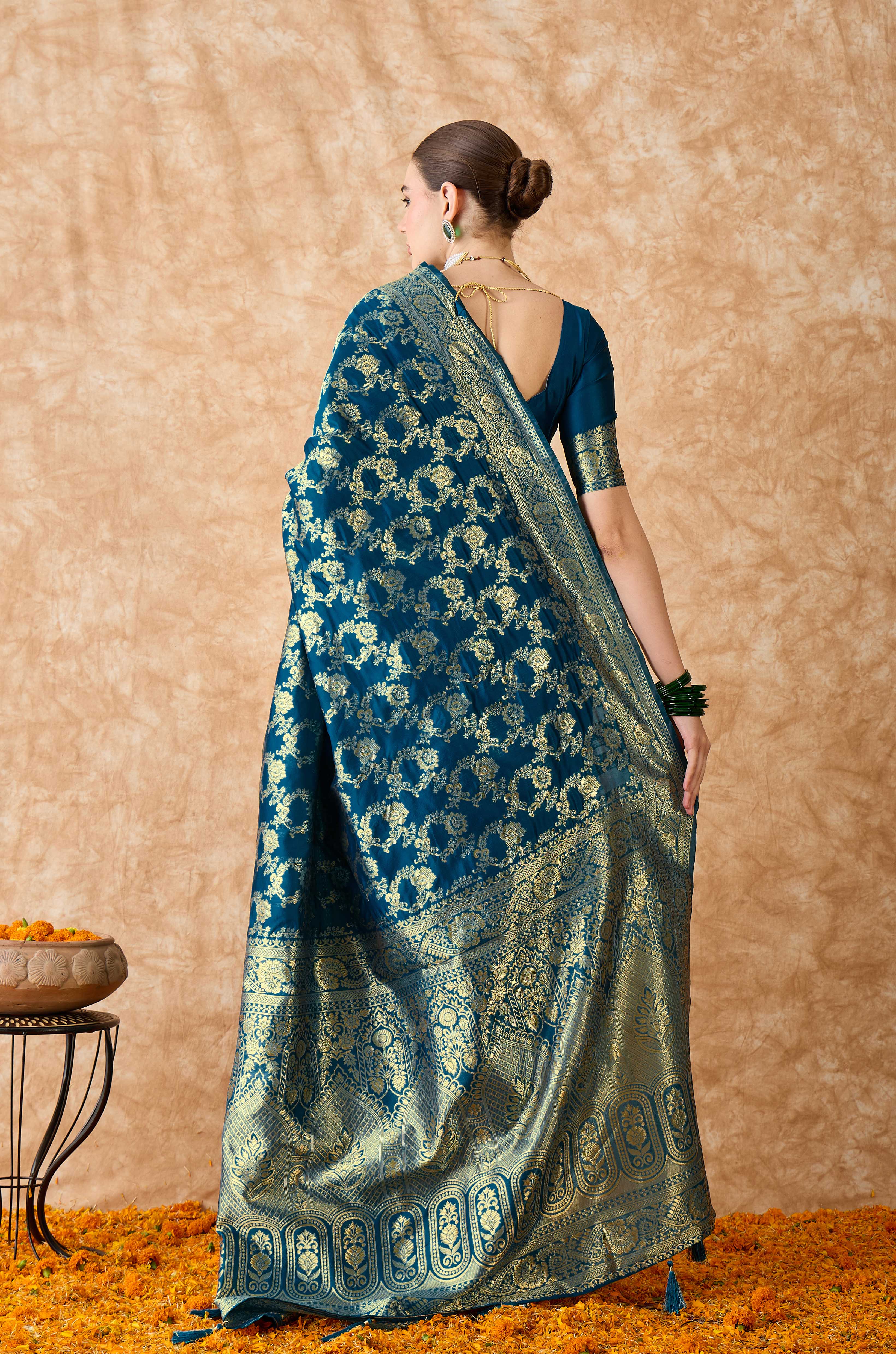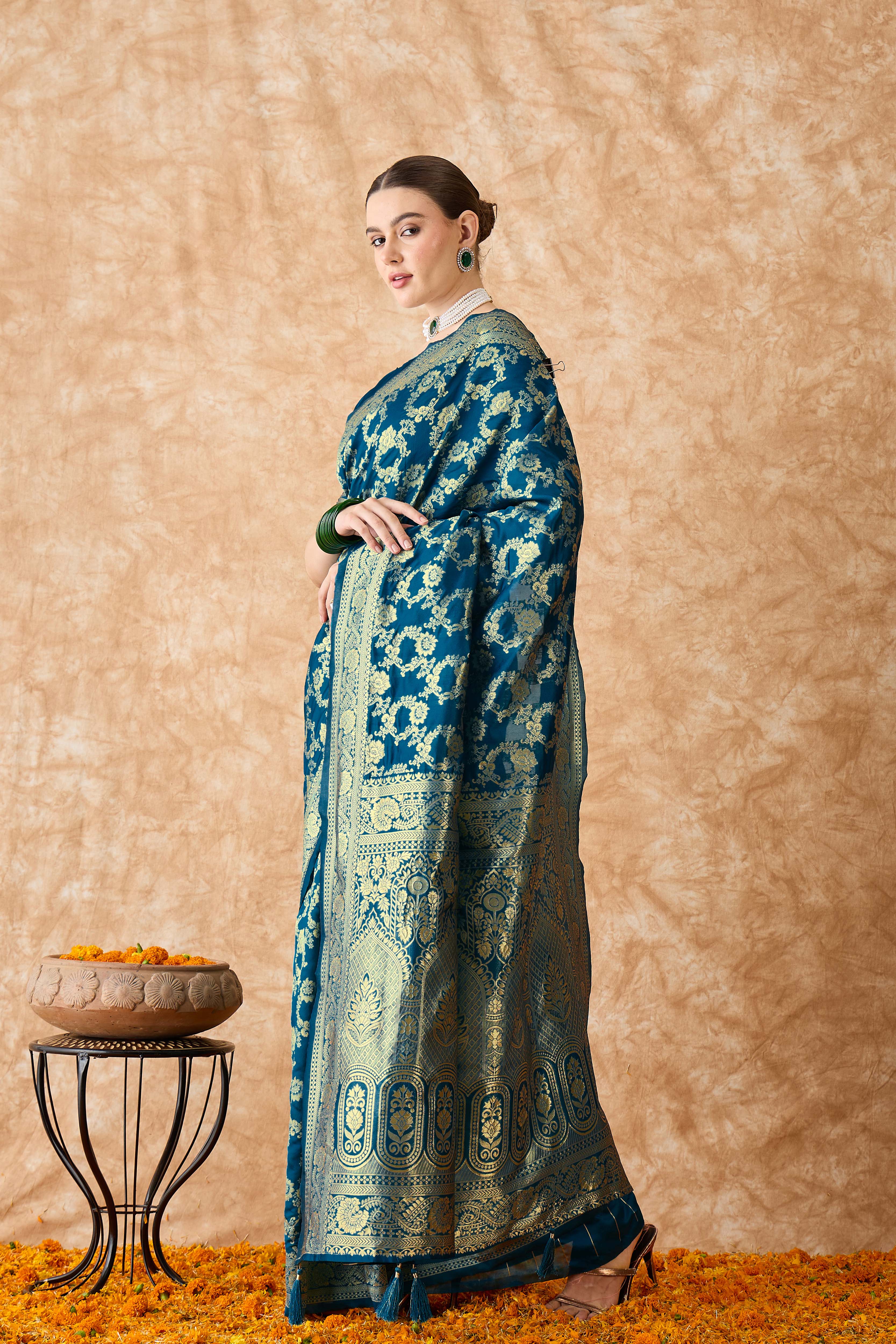 AASTHA FASHION Fashion Dream Womens Teal Blue Banarasi Silk Saree | Soft & Elegant Traditional Wear