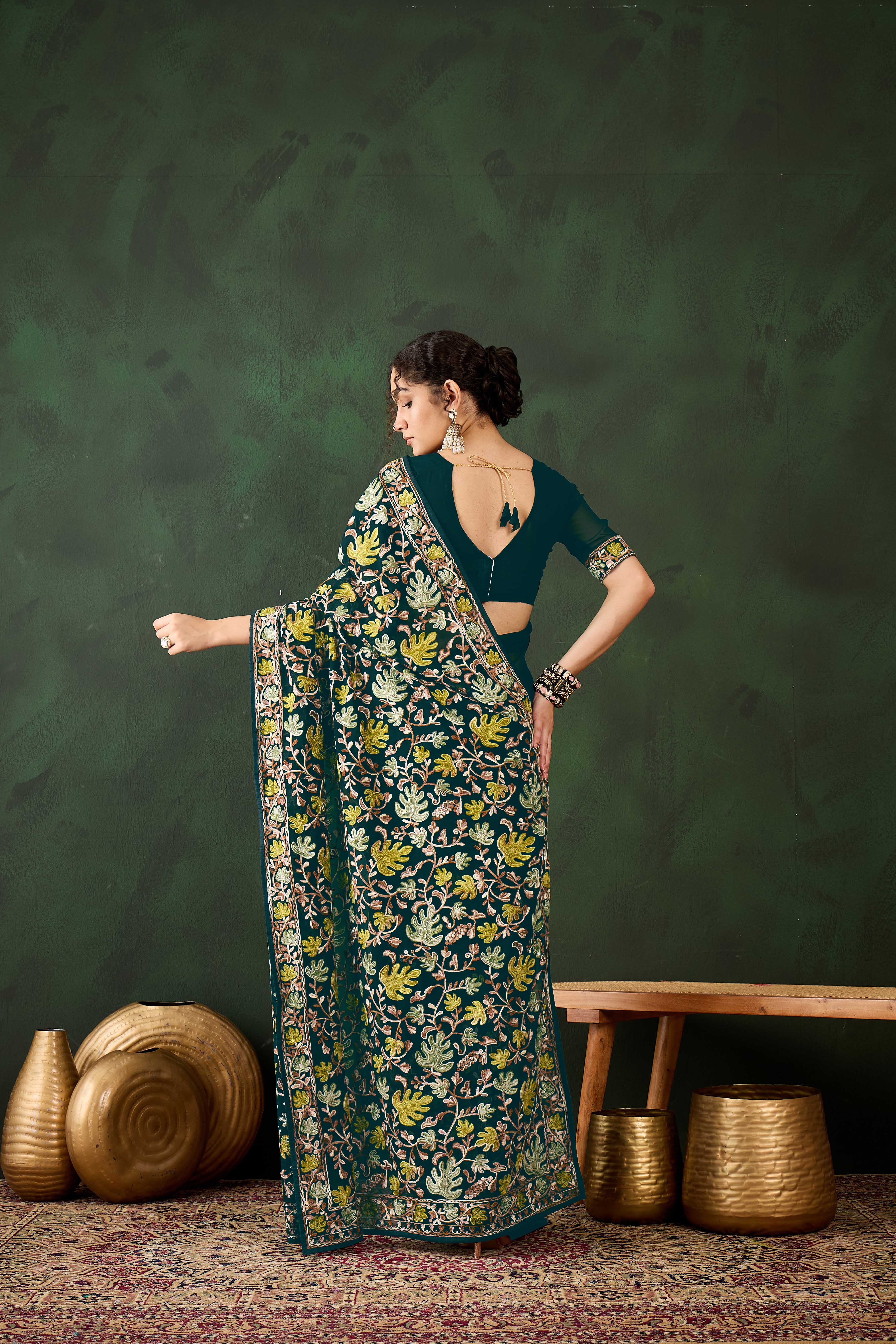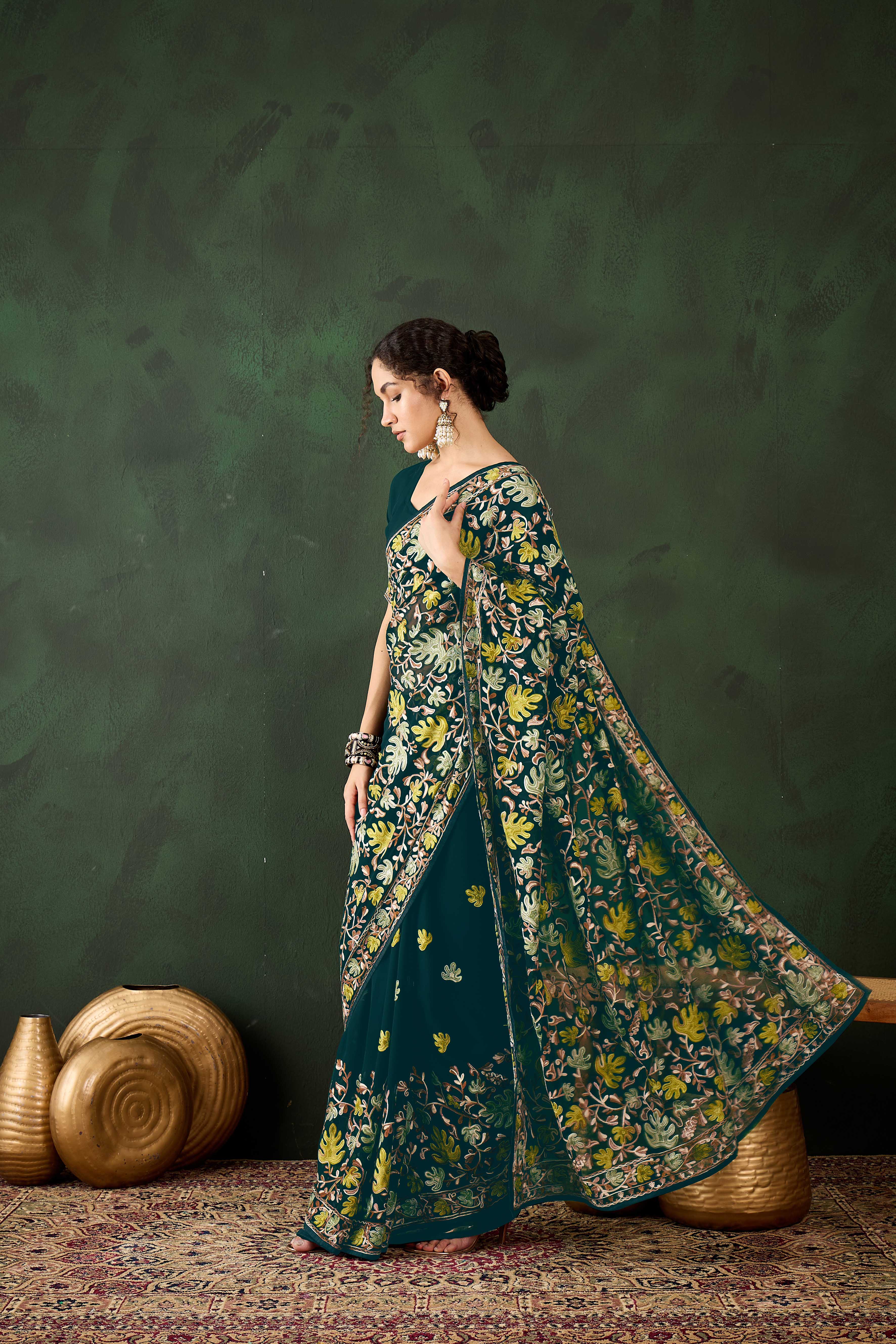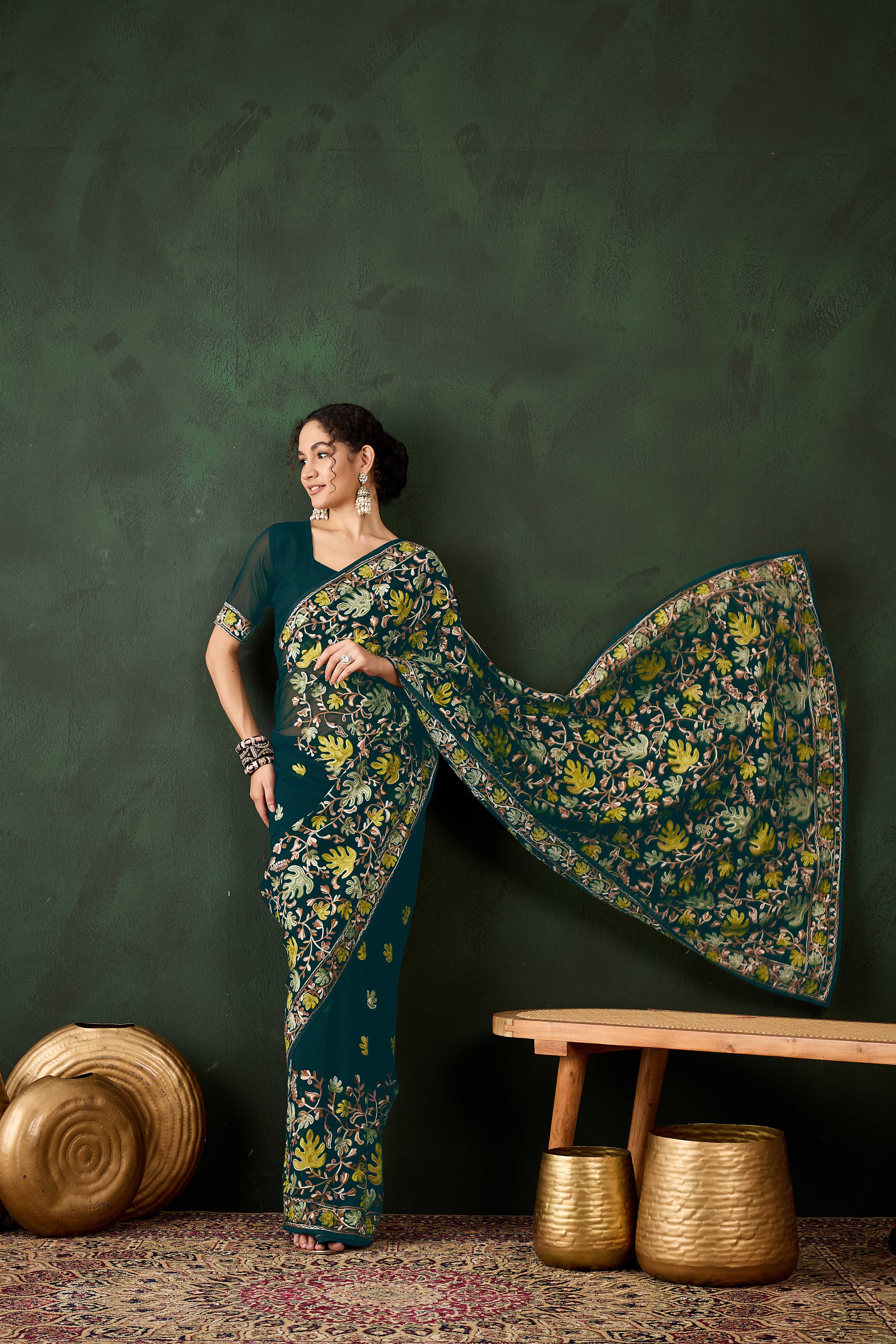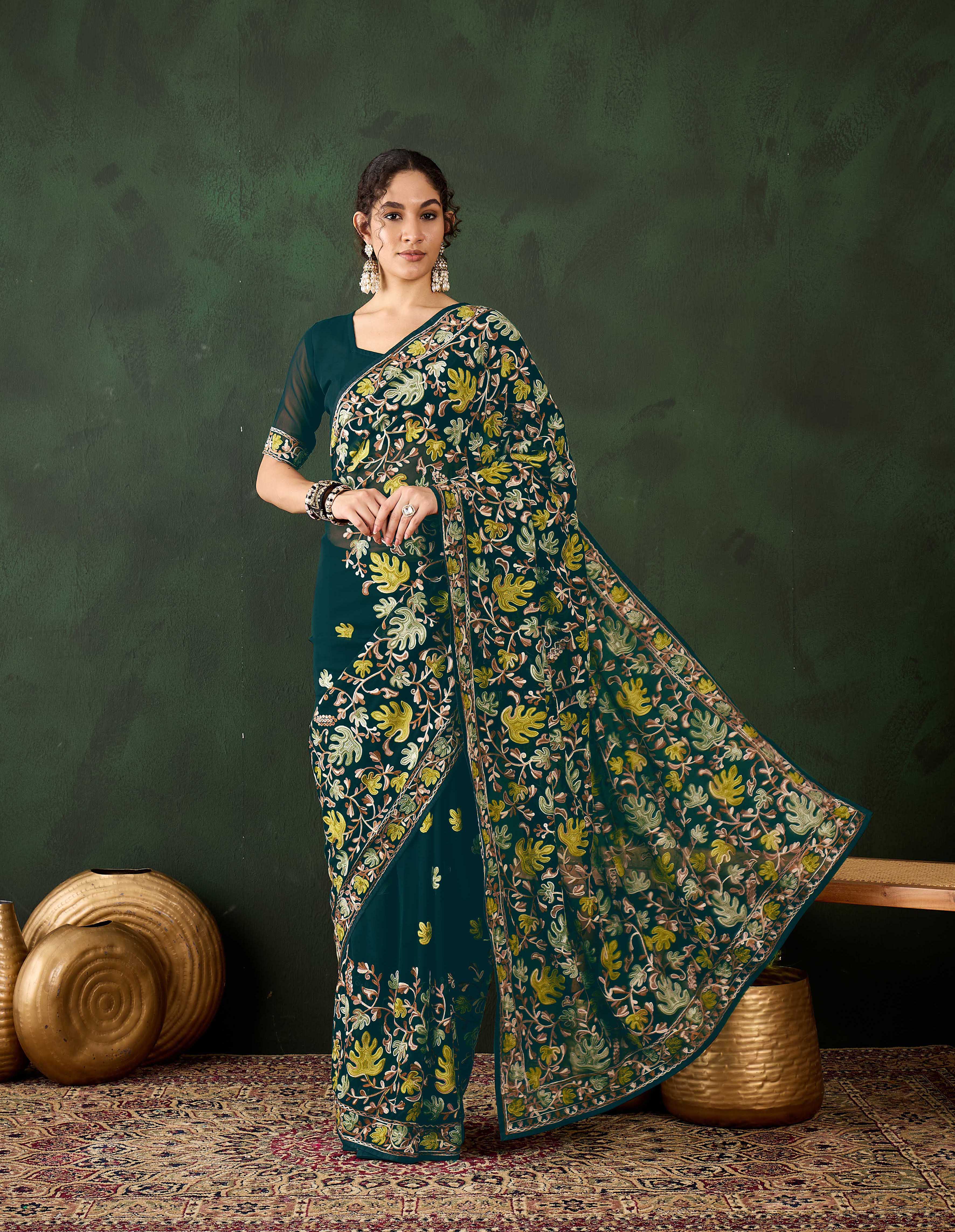 AASTHA FASHION Fashion Dream Womens Teal Blue Georgette Saree | Soft & Elegant Traditional Wear