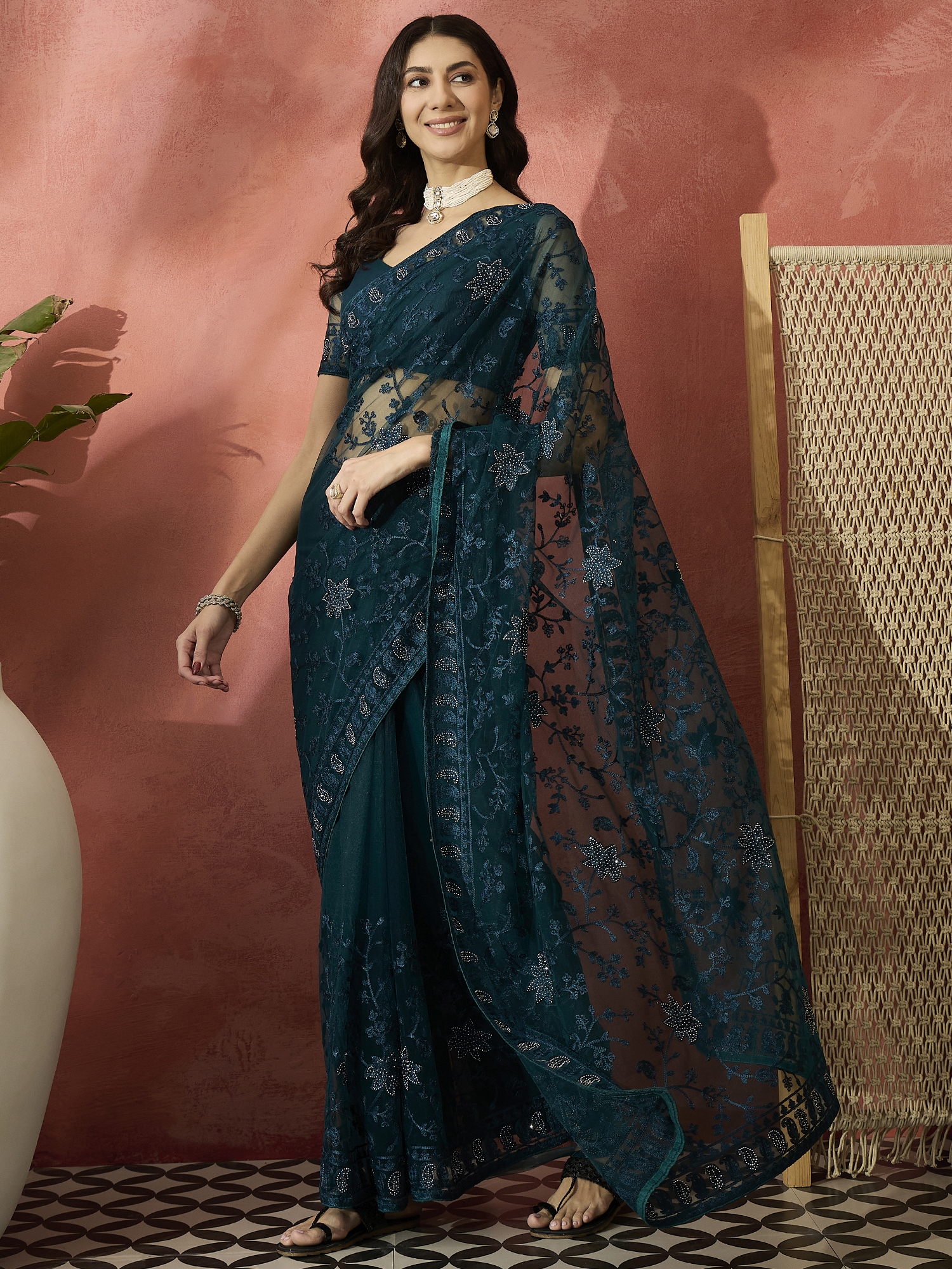 AASTHA FASHION Fashion Dream Womens Teal Net Saree | Soft & Elegant Traditional Wear